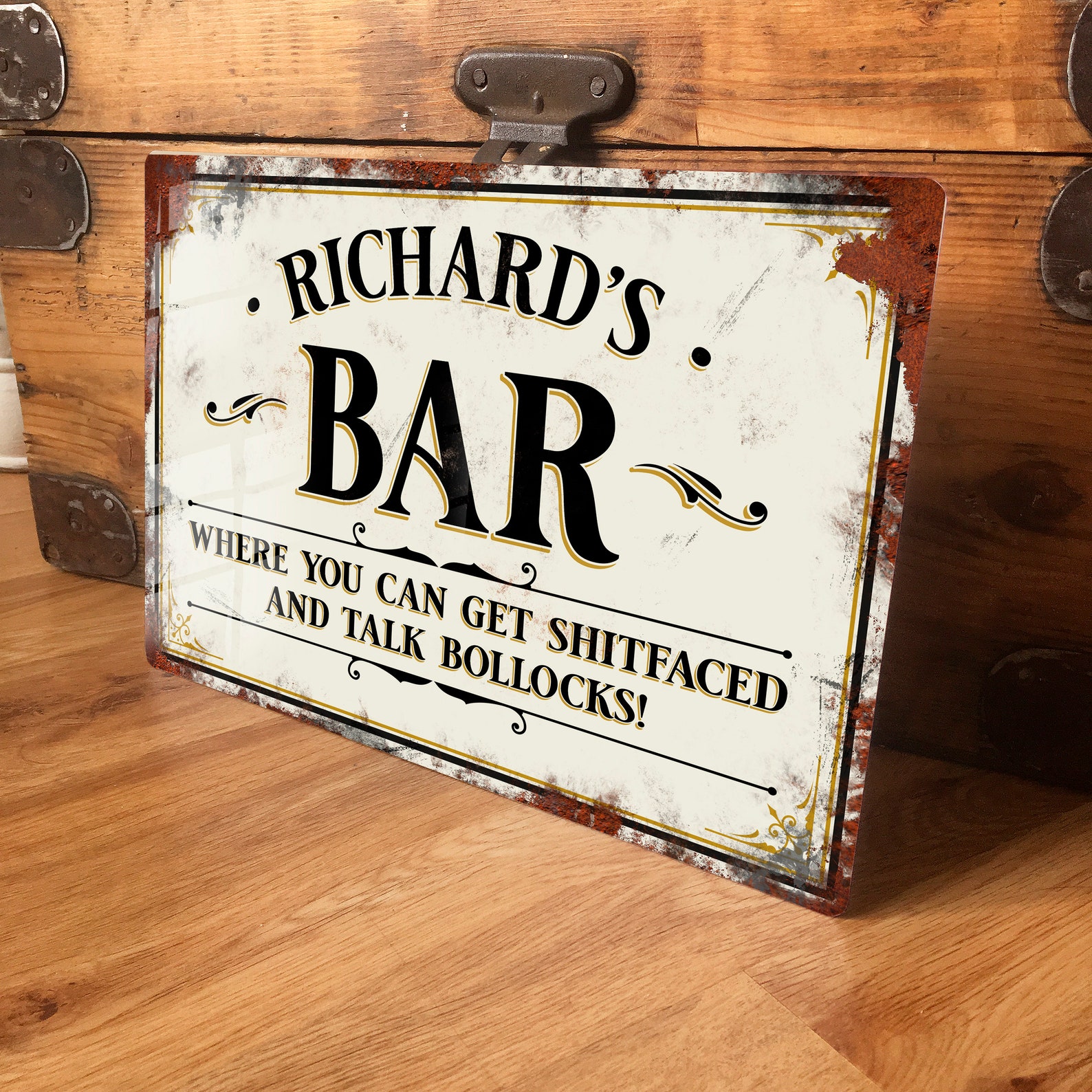 The sign is made with pre-designed holes for hanging. You can hang the sign everywhere easily with the screws already incl in the kit.