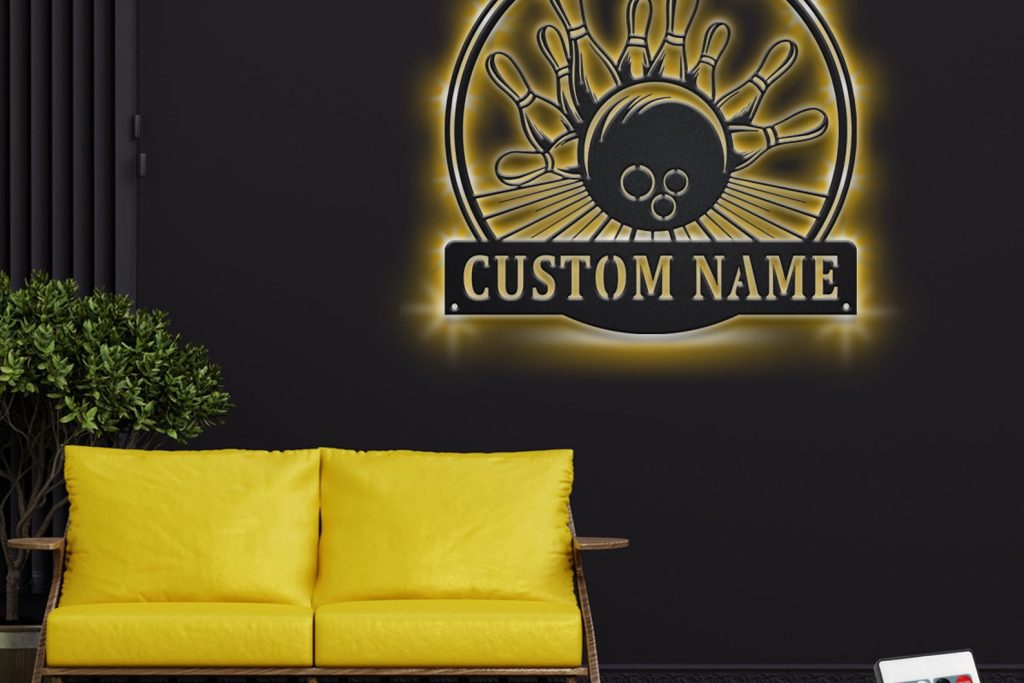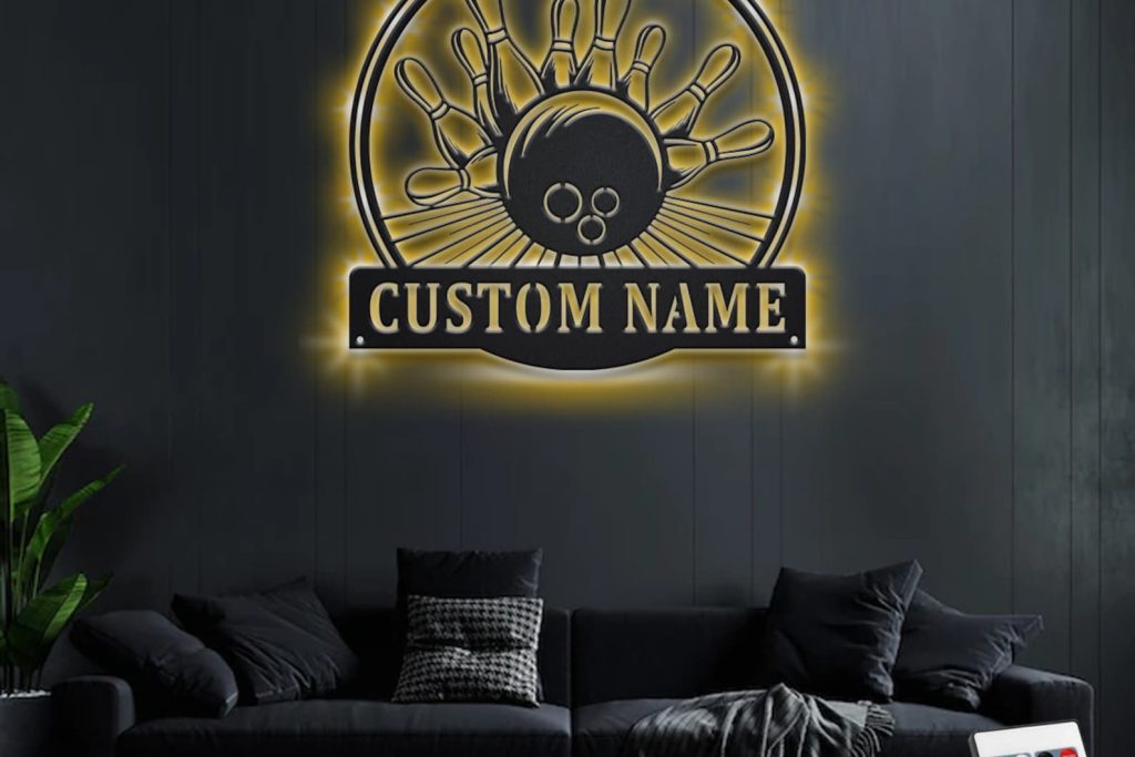 Custom Bowling Metal Sign with LED – Player Room Decor
