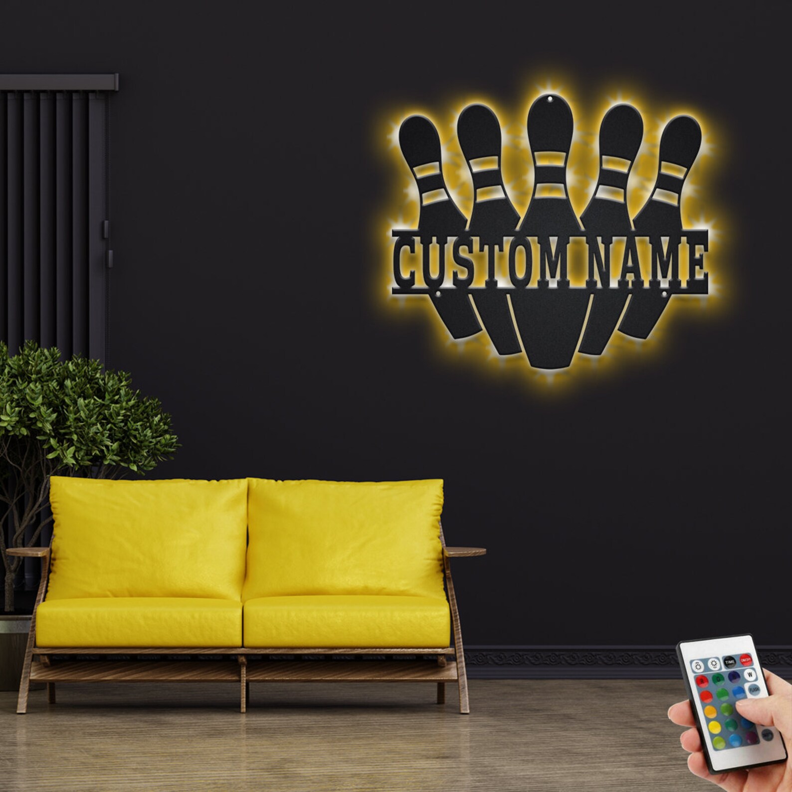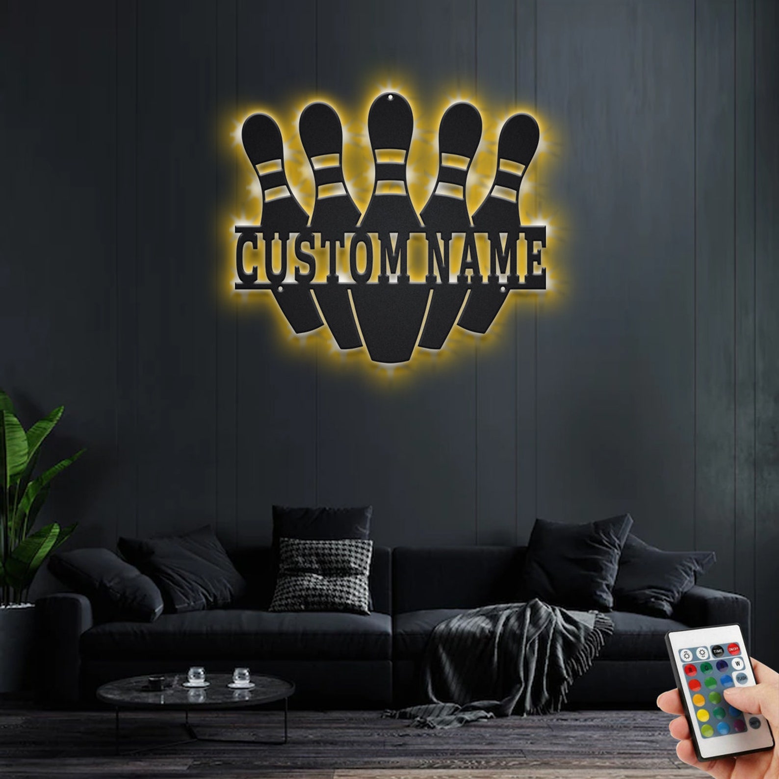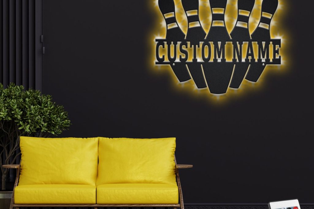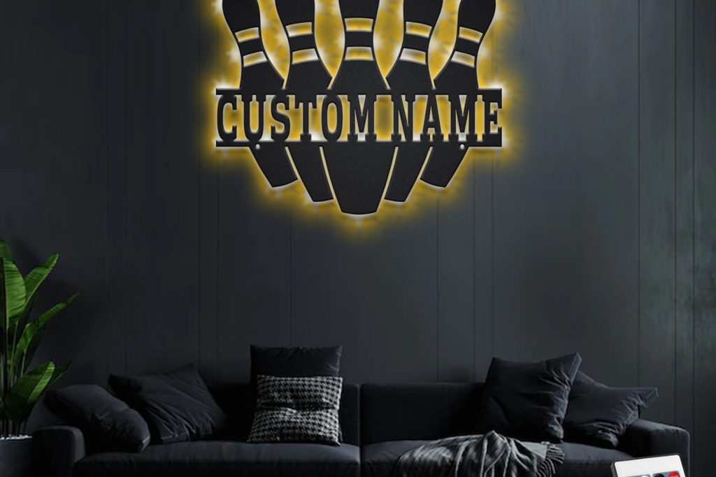 Custom Bowling Pin Metal Sign with LED – Player Room Decor
