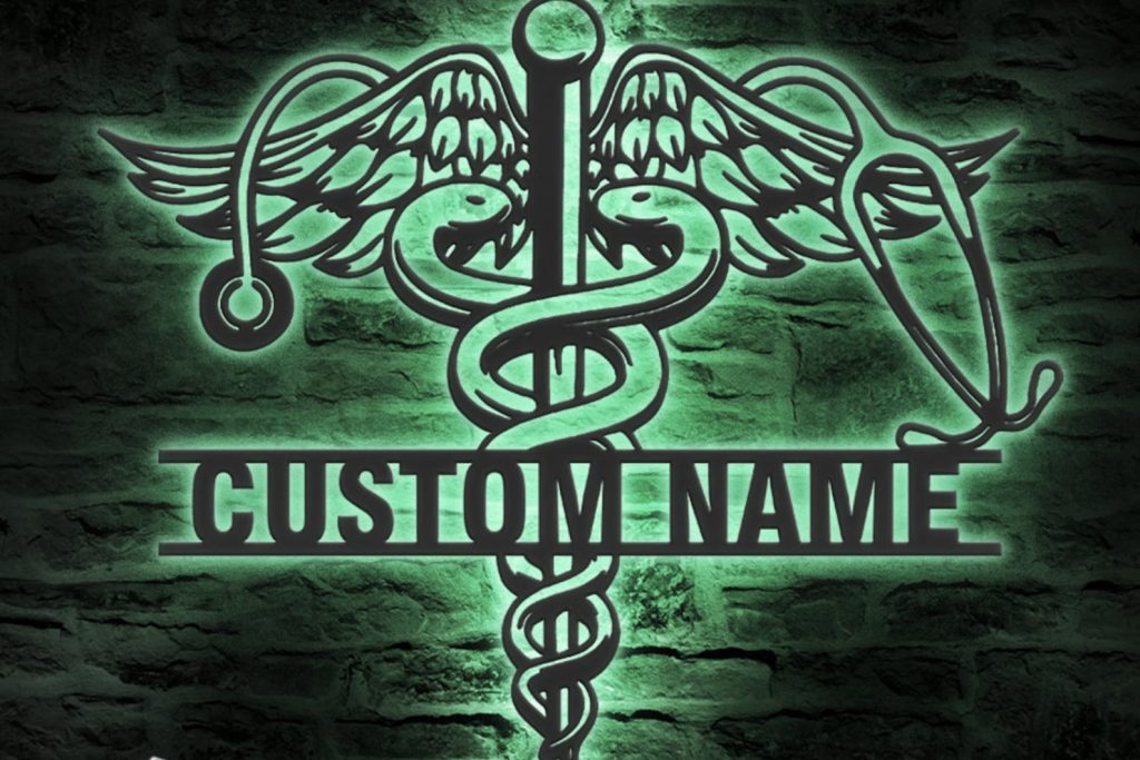 Be the first to review “Custom Caduceus Medical Metal Art with LED & Nurse Name”