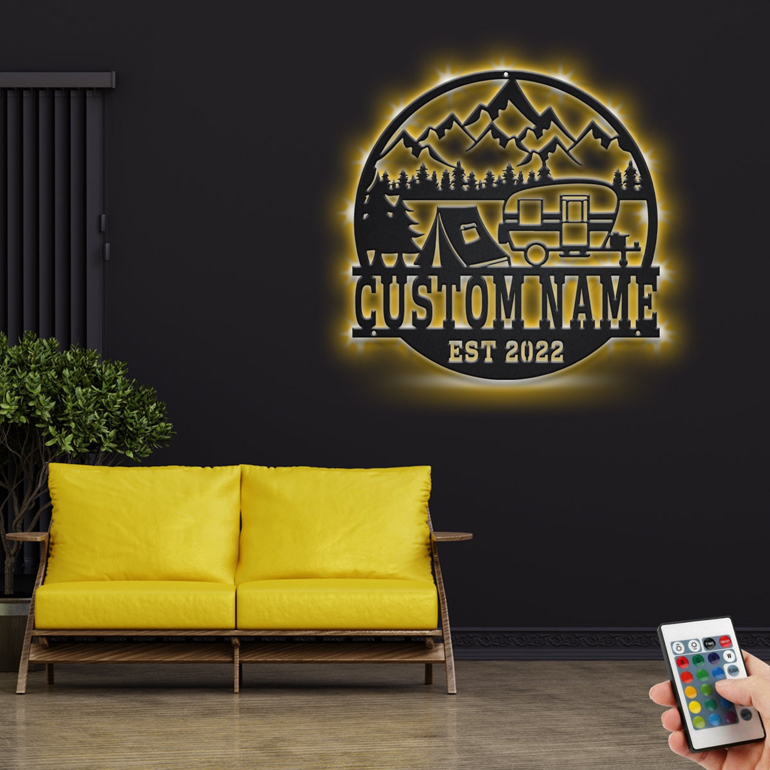 Custom Camping Tent Metal Wall Art – LED Light, Personalized