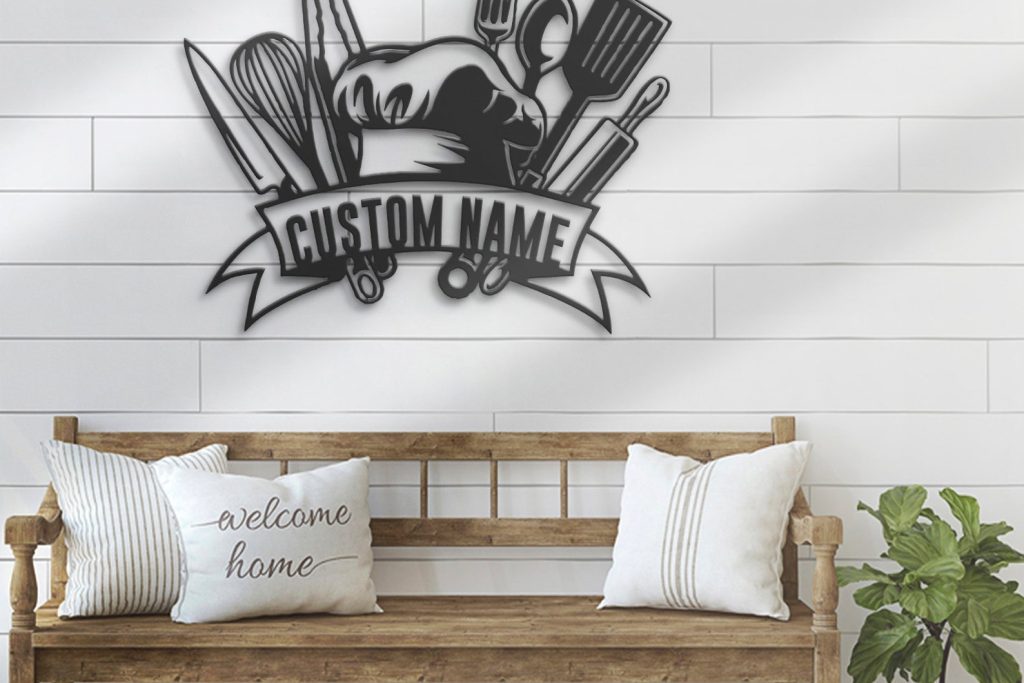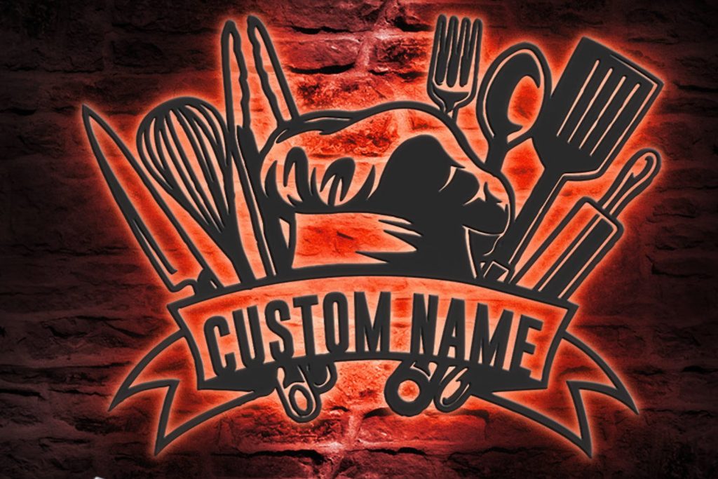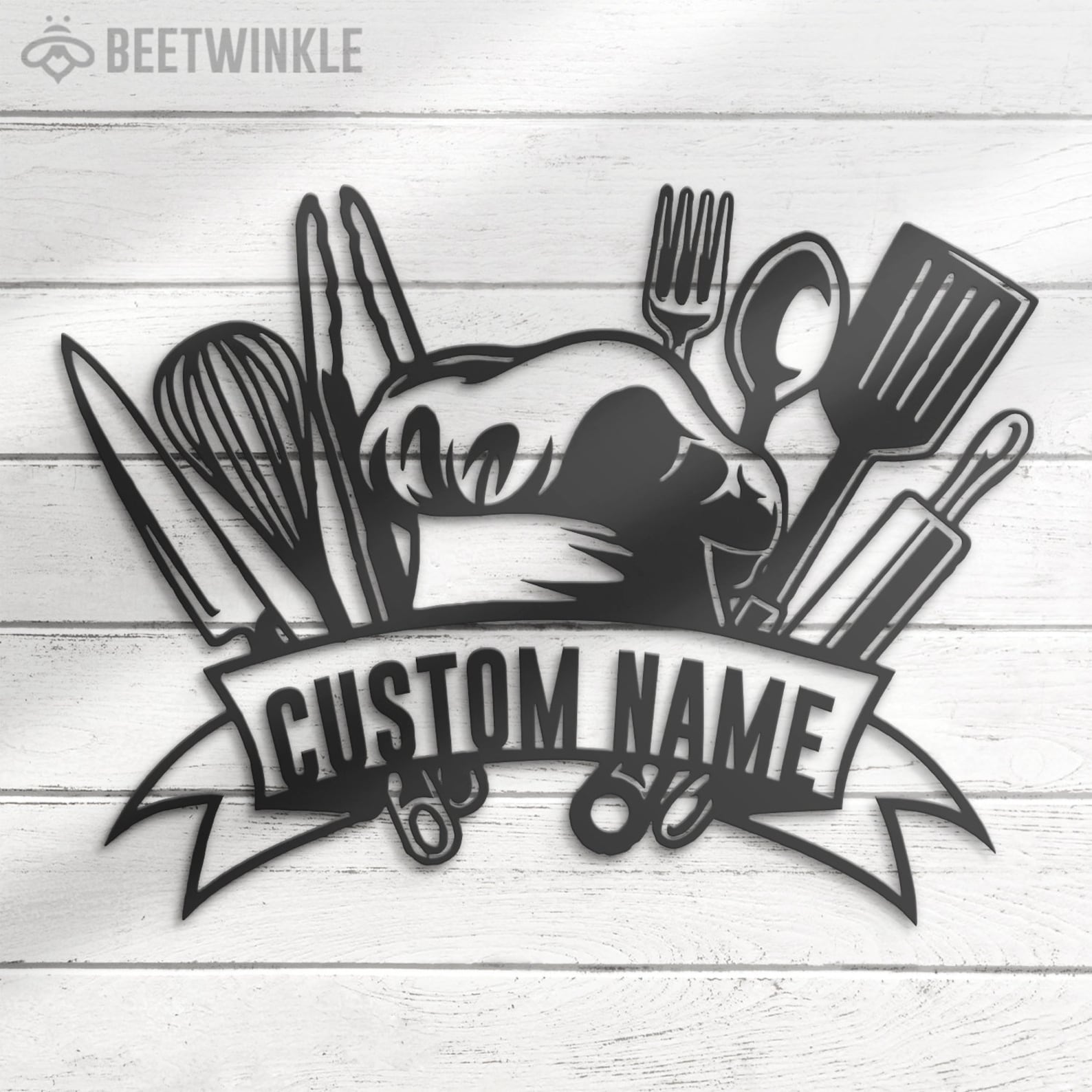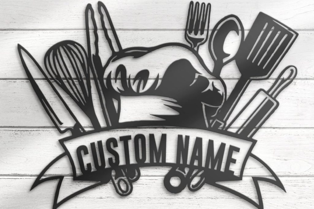 Custom Chef Tools Metal Wall Art – Personalized Cooking Sign