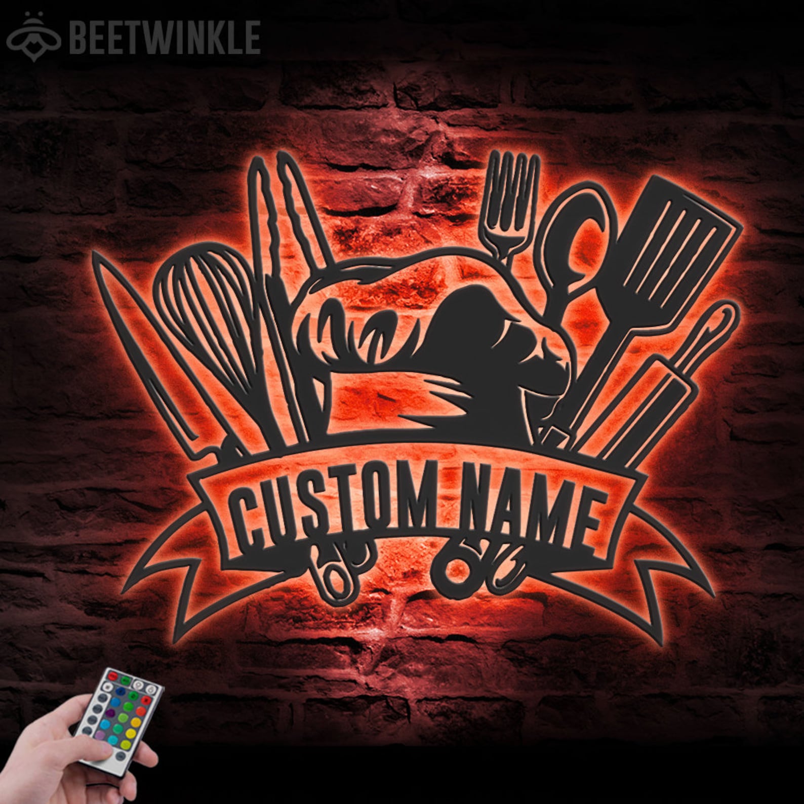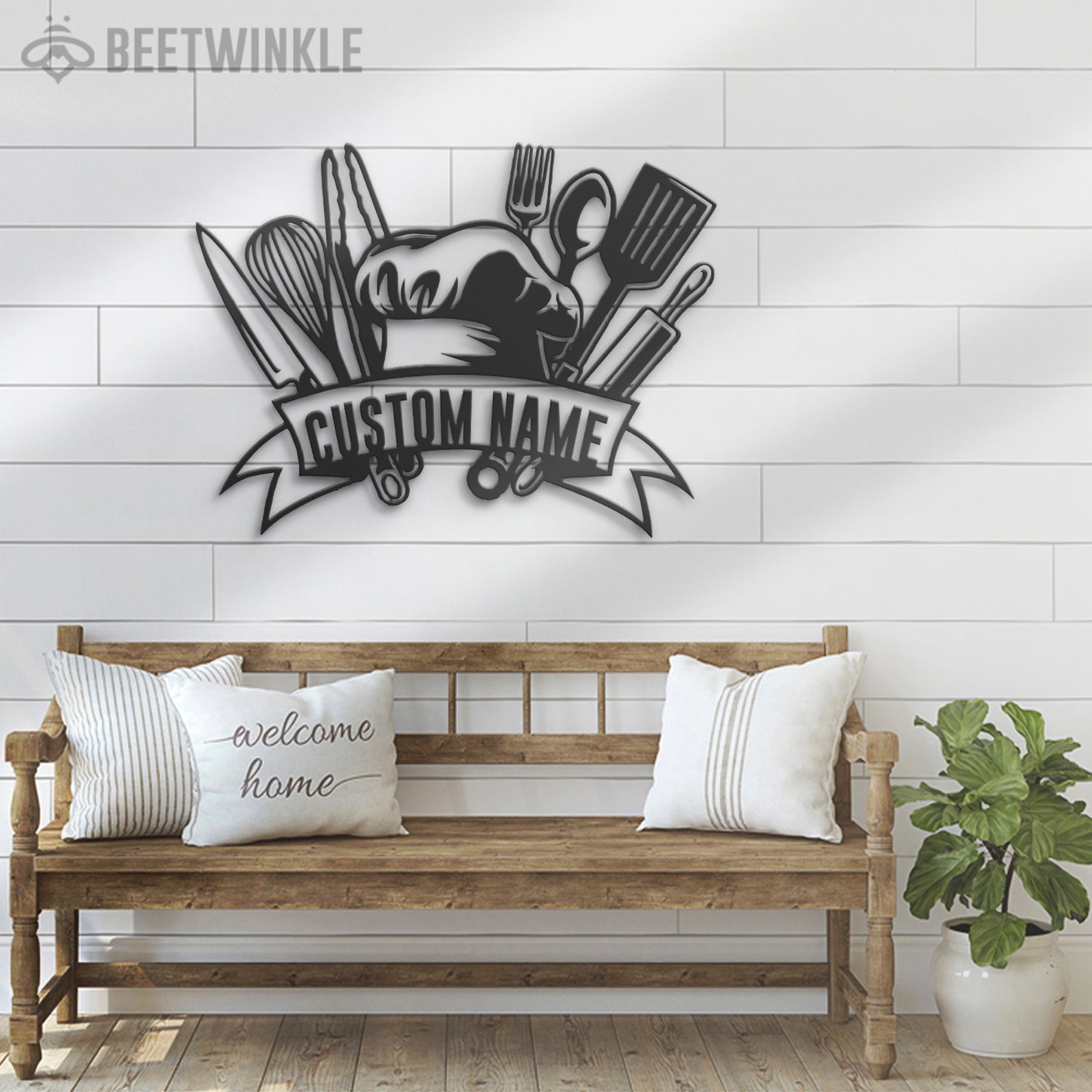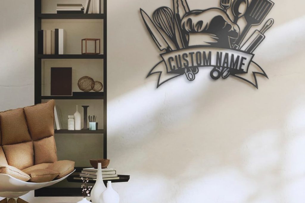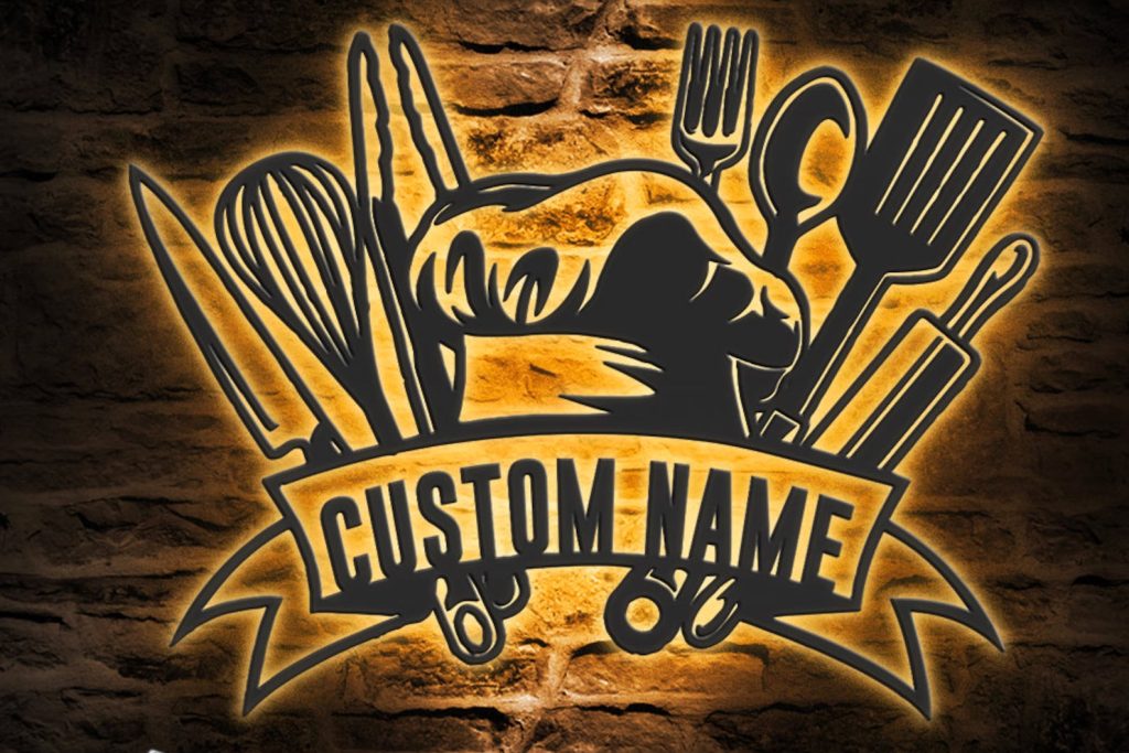 Custom Chef Tools Metal Wall Art – Personalized Cooking Sign