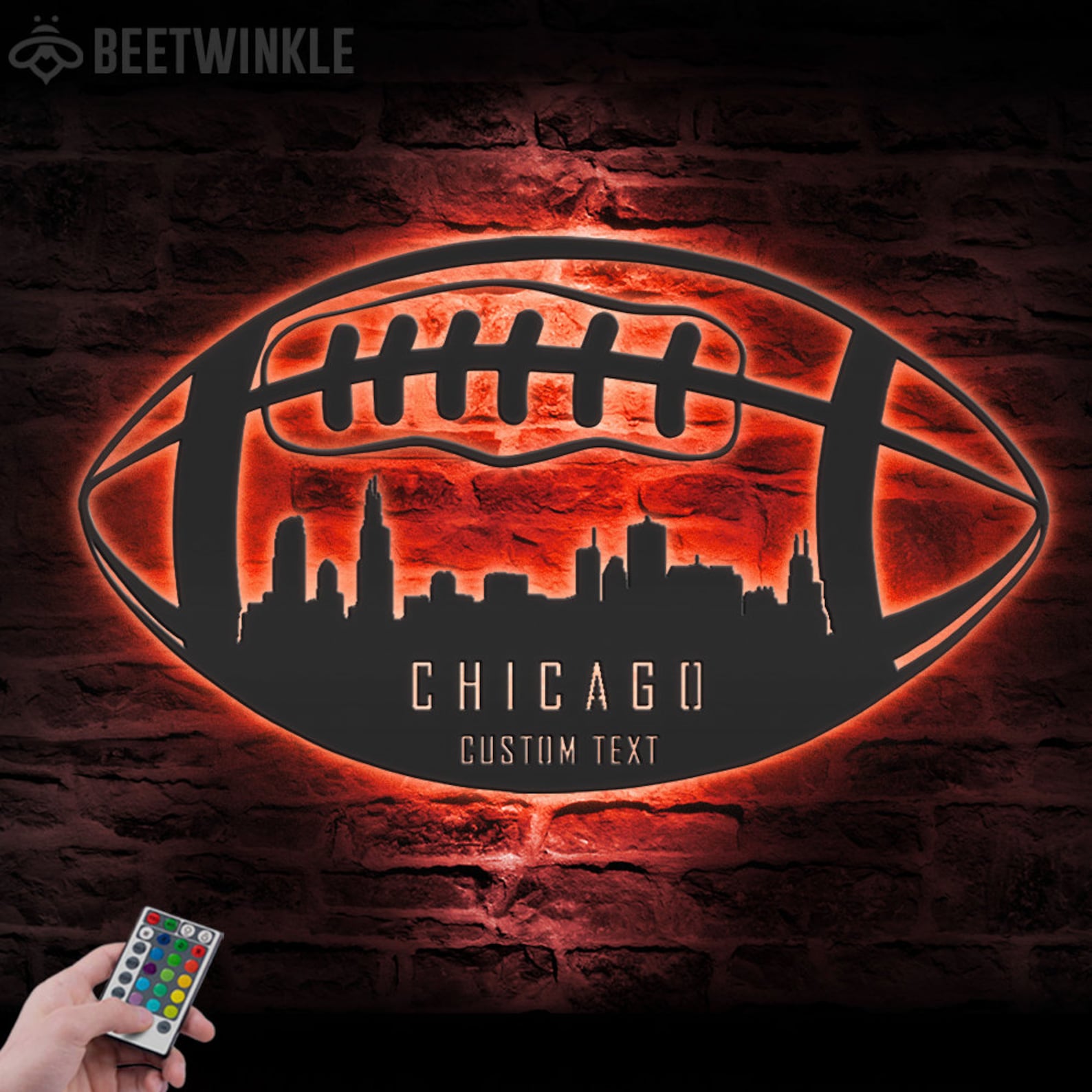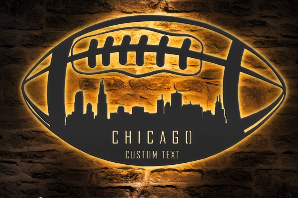 Be the first to review “Custom Chicago Football Metal Art with LED Light”