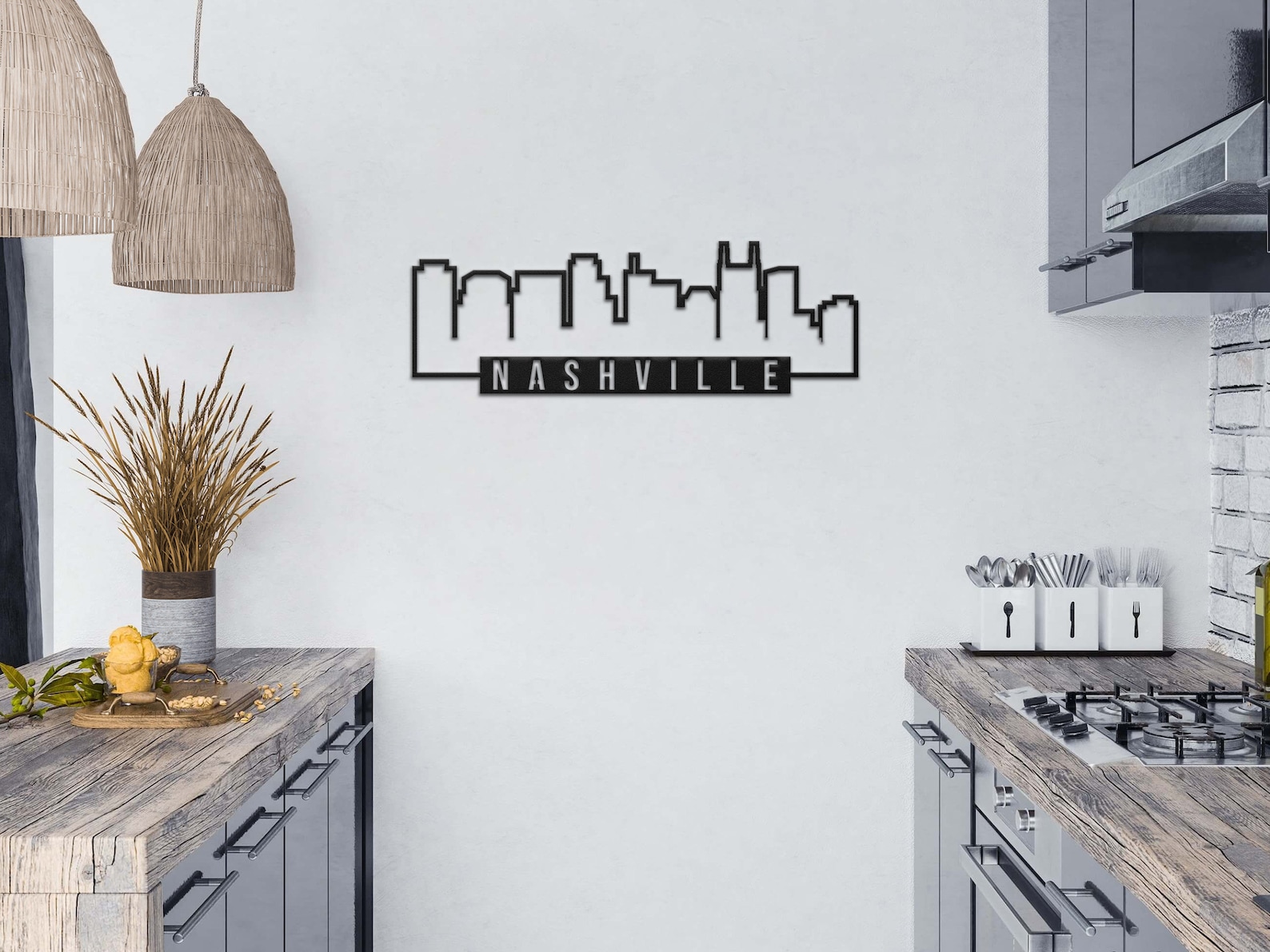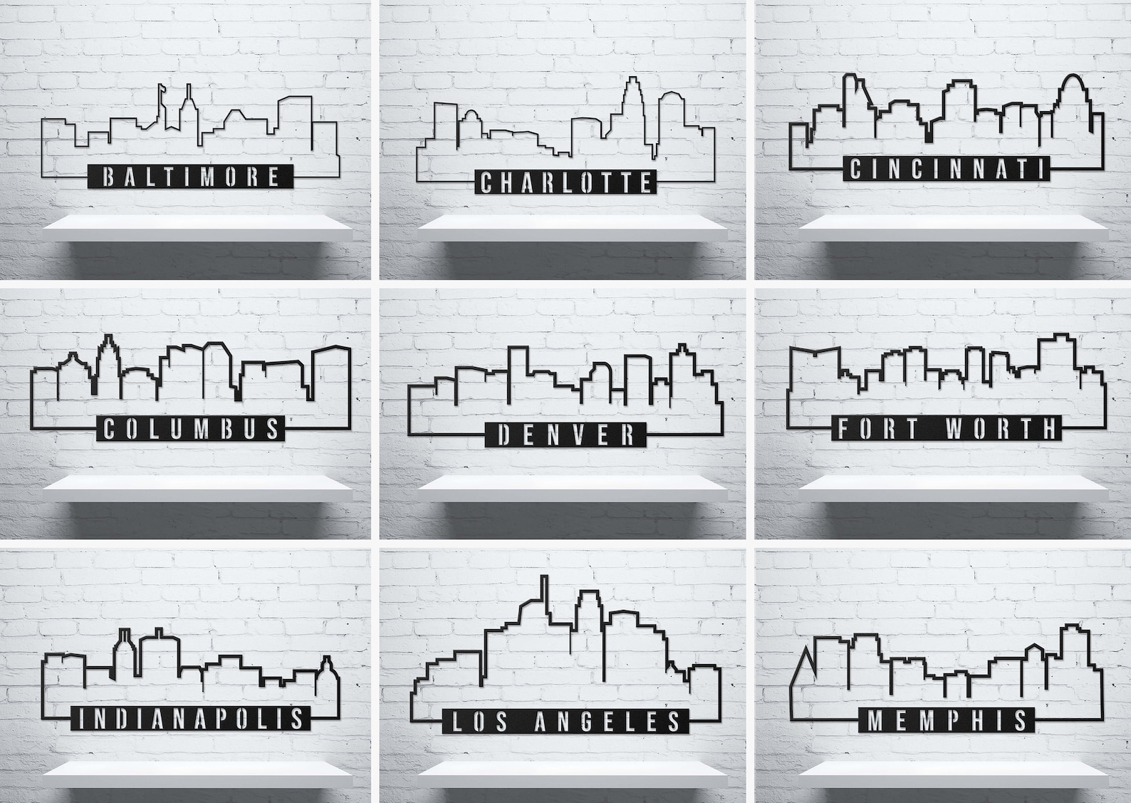 Pick your city and elevate your home dcor with personalized city skyline metal artwork. Our custom metal signs are made with 18 gauge steel and powder coated in your choice of 3 colors and one-of-a-kind art pieces. Add a touch of this stunning cityscape hanging wall art to your home, office, garage, bedroom, bathroom, or kitchen. Perfect for housewarming, birthday, wedding, anniversary, or holiday gifts for your loved ones.