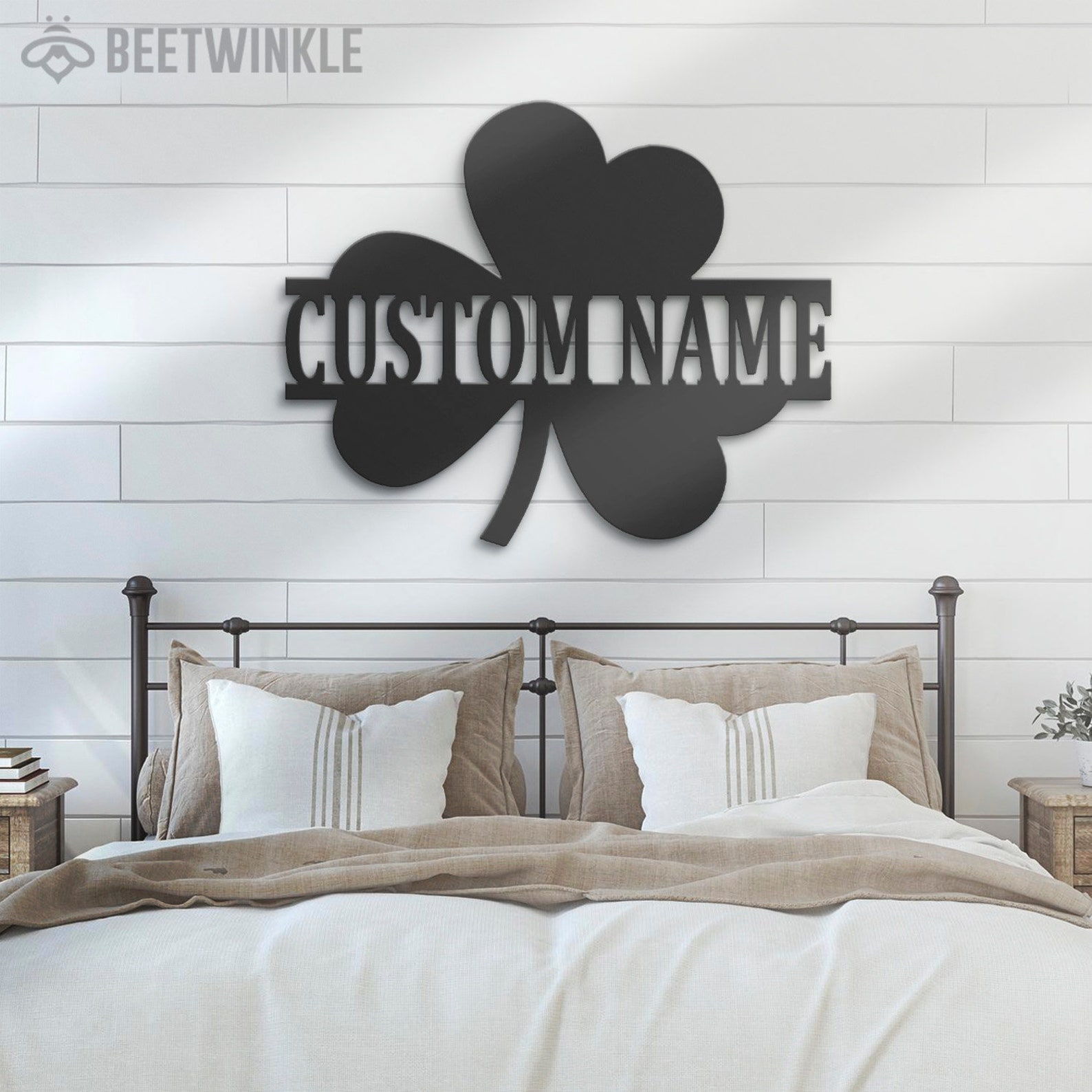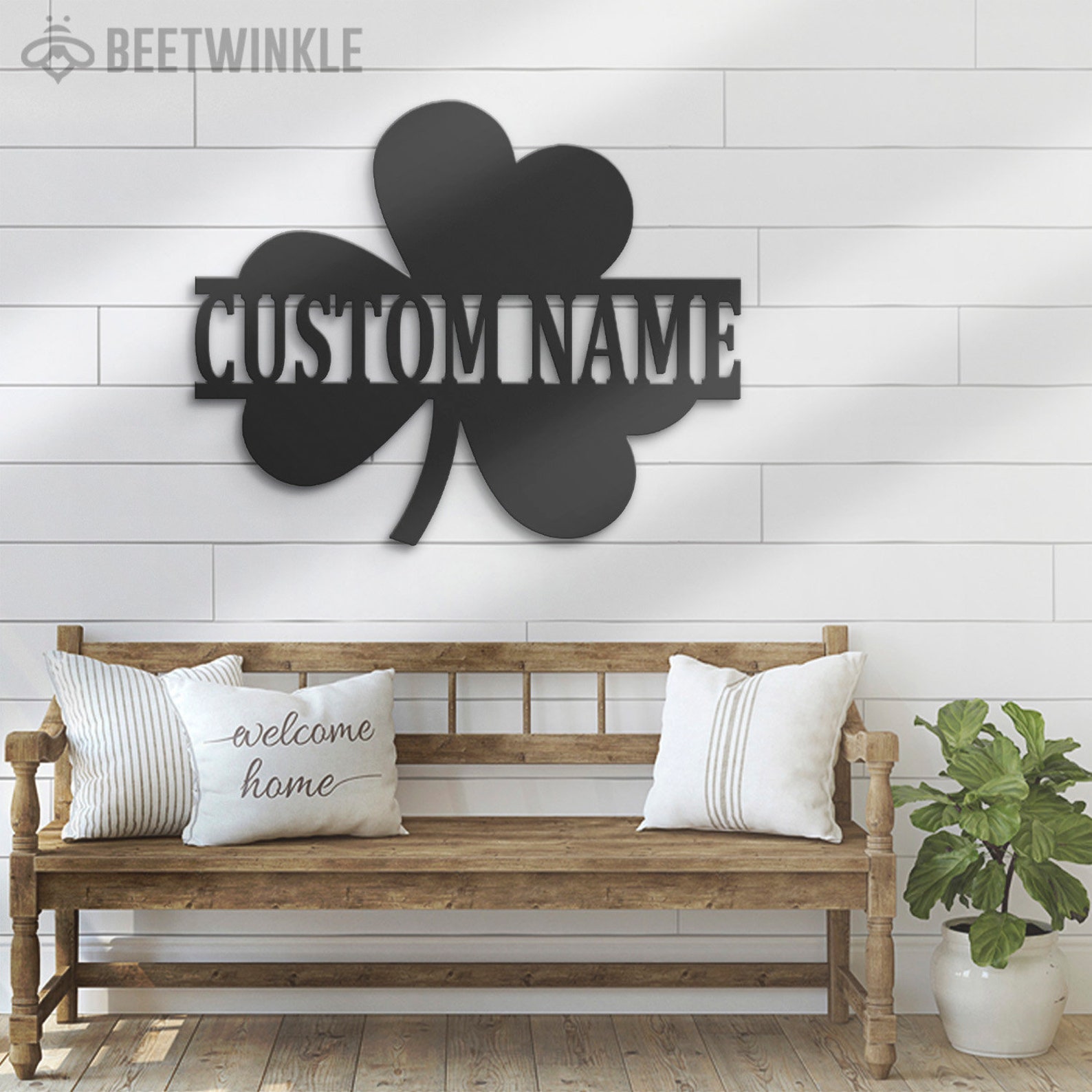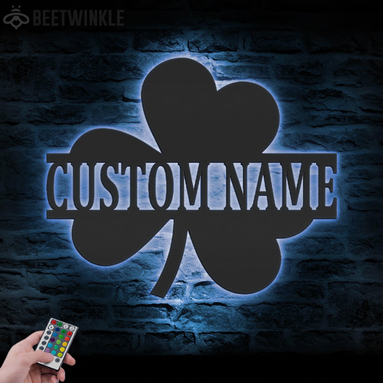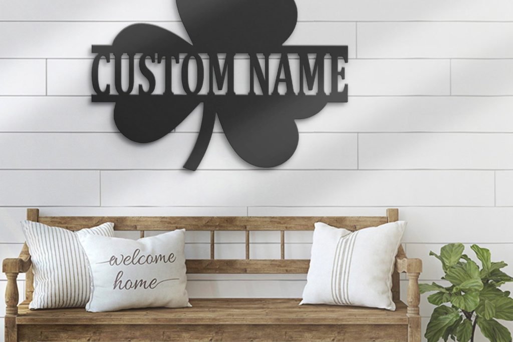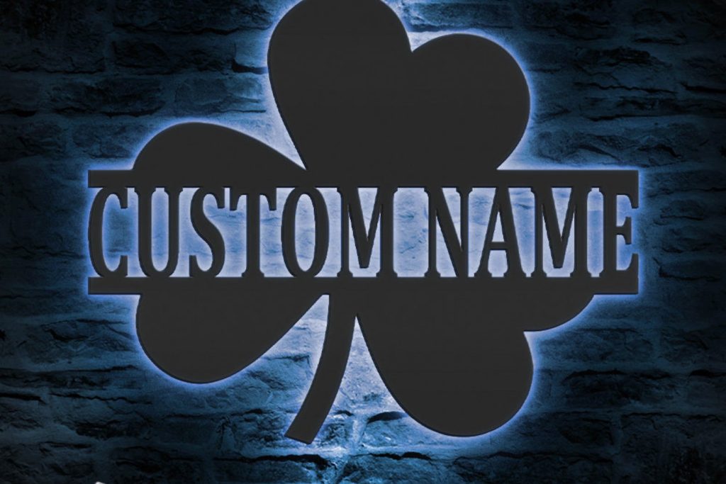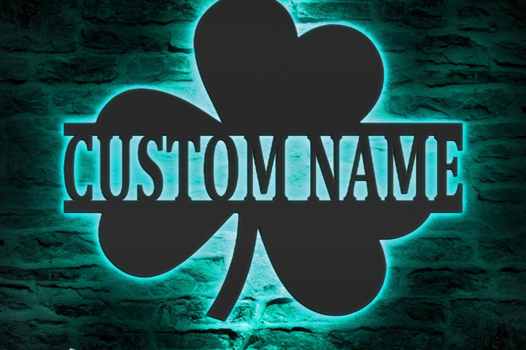 Custom Clover Metal Wall Art – LED Light, Personalized Shamrock Sign