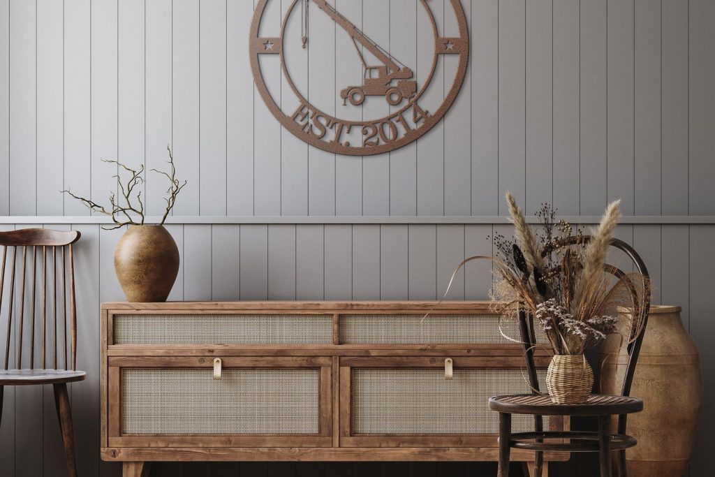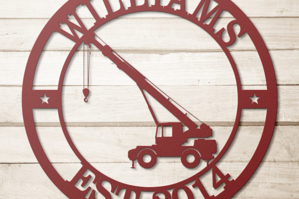 Crane Construction Metal Art – Personalized Name Sign, Custom Decor, Retirement Gift