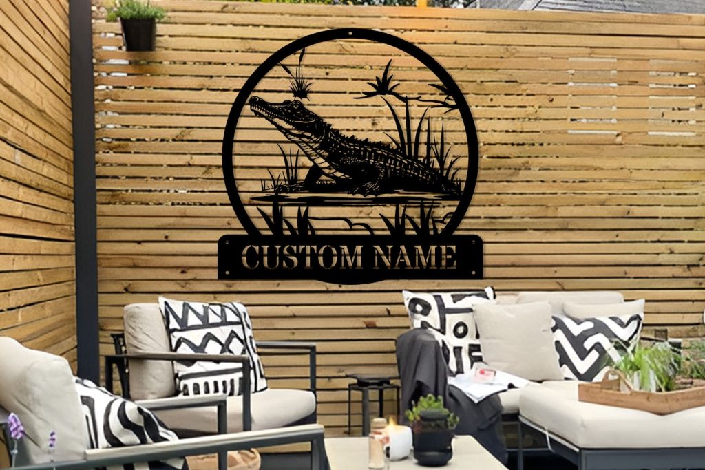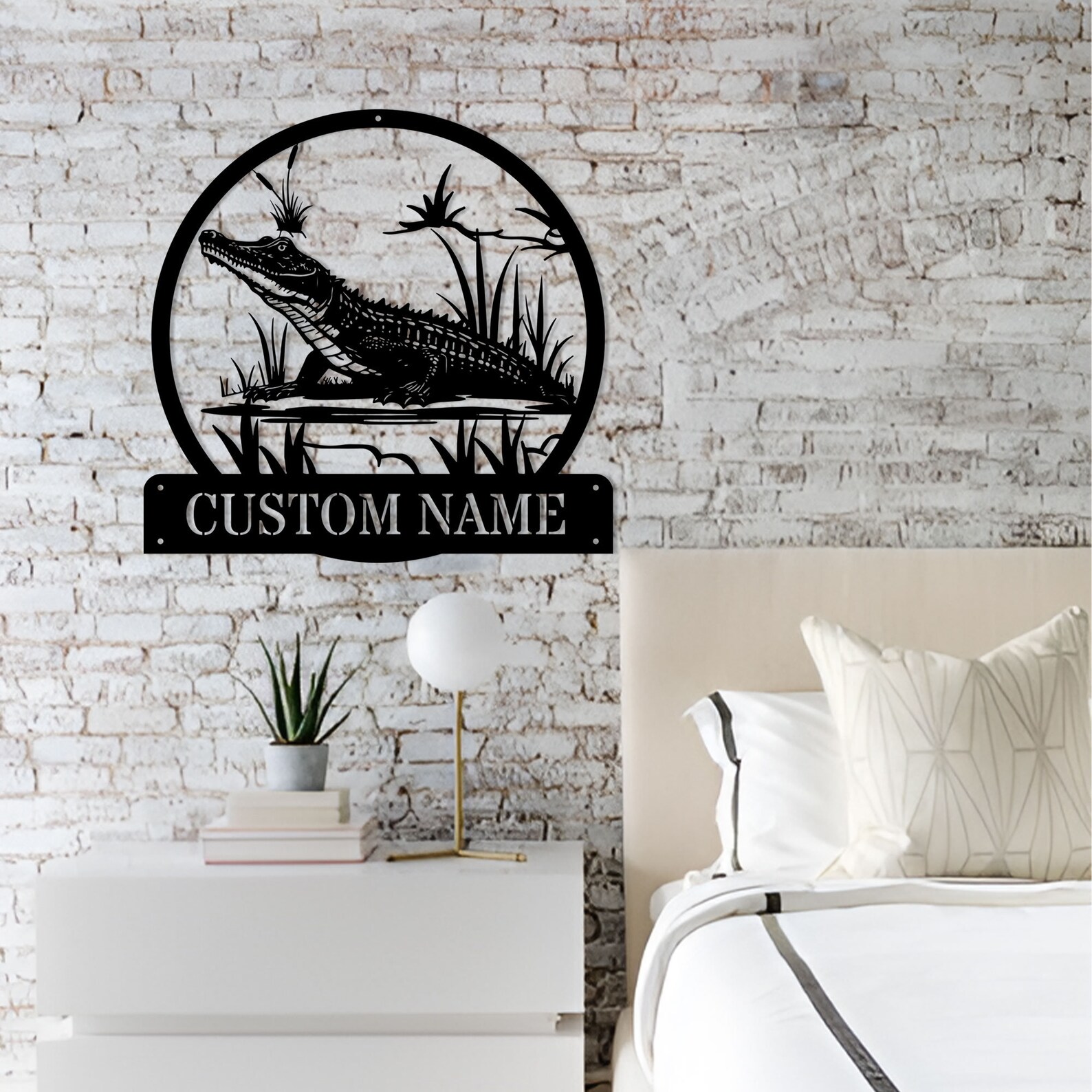 Crocodile Metal Sign,Custom Metal Alligator Sign,Personalized Crocodile Wall Art Decor,Metal Crocodile Sign,Wall Hanging,Outdoor Decor