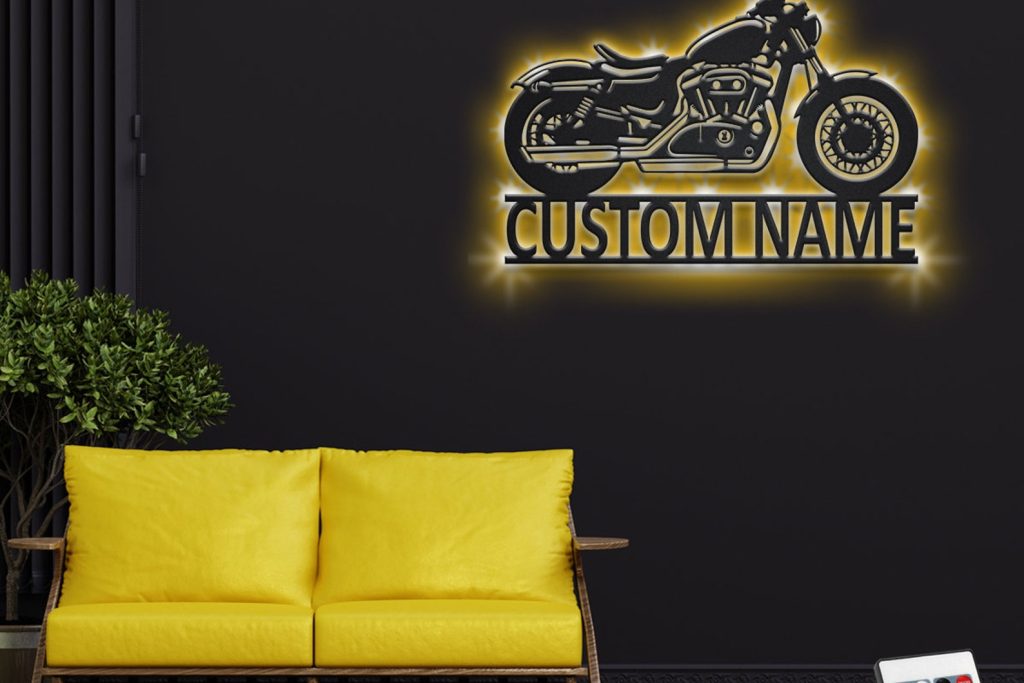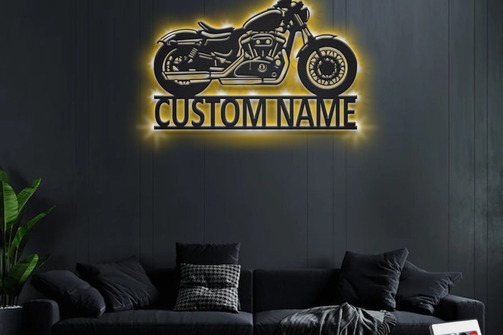 Custom Cruiser Motorcycle Metal Wall Art – LED Light, Personalized Biker Name Sign