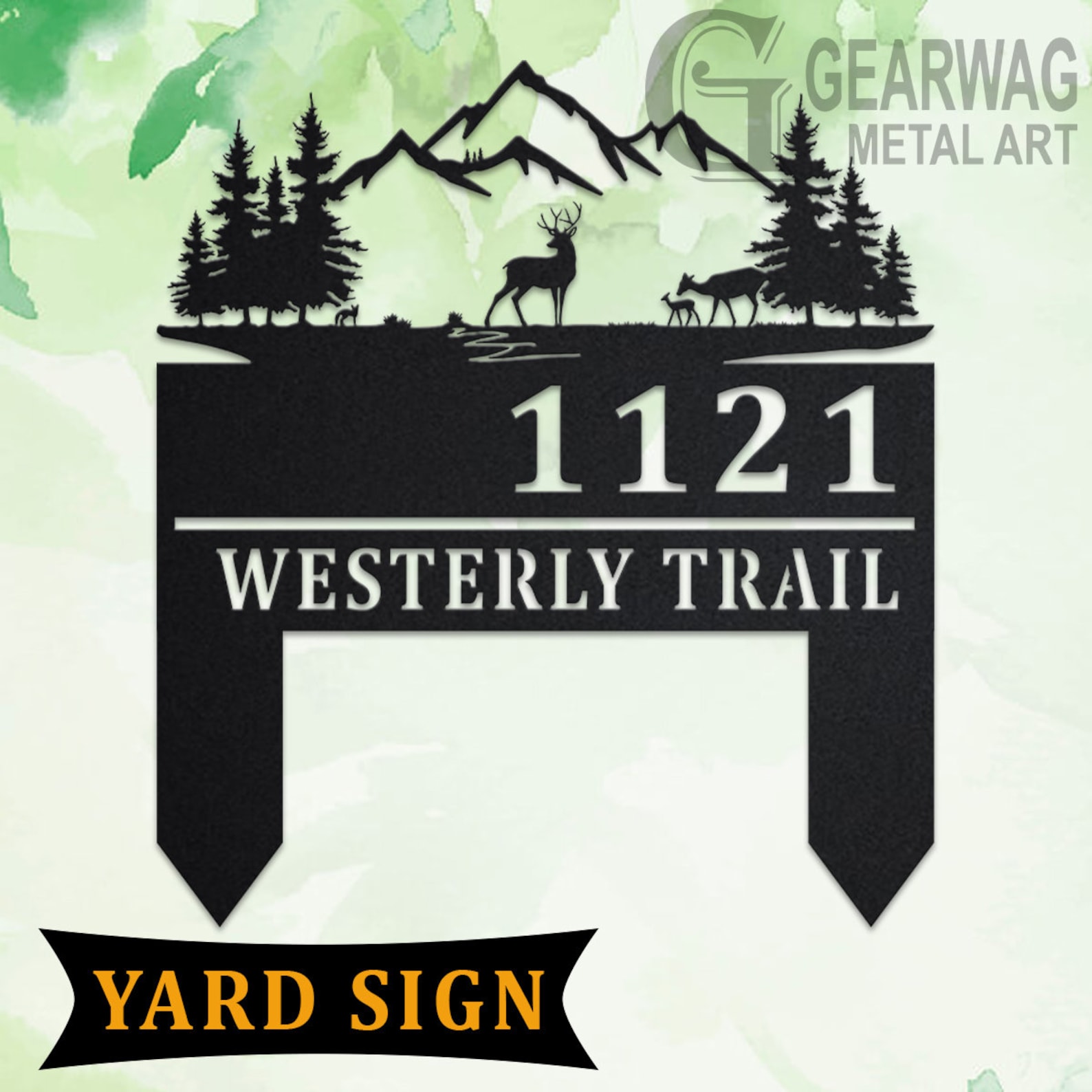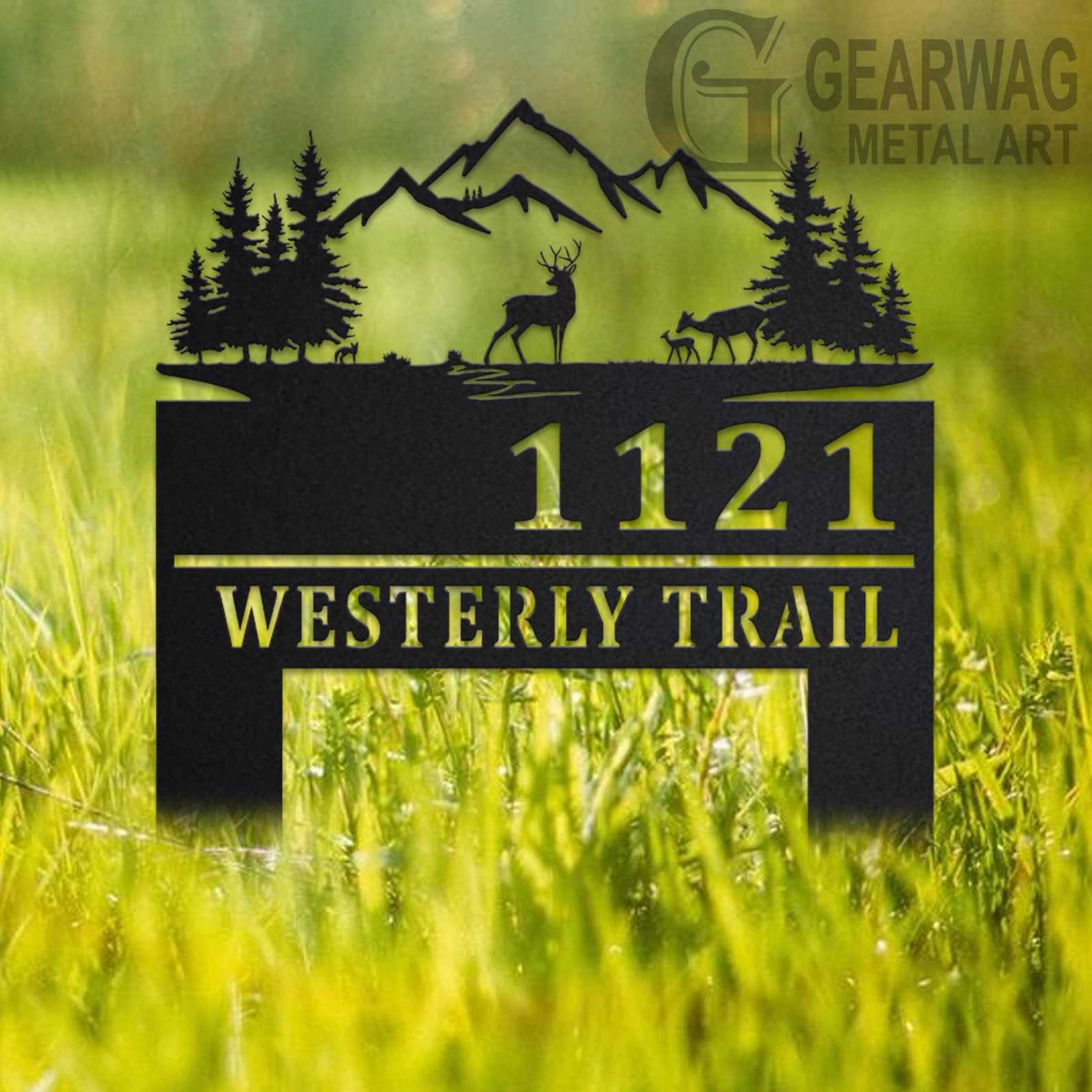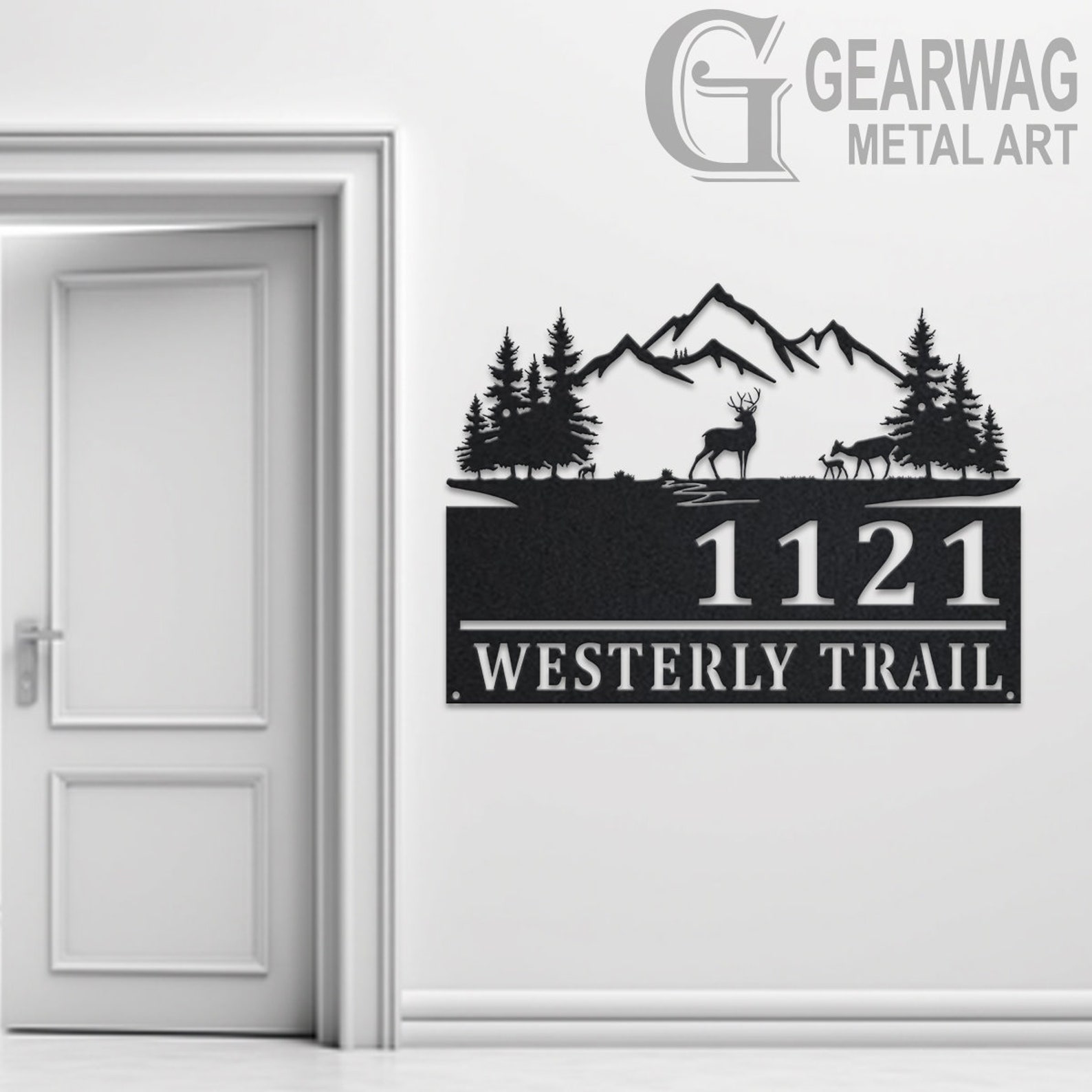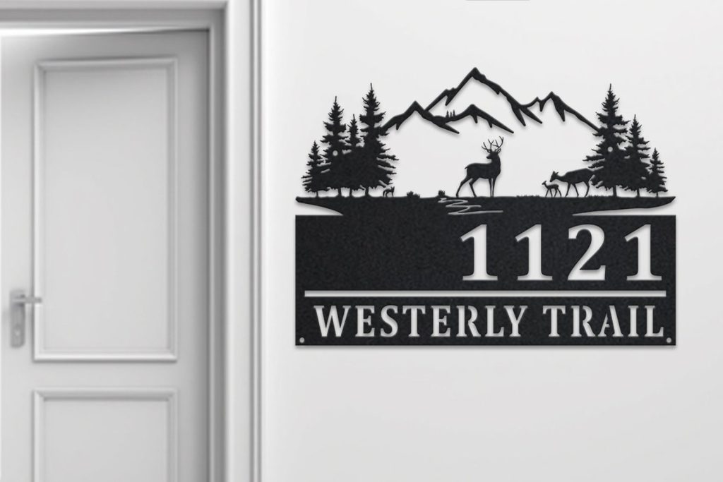 Be the first to review “Custom Deer Family Mountain Metal Address Sign”