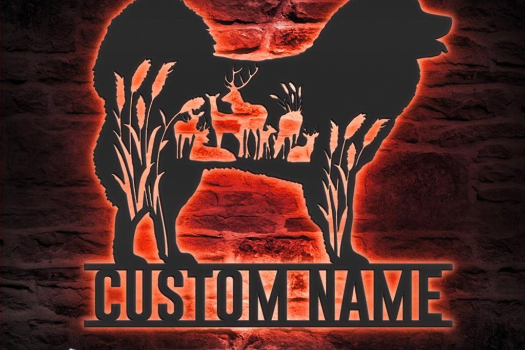 Custom Deer Floral Eurasier Metal Sign with LED – Pet Decor