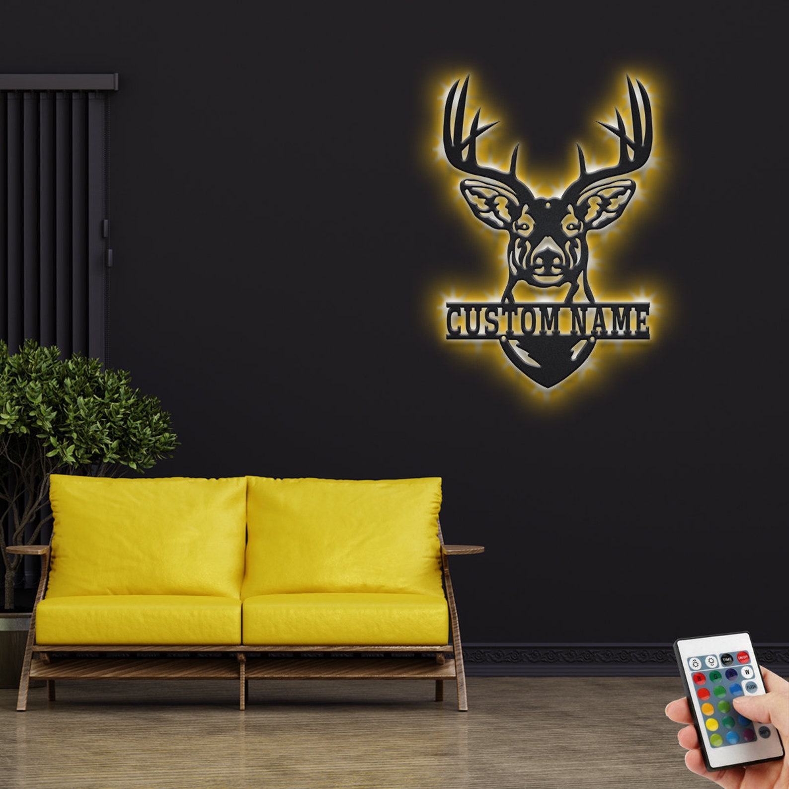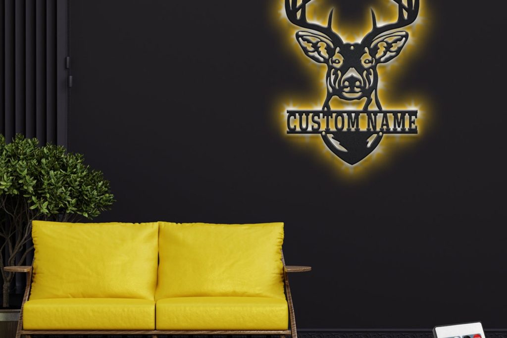 Custom Deer Head Metal Sign with LED – Hunting Decor