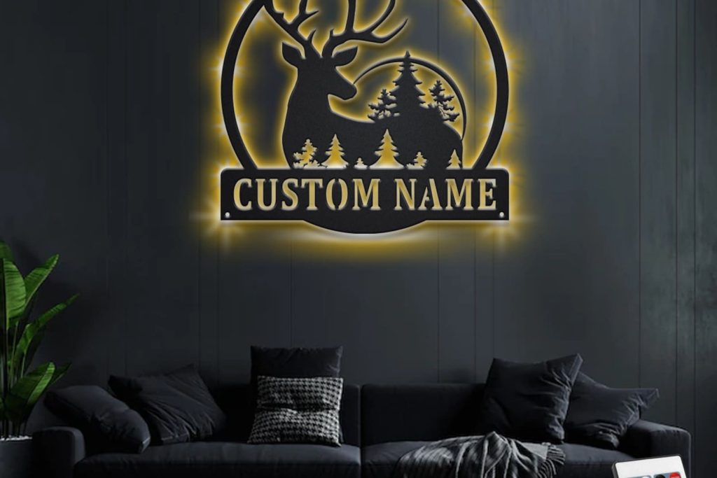 Be the first to review “Custom Deer Head Metal Sign with LED – Room Decor”
