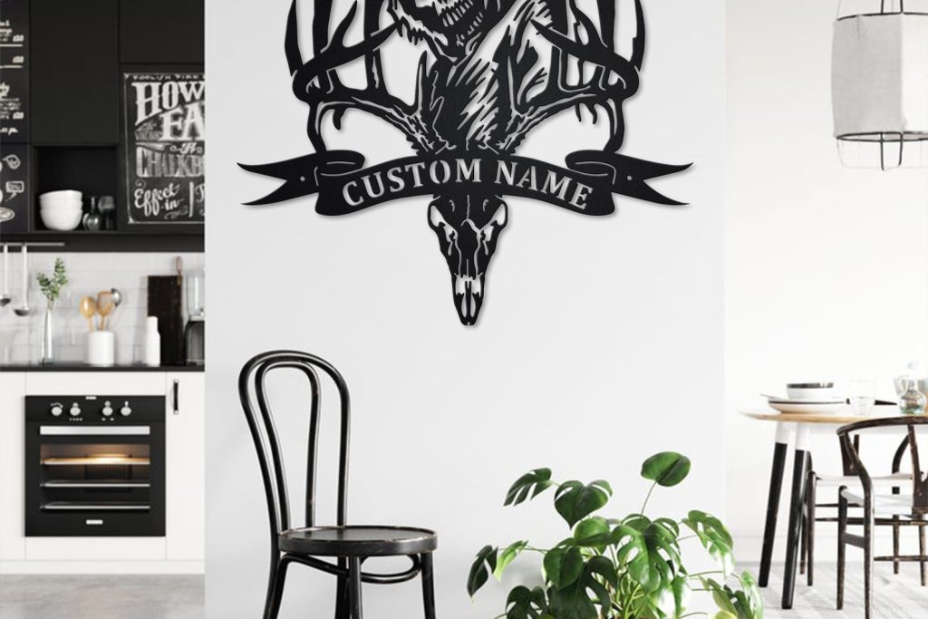 Custom Deer Skull Grim Reaper Metal Sign – Hunting Decor