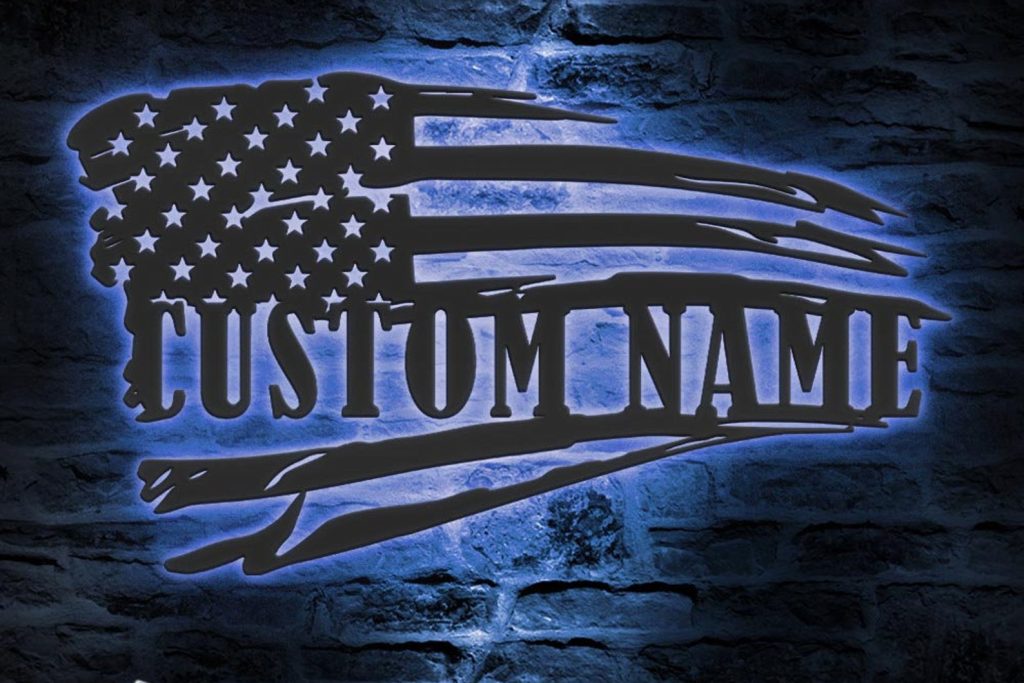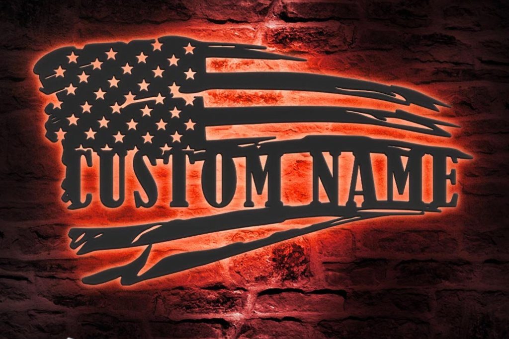 Be the first to review “Custom Distressed USA Flag Metal Wall Art – LED Light”