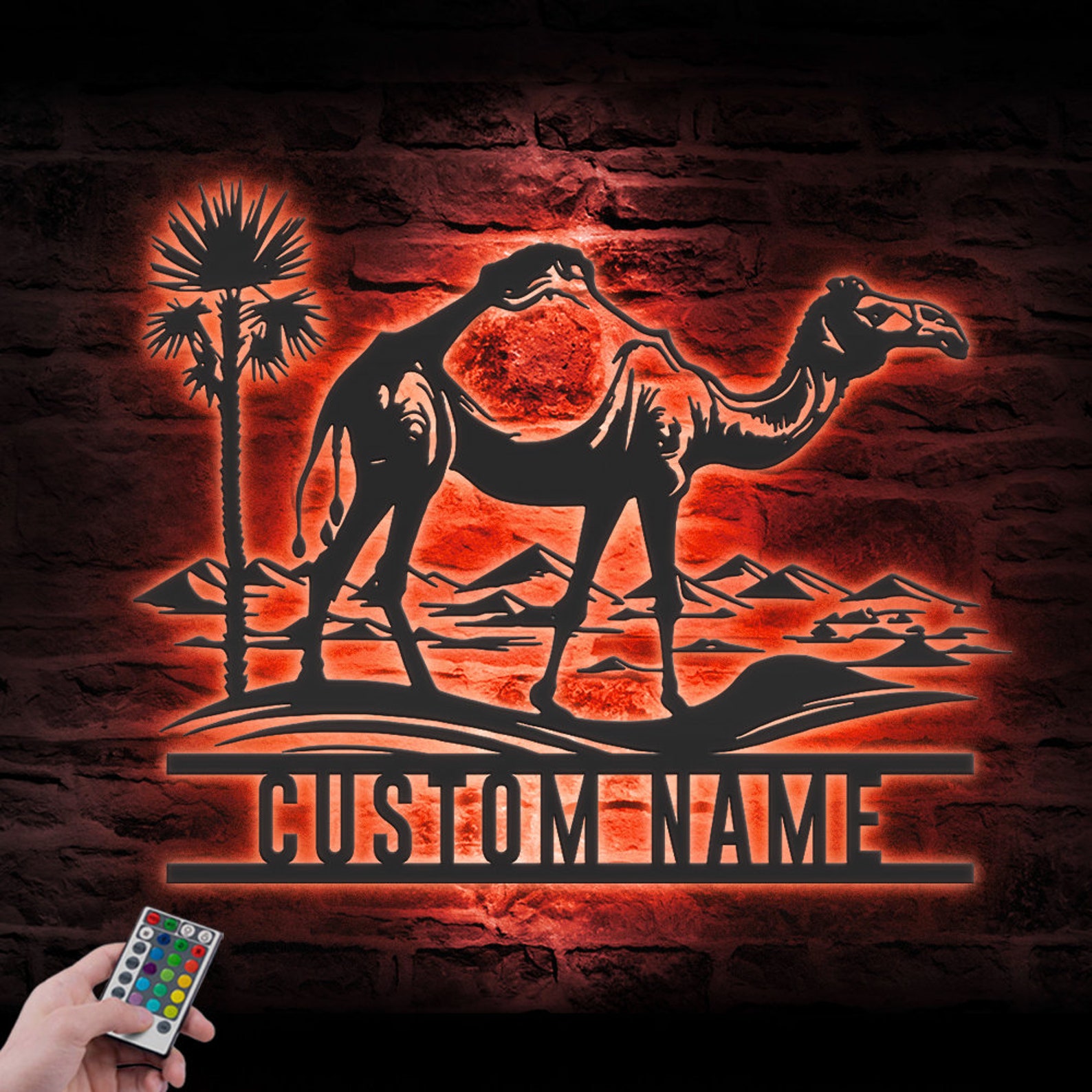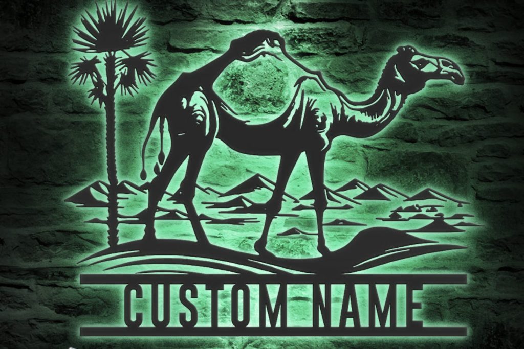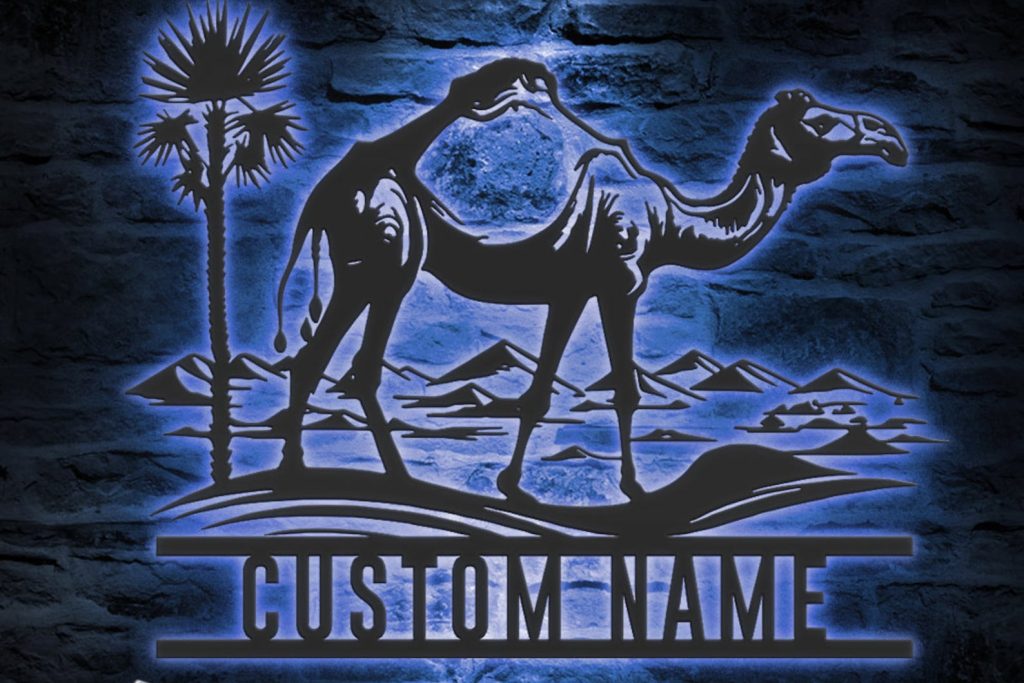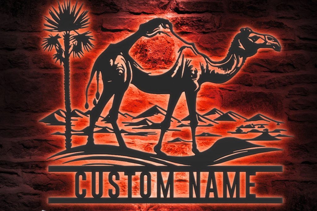 Custom Dromedary Camel LED Metal Art – Personalized Camel Name Sign