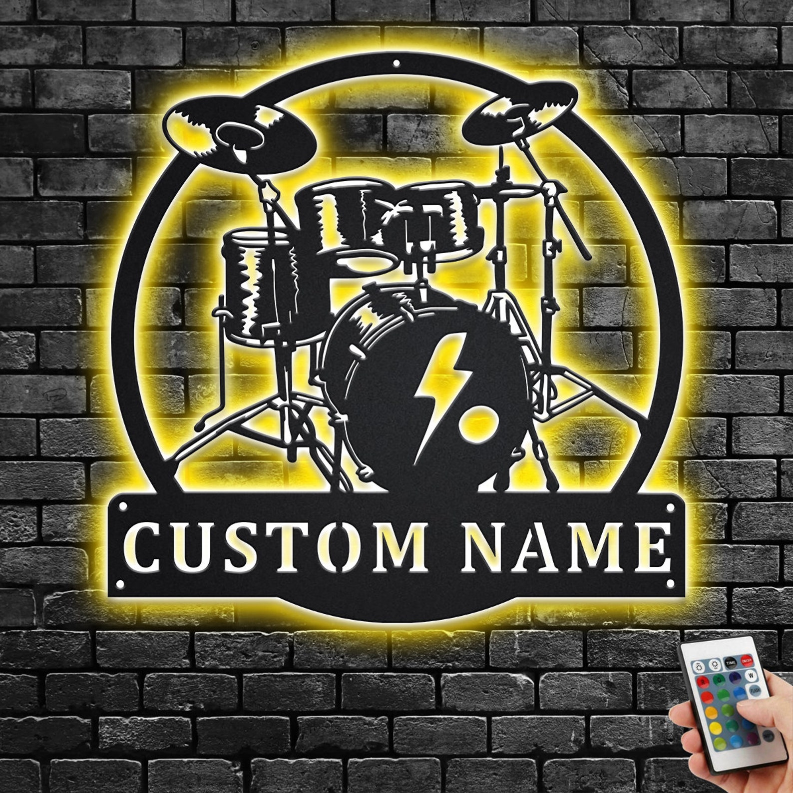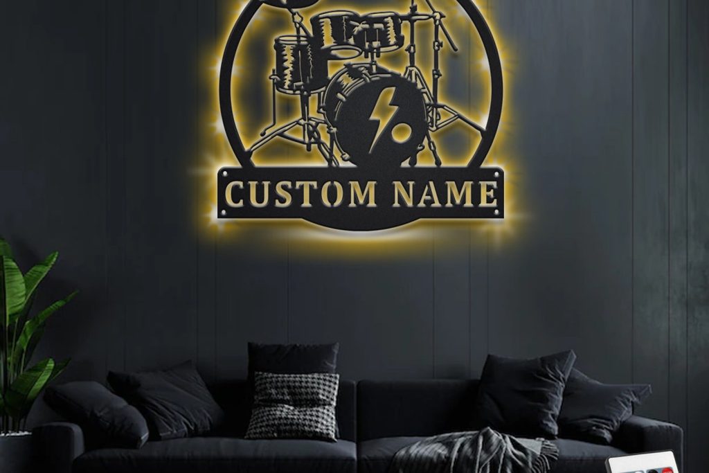 Custom Drummer Metal Sign with LED – Music Room Decor