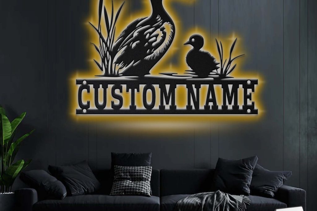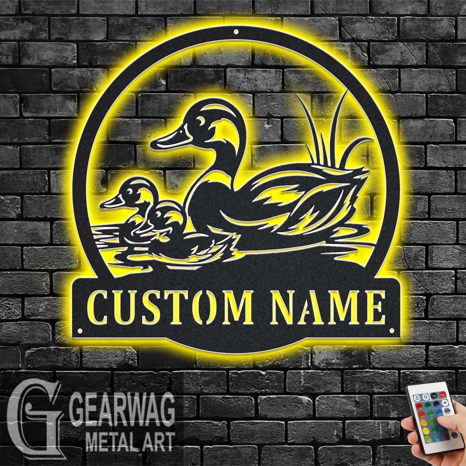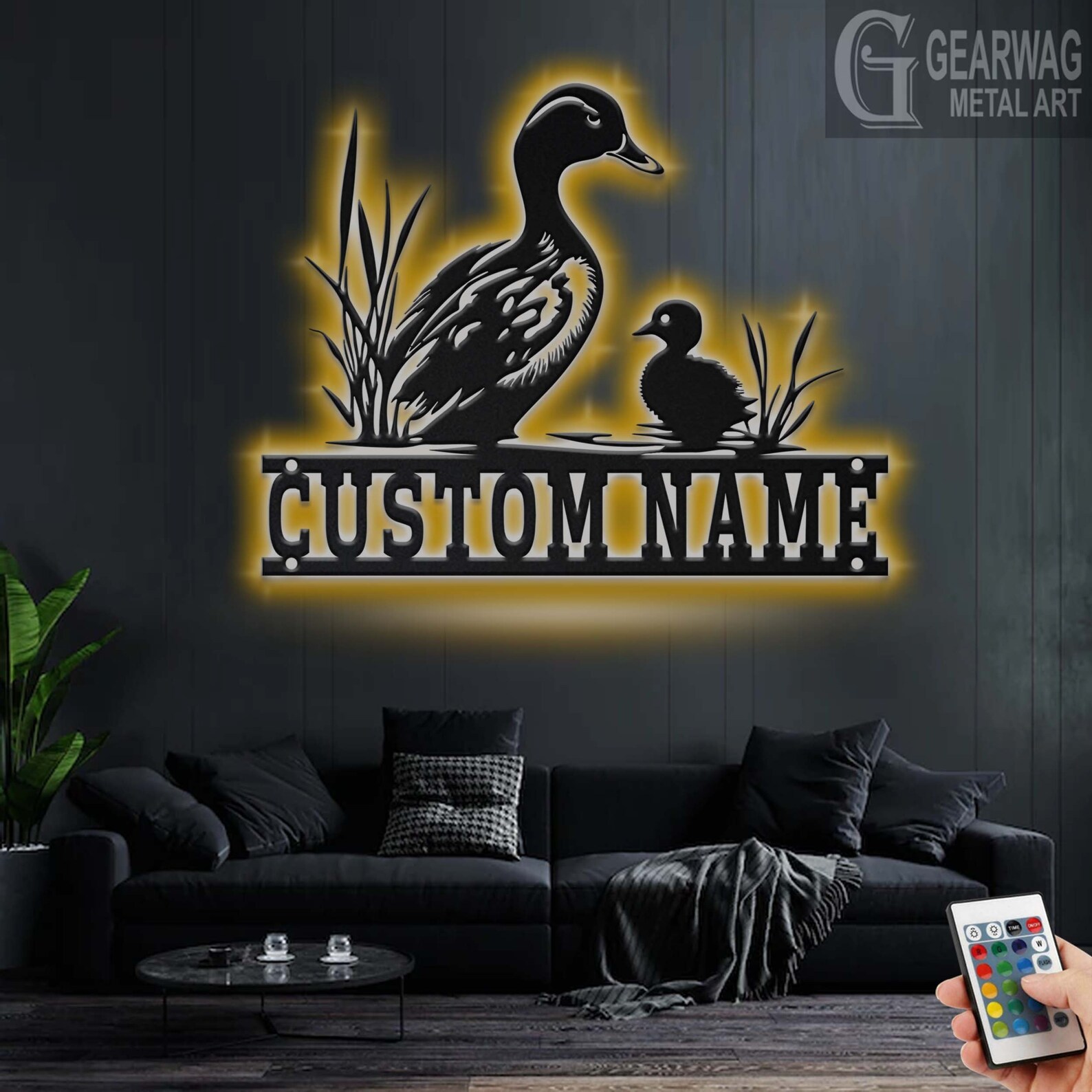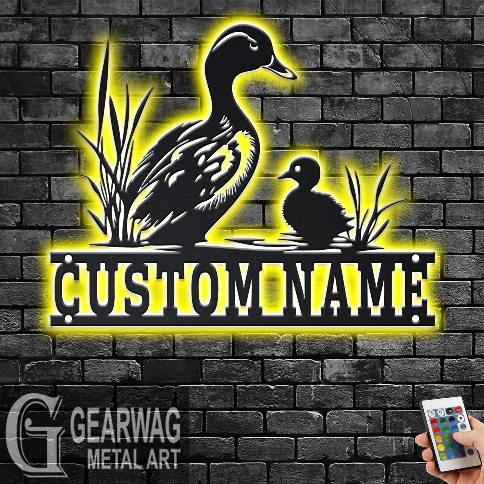 Custom Duck Metal Sign with LED Light: Personalized Room Decor