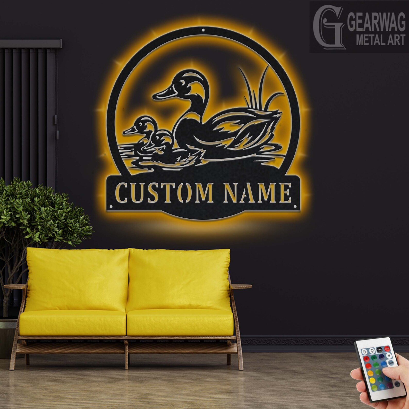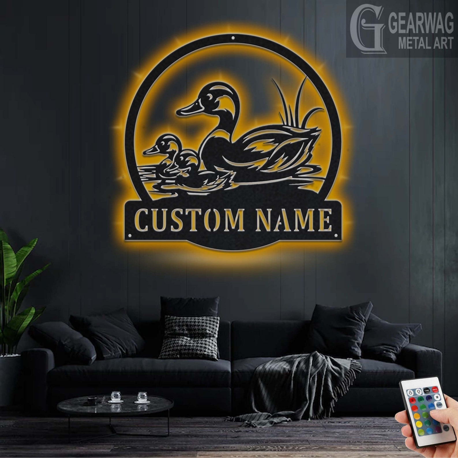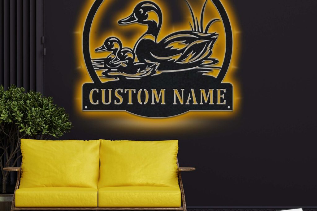 Custom Duck Metal Sign with LED Light: Personalized Room Decor