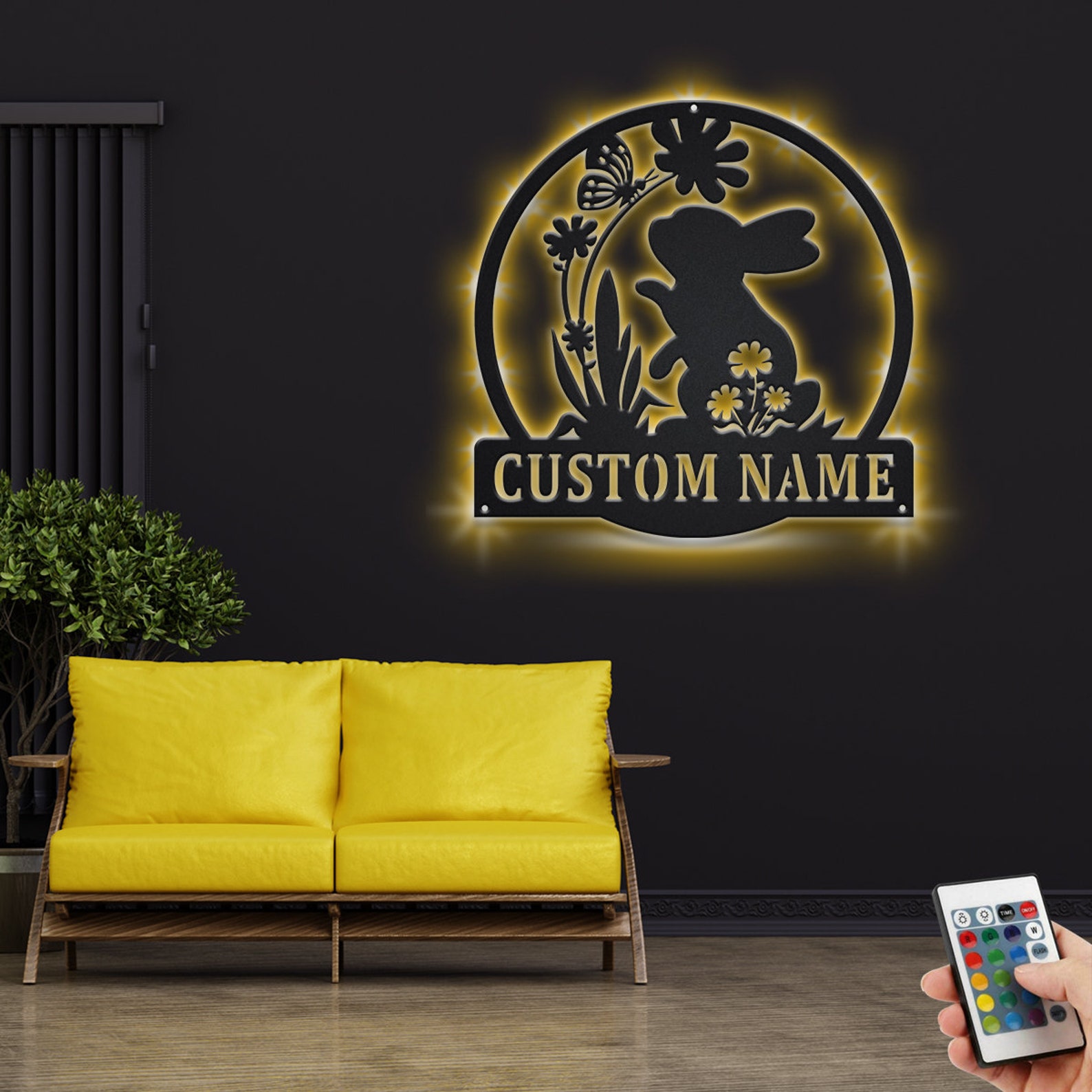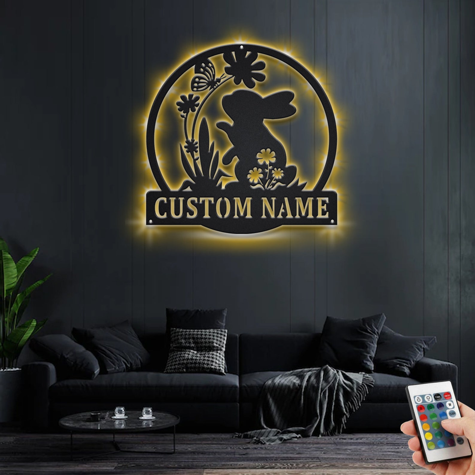 Custom Easter Bunny LED Metal Art – Personalized Name Sign