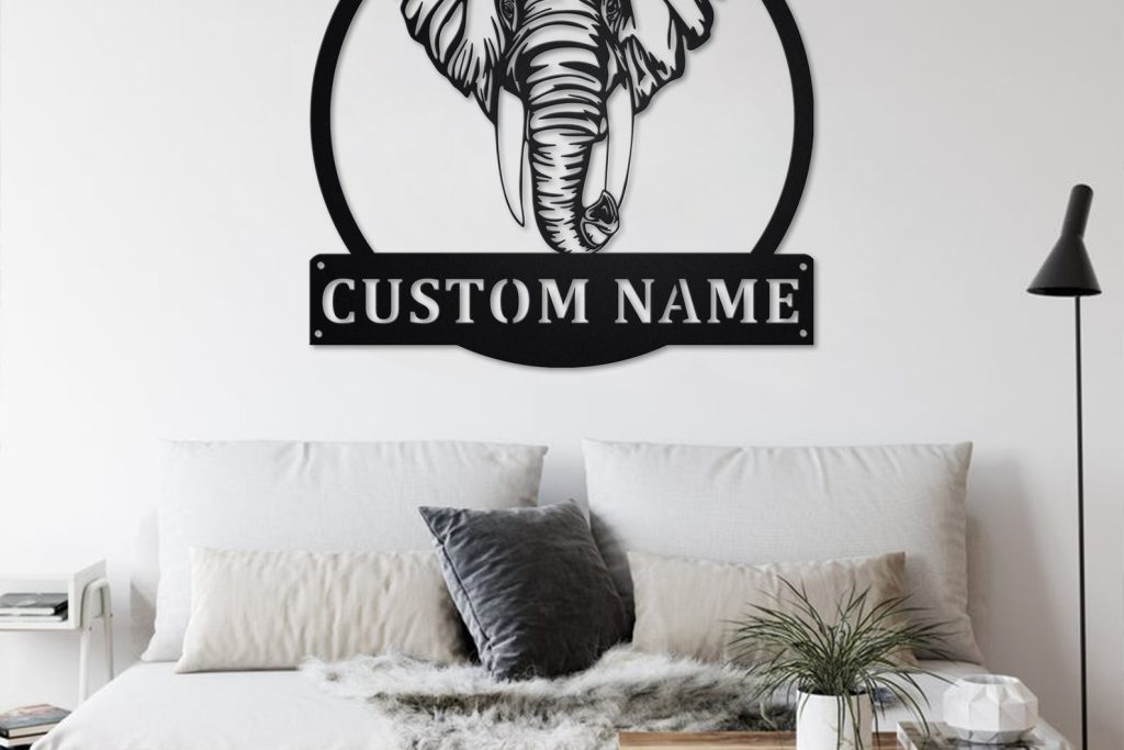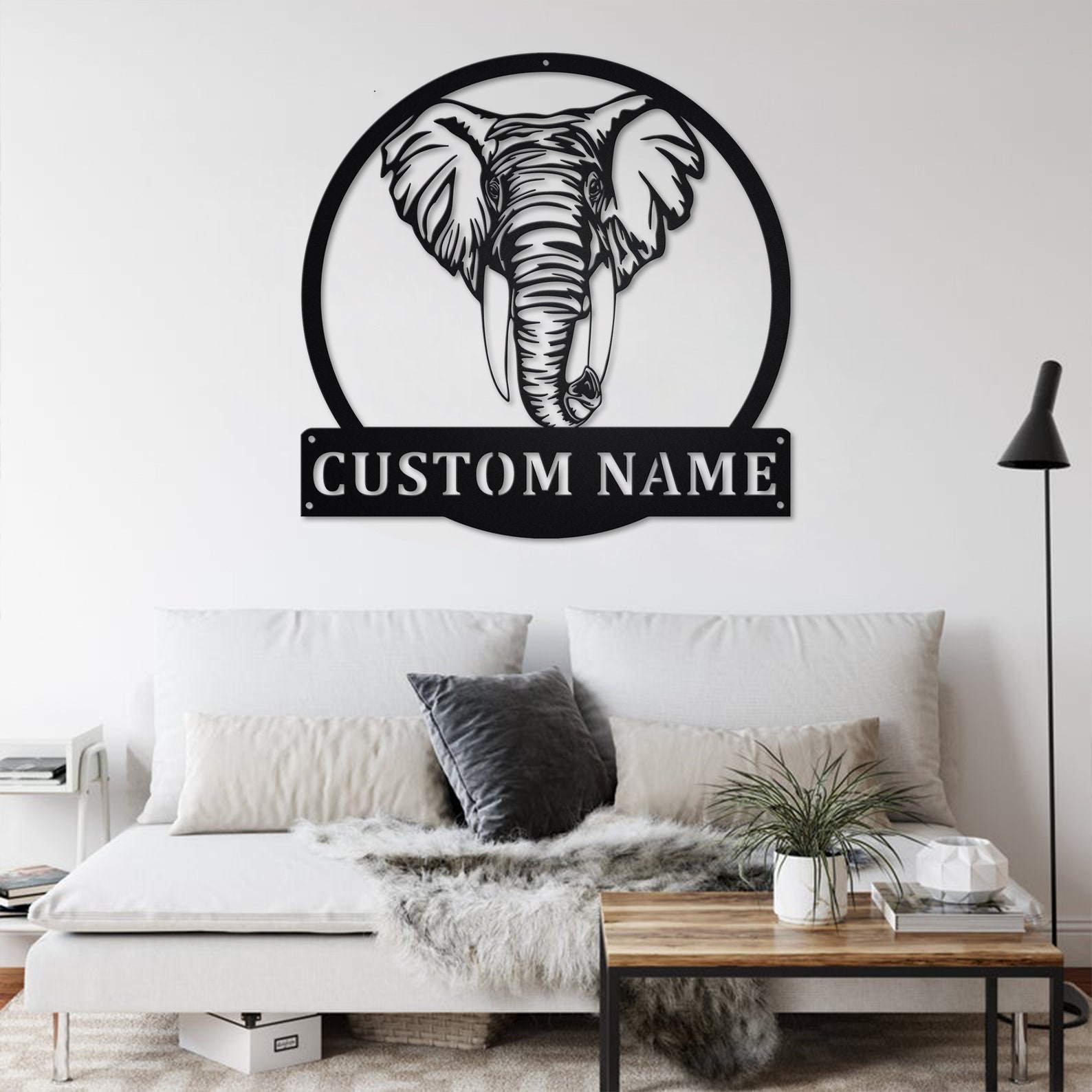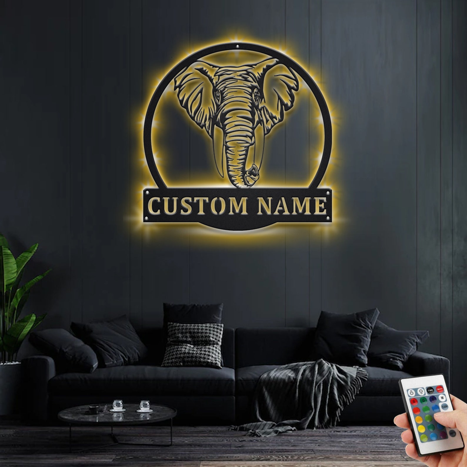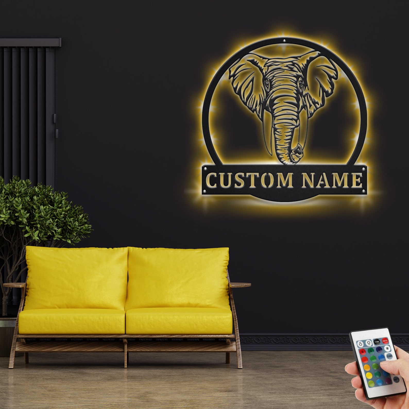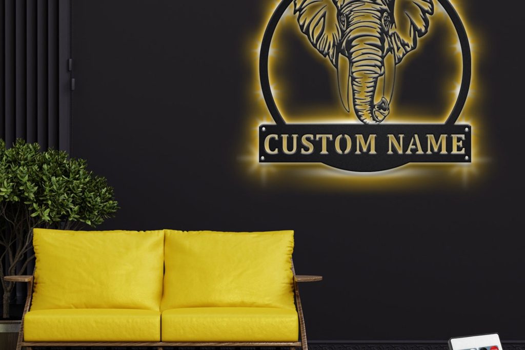 Custom Elephant Head Metal Sign with LED – Room Decoration