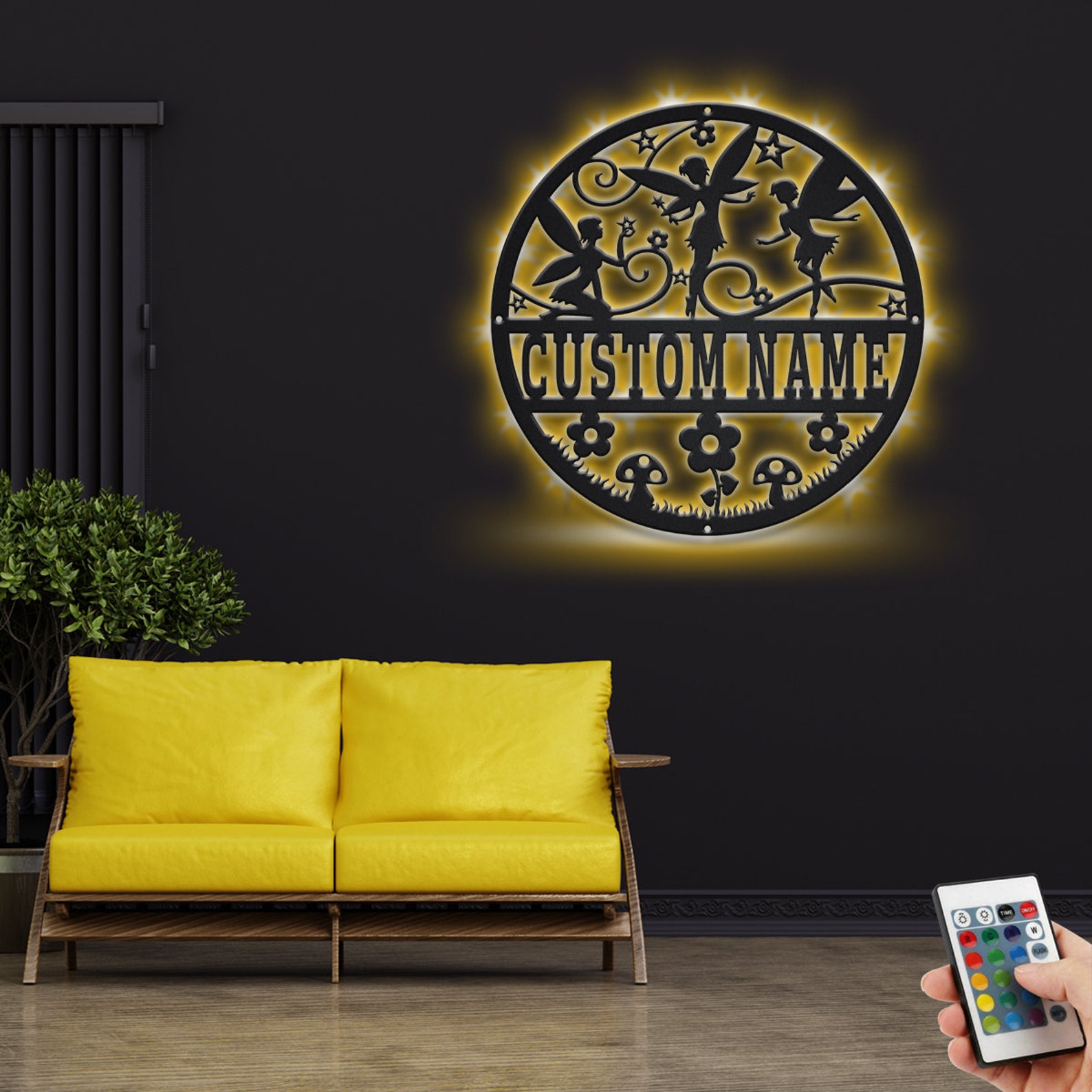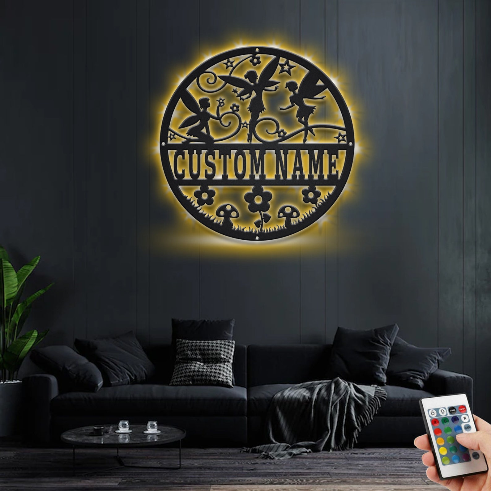 Custom Fairy Metal Sign with LED – Personalized Room Decor
