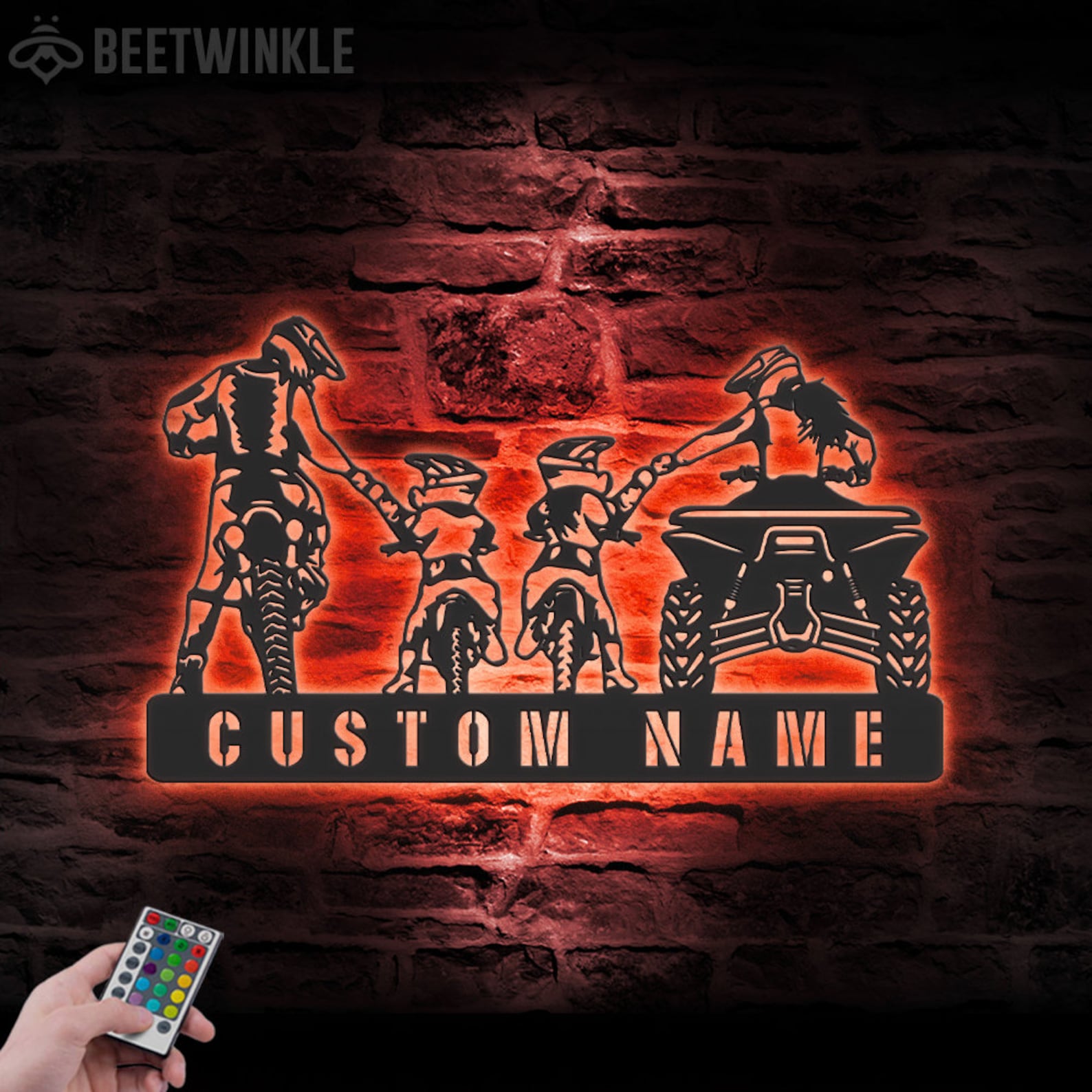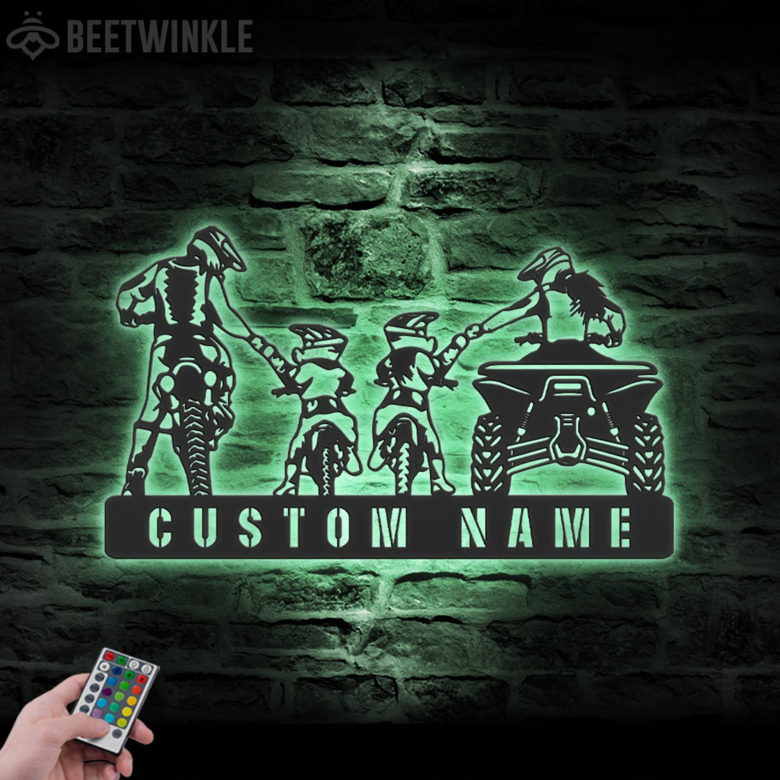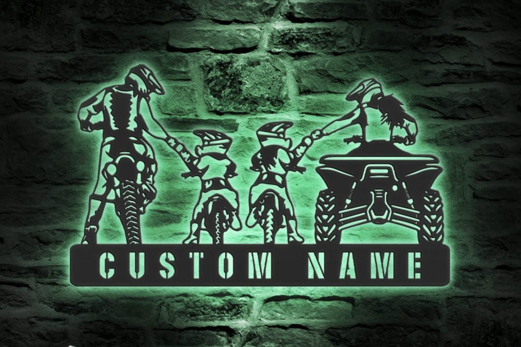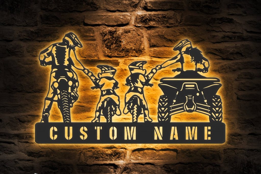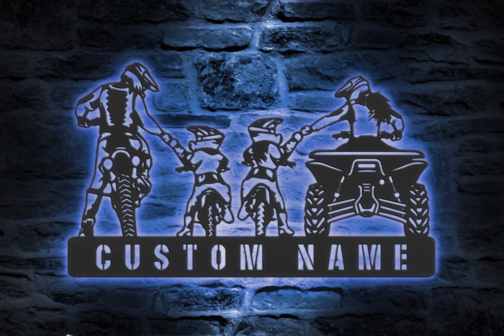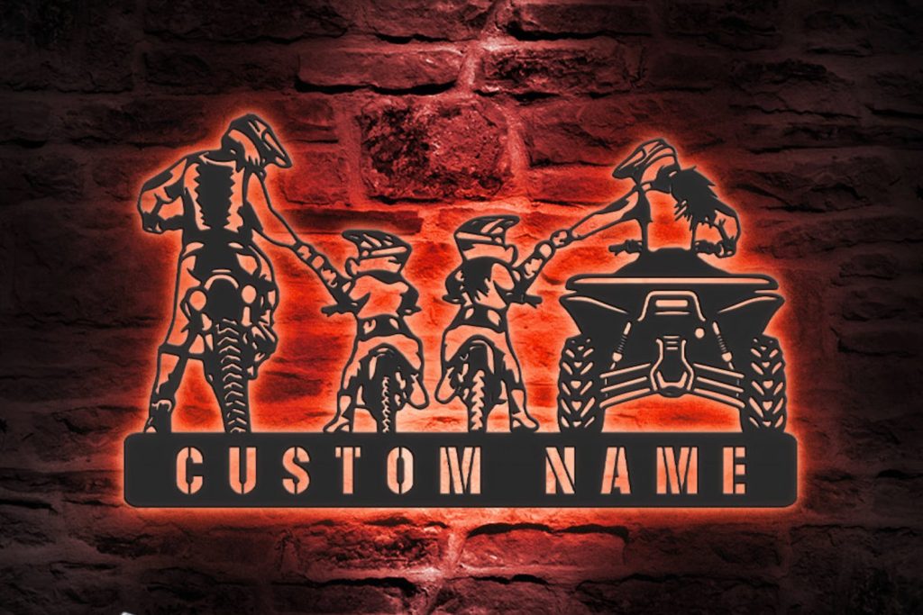 Be the first to review “Custom Family ATV Quad Motocross Biker Metal Wall Art – LED Light, Personalized Sign”