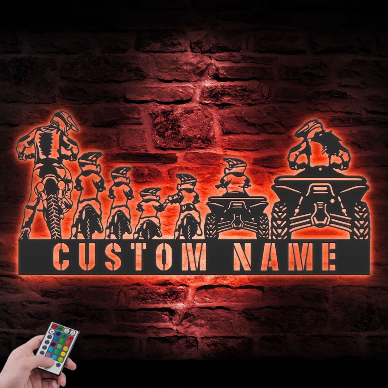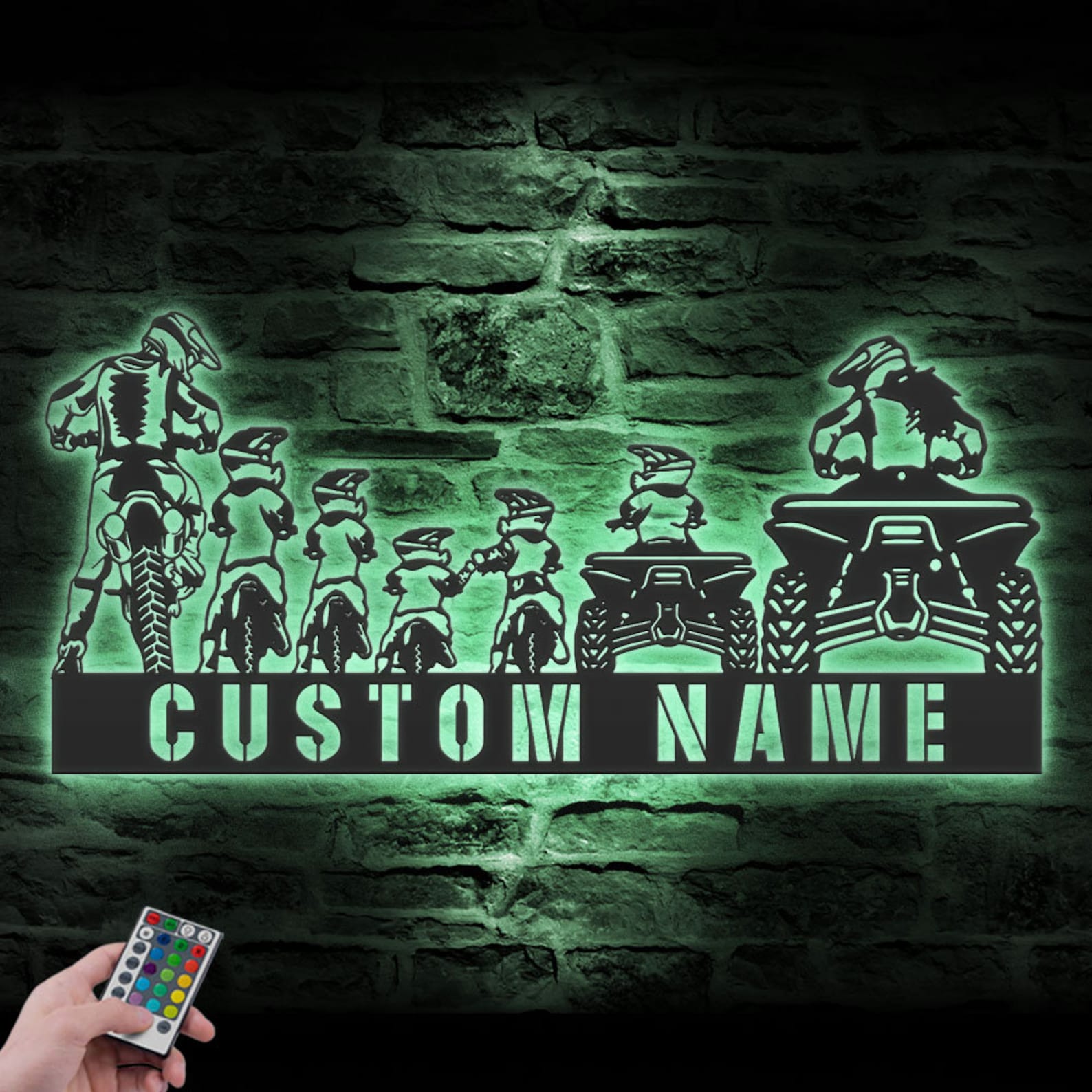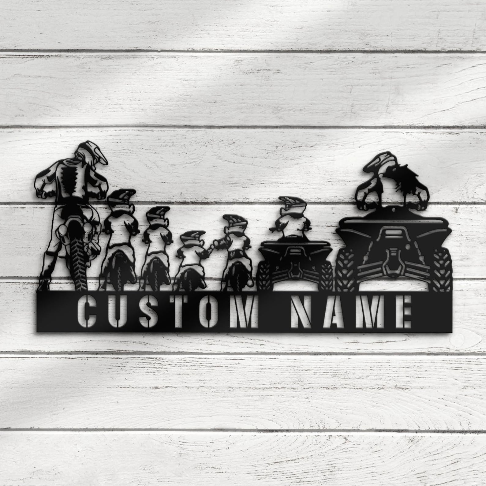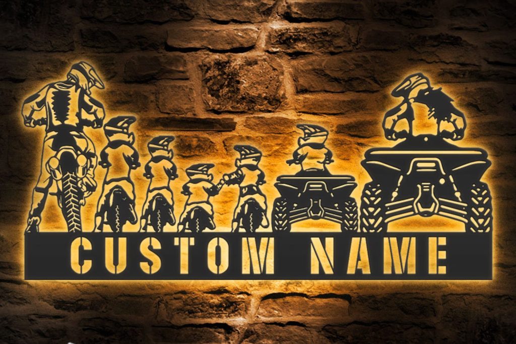 Be the first to review “Custom Family ATV Quad Motocross Biker Metal Wall Art – LED Light, Personalized Sign”