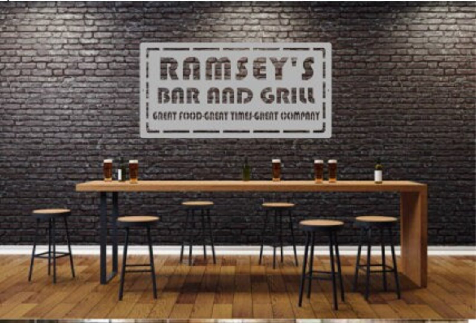 Personalized Metal Family Bar and Grill Restaurant Or Business Sign! Add 3 lines of your own text and have it cut out of metal! Made out of 14 gauge American made and bought steel. Integrated mounting holes for easy installation. Each sign is painted with industrial paint for use indoors or outdoors! Custom Orders Are Welcome! If You Have Any Questions Please Message Us! We Are family owned business who enjoy bringing you the best service and quality around! If you Have Special Instructions or designs send us a message and we will love to work with you side by side to design your sign. Discounts on multiple orders! ships within 3 days even though its custom to order! There is a lot of options to get metal art out there, But if you give us the chance to make yours we will NOT disappoint! Thank You For Looking!