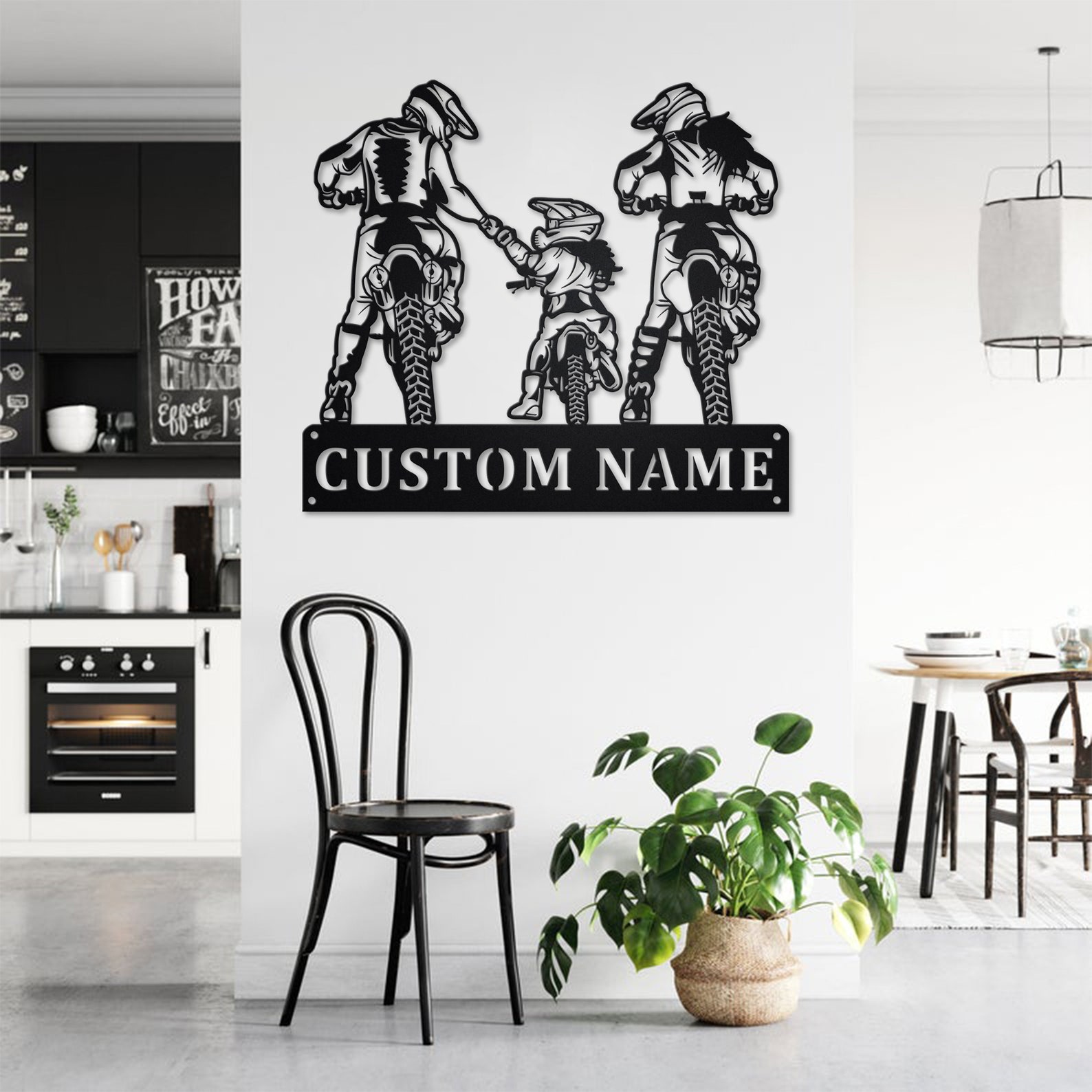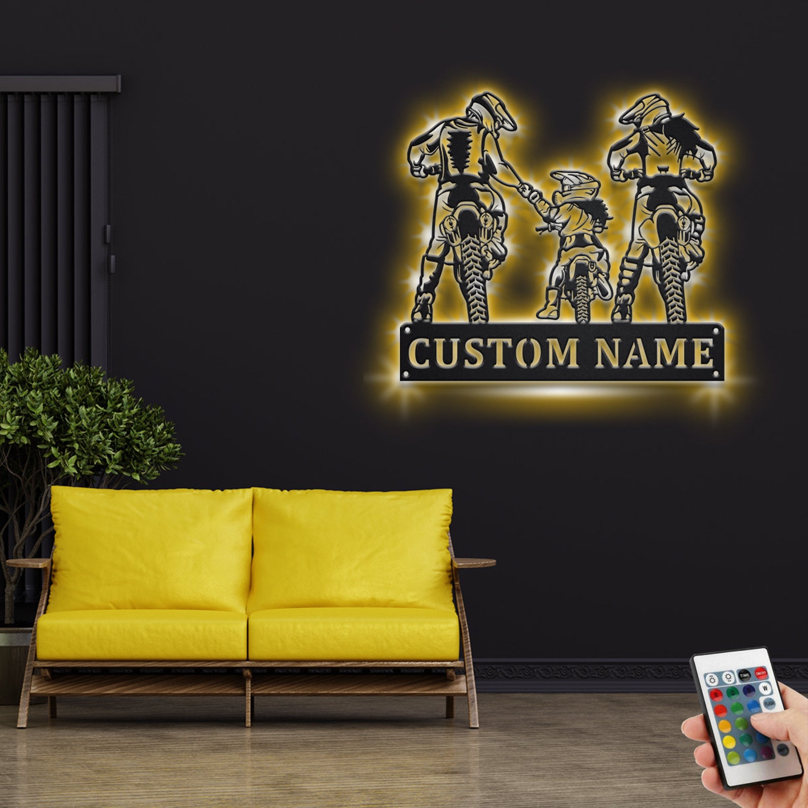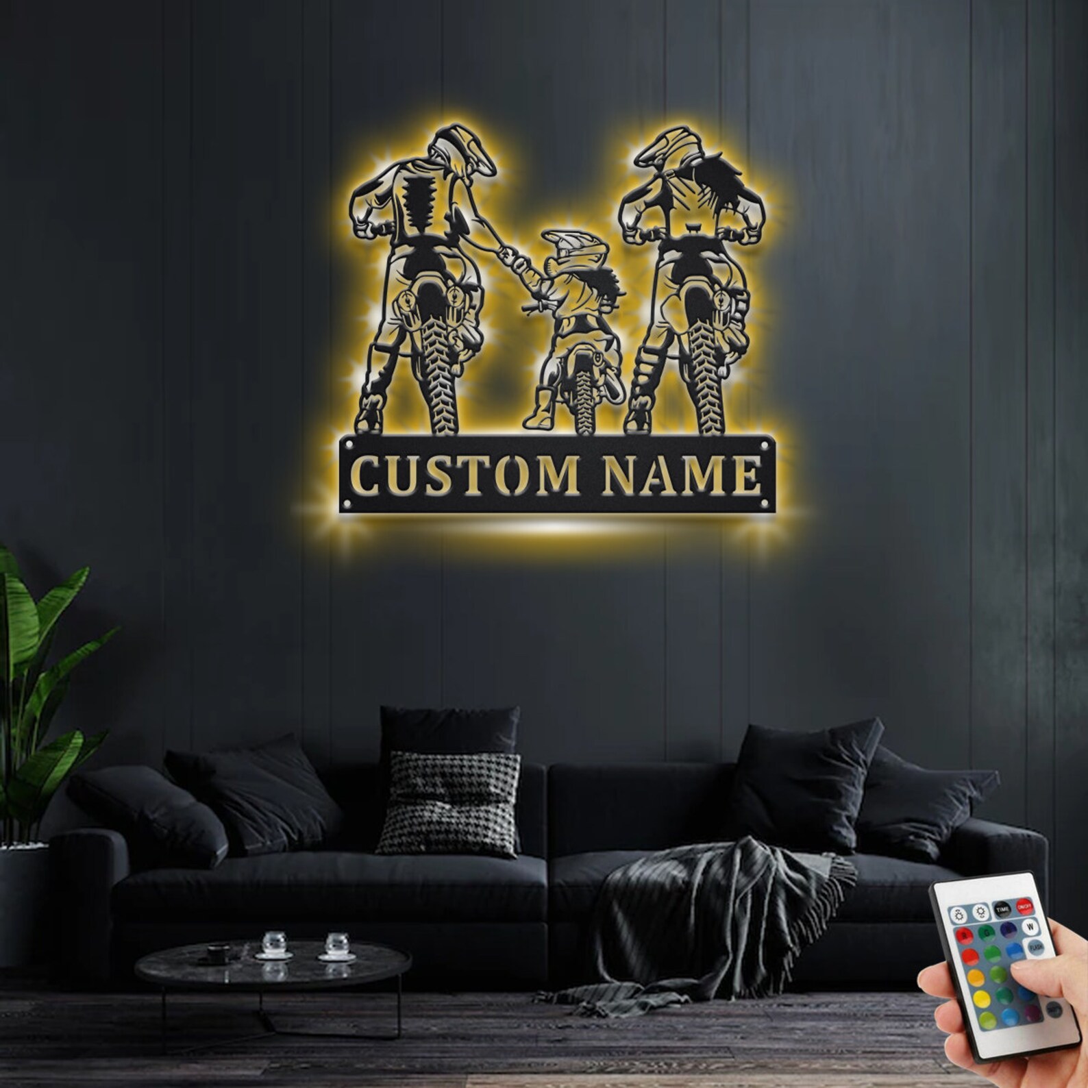 Custom Family Motocross Metal Wall Art – LED Light, Personalized Family Biker Sign