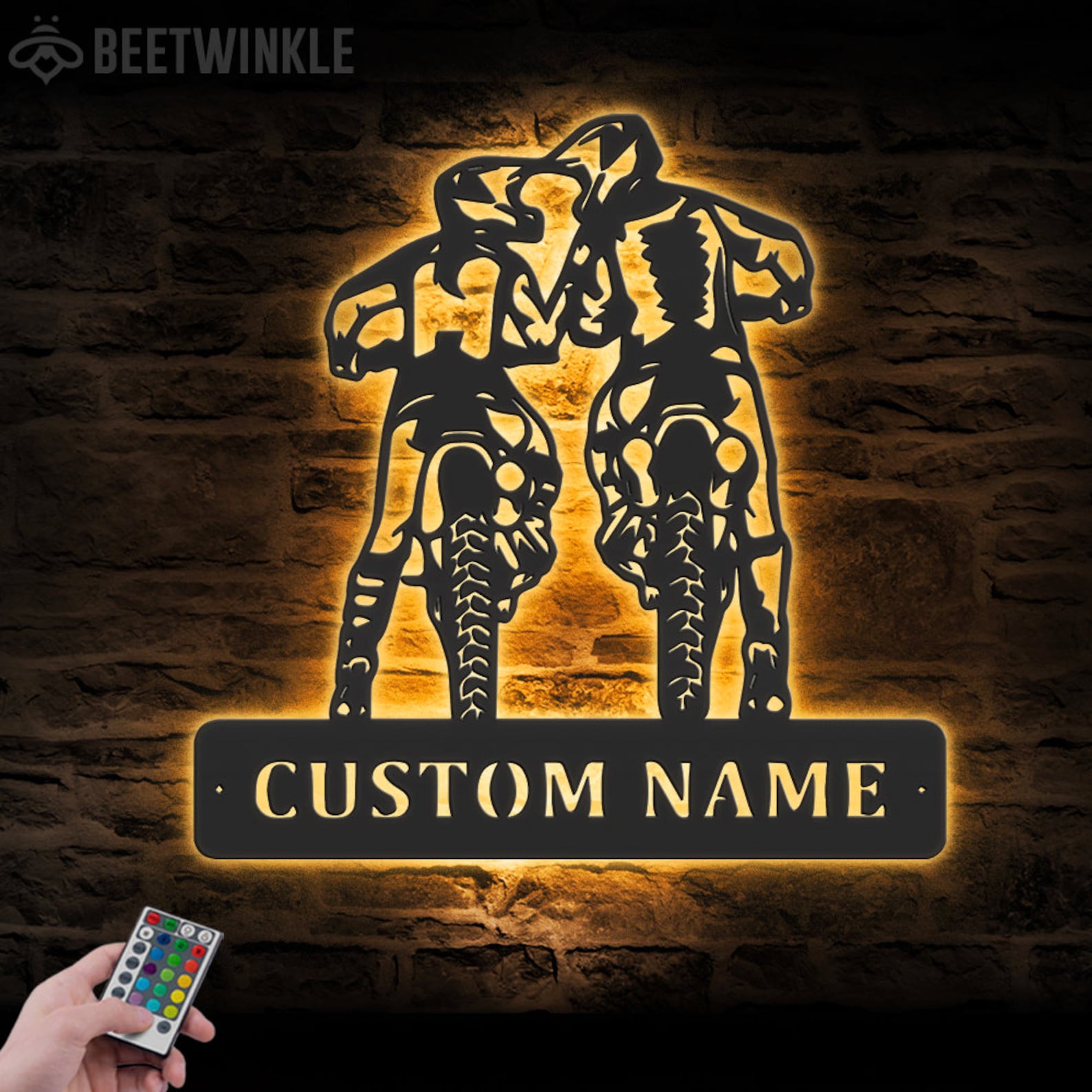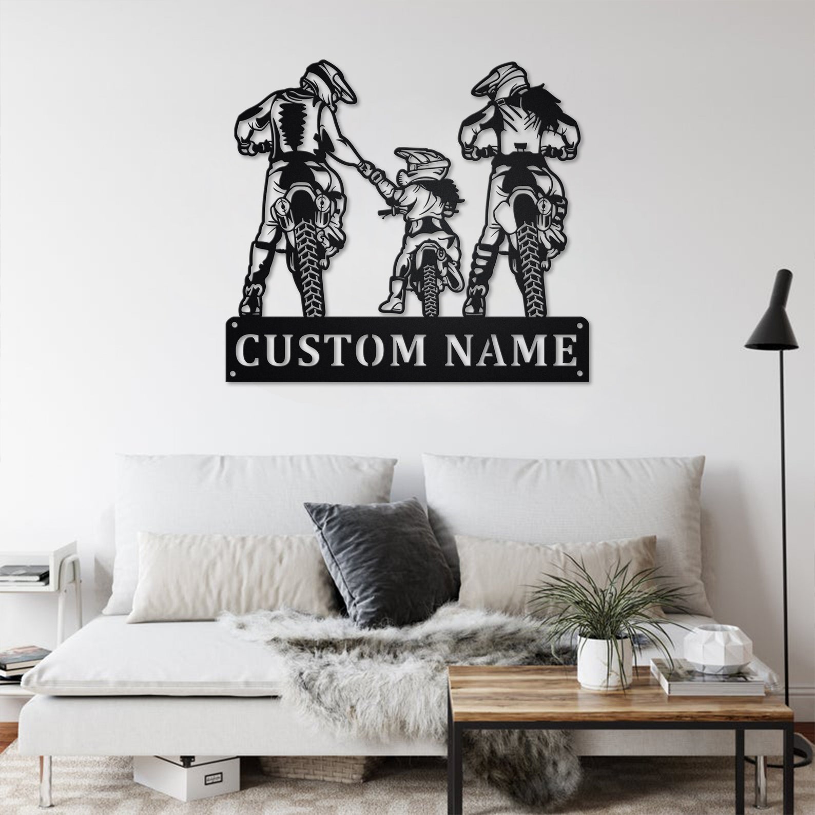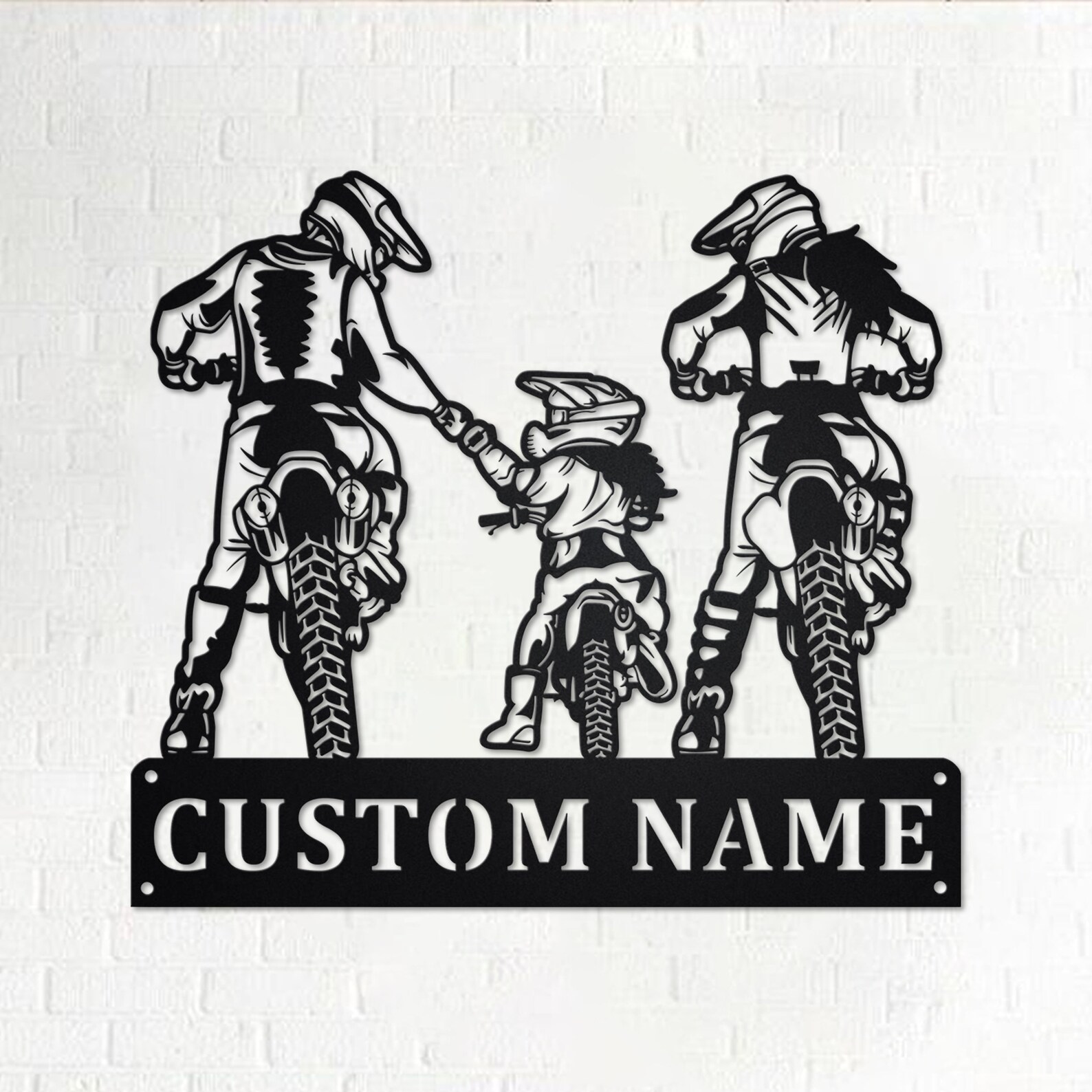 Custom Family Motocross Metal Wall Art – LED Light, Personalized Family Biker Sign