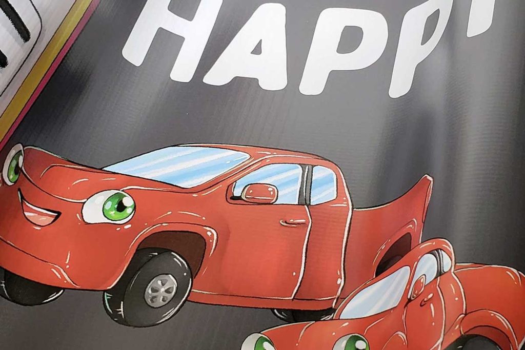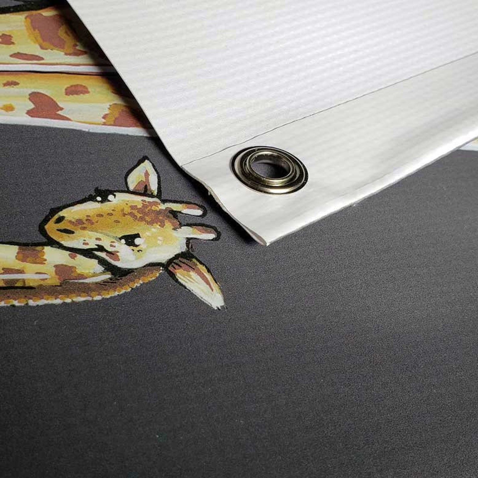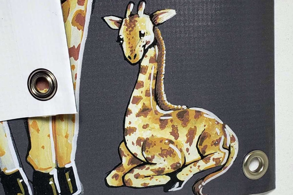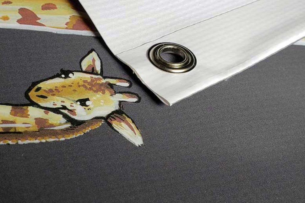 Each banner is made and cut with care! Side edges are folded to the back before holes are punched and metal rings are added. This ensures the grommets have plenty of material to hold onto, reducing risk of tearing or breaking.