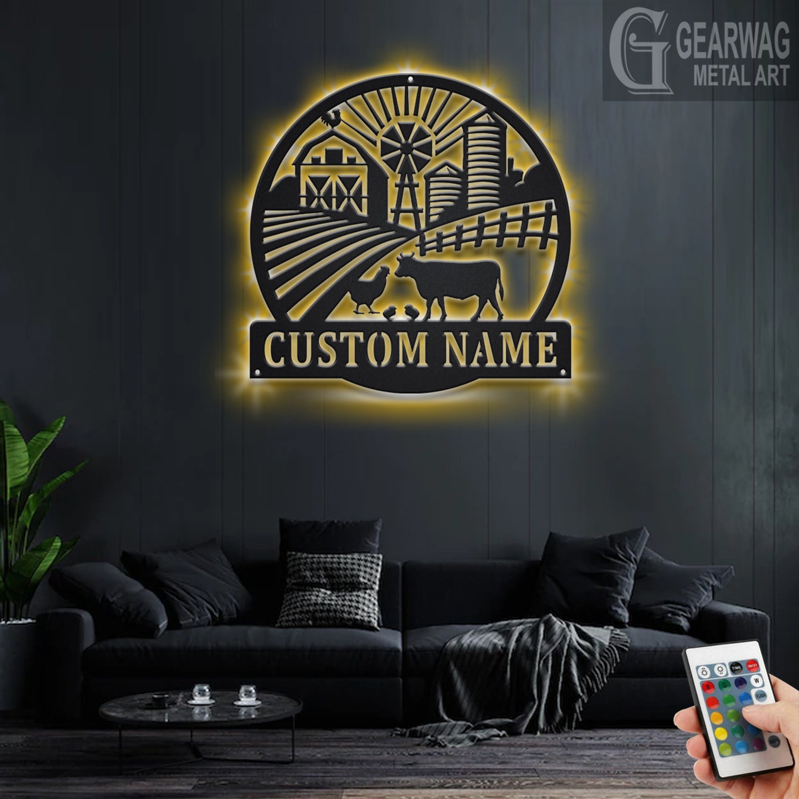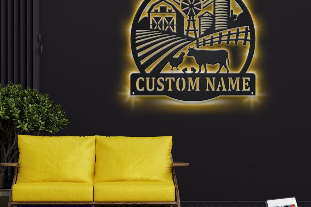 Custom Farmhouse Metal Sign with LED – Personalized Decor