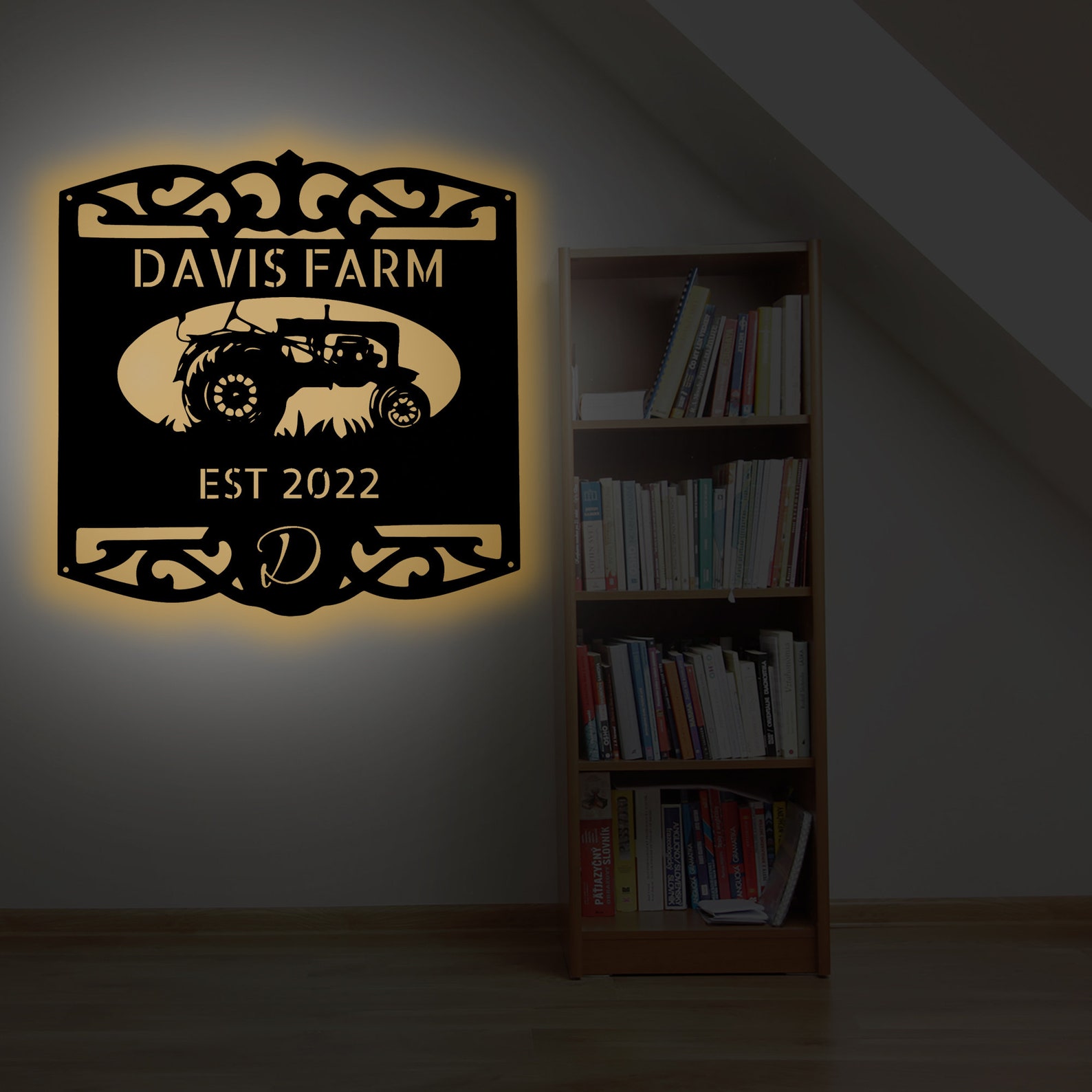 Custom Farmhouse Metal Wall Led Signs-Personalized Farmhouse Metal Wall Art-Farm Tractor Art-Gift For Farmers-Custom Name Sign-Farm Decor
