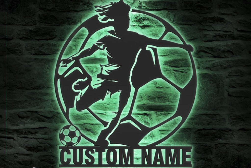 Be the first to review “Custom Female Soccer Metal Art with LED Light”