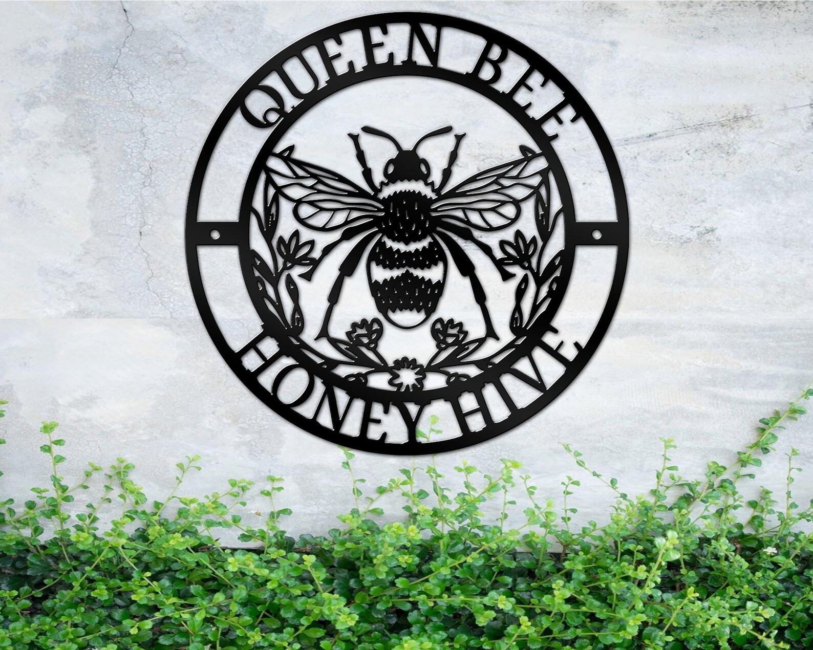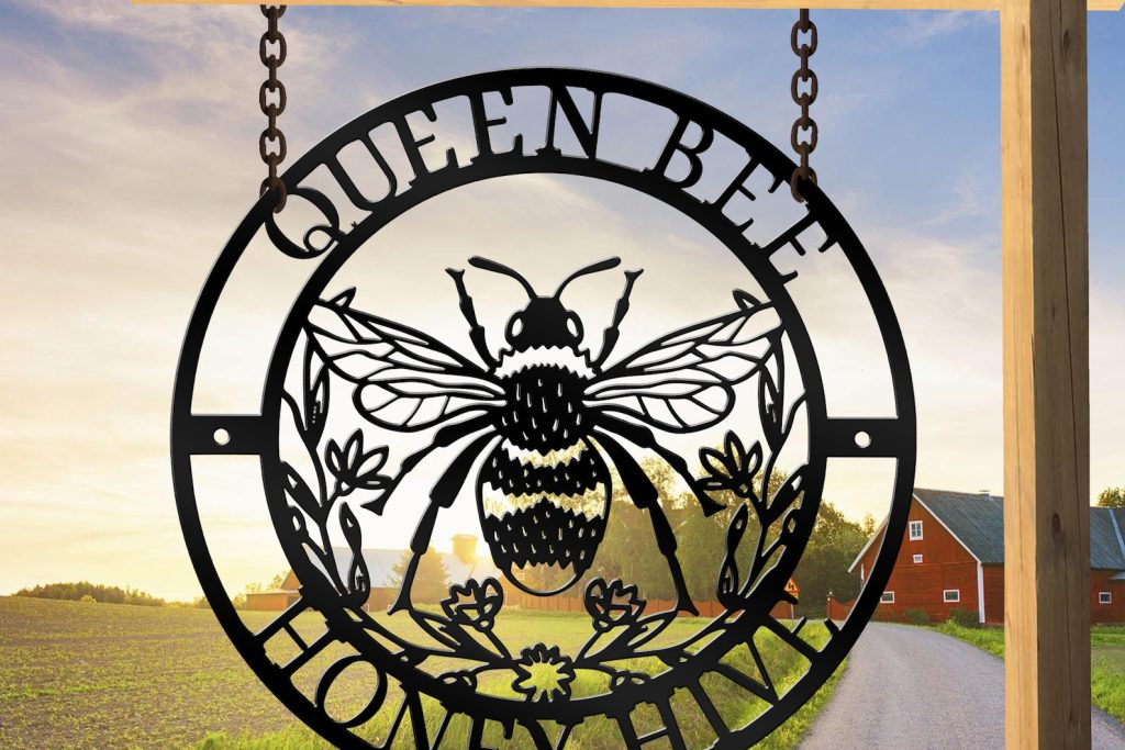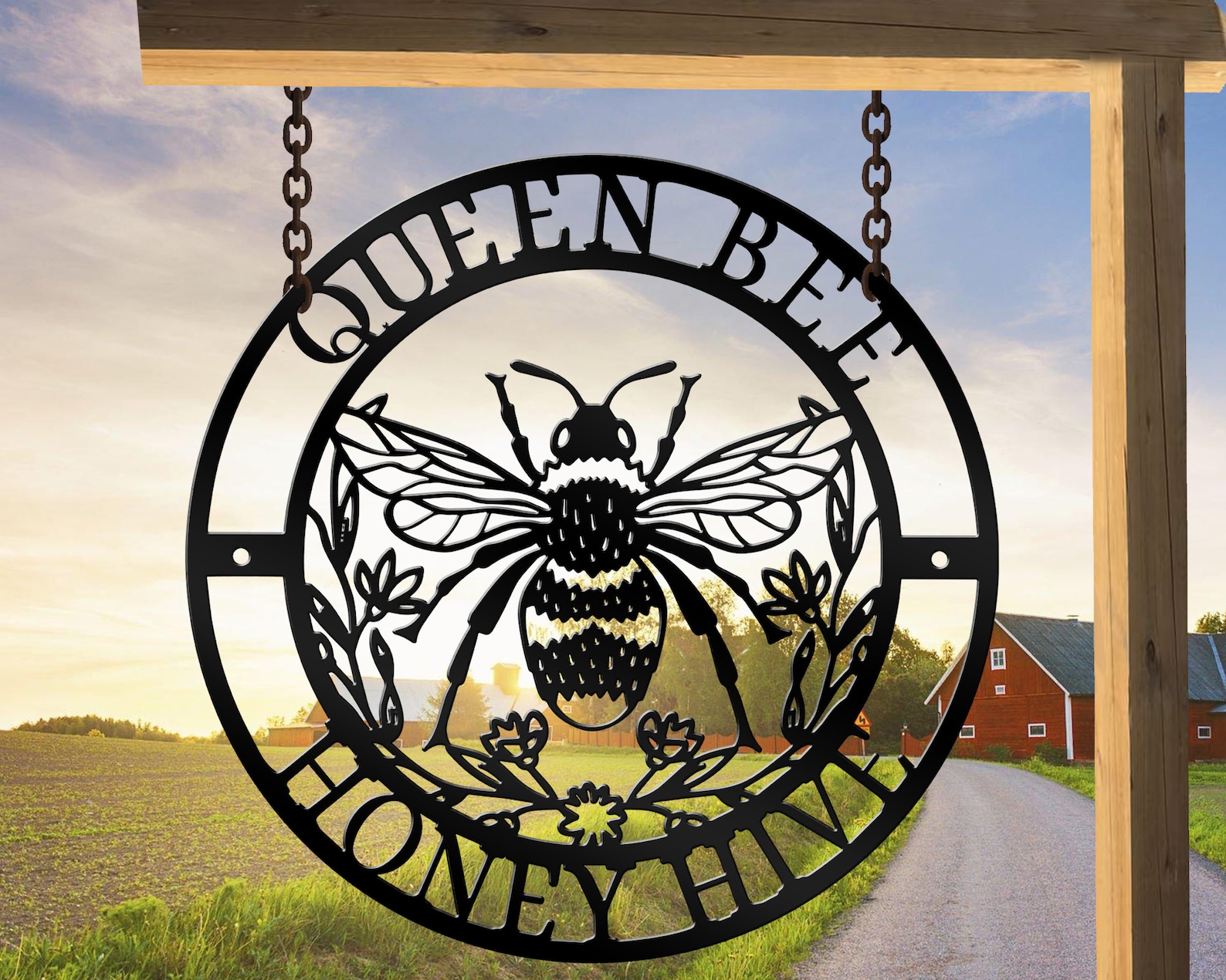 Custom Floral Bee Metal Sign – Farm Kitchen Wall Art