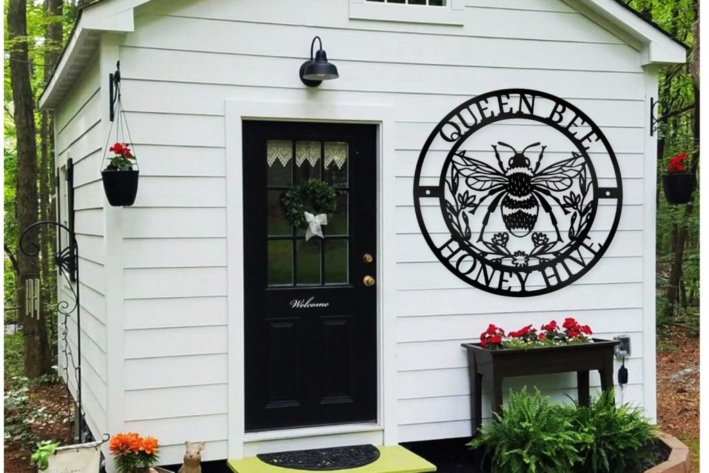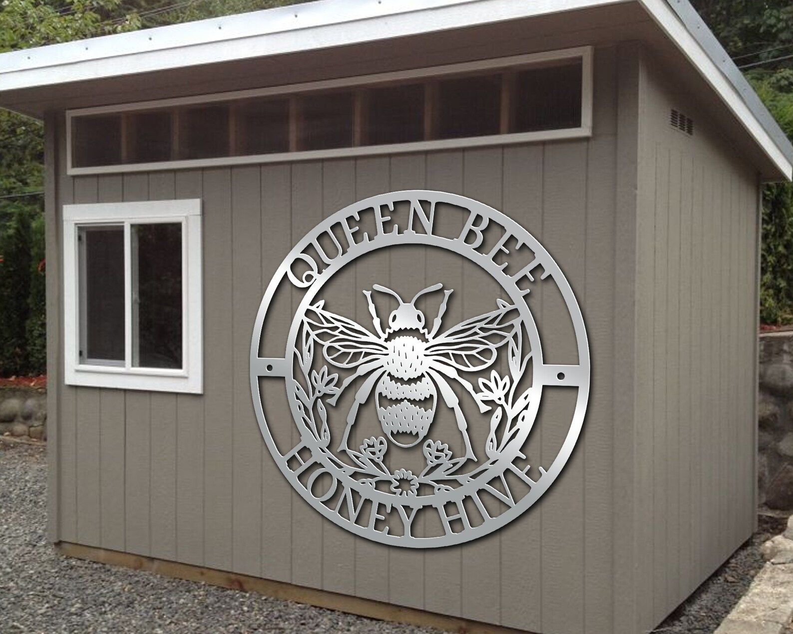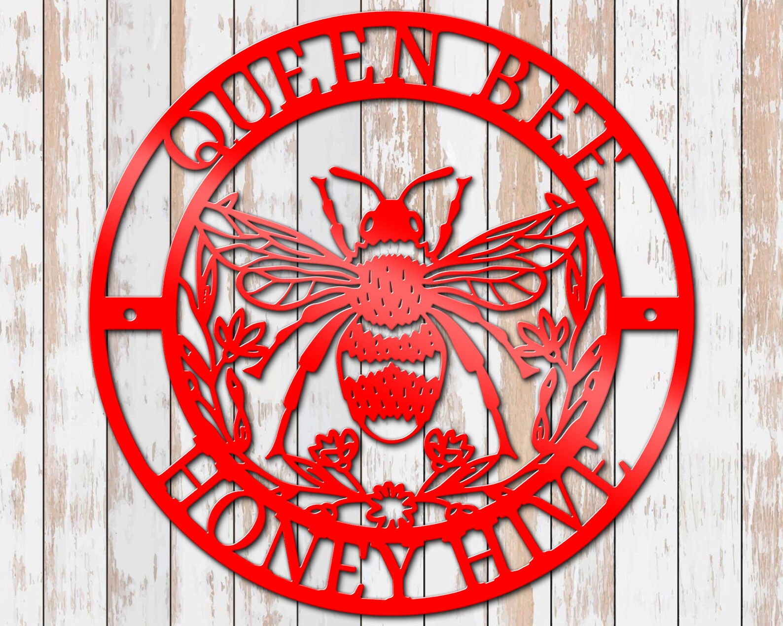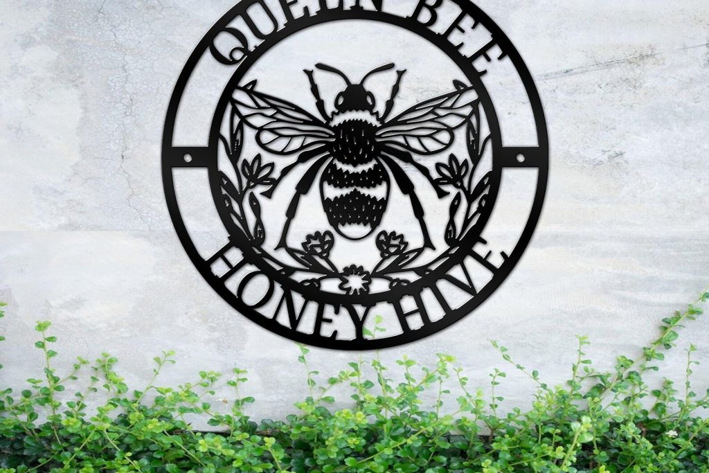 Custom Floral Bee Metal Sign – Farm Kitchen Wall Art