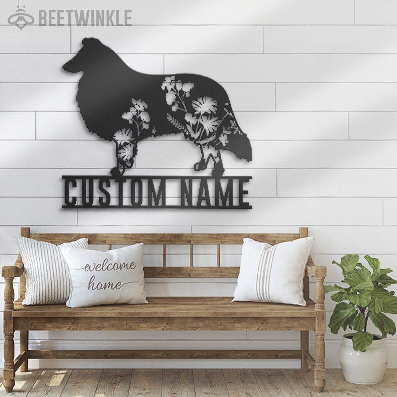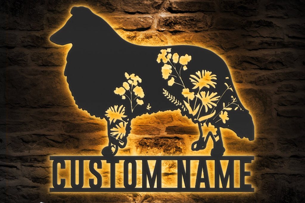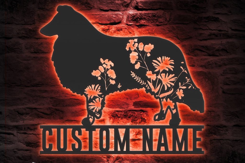 Be the first to review “Custom Floral Collie LED Metal Art – Dog Lover Name Sign”