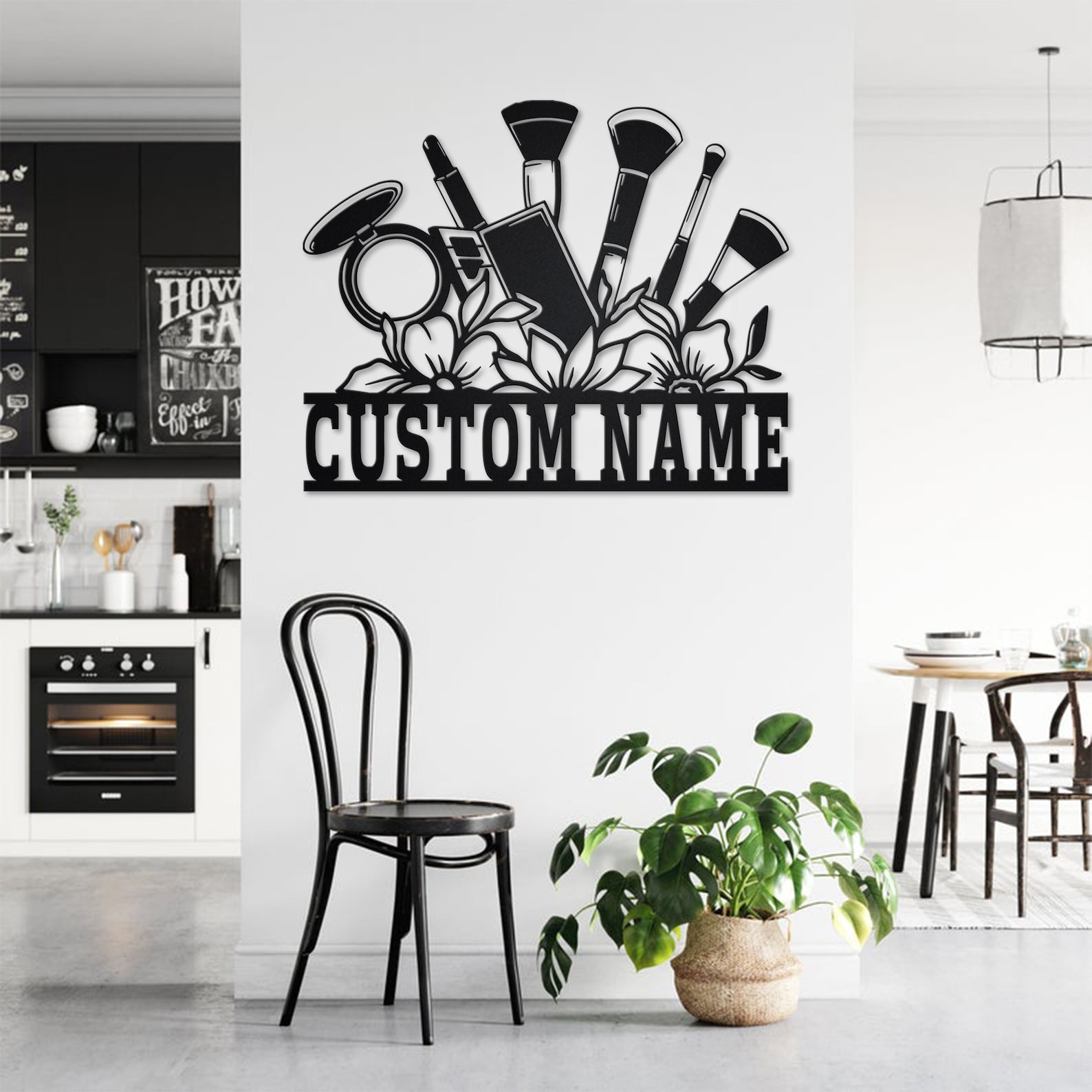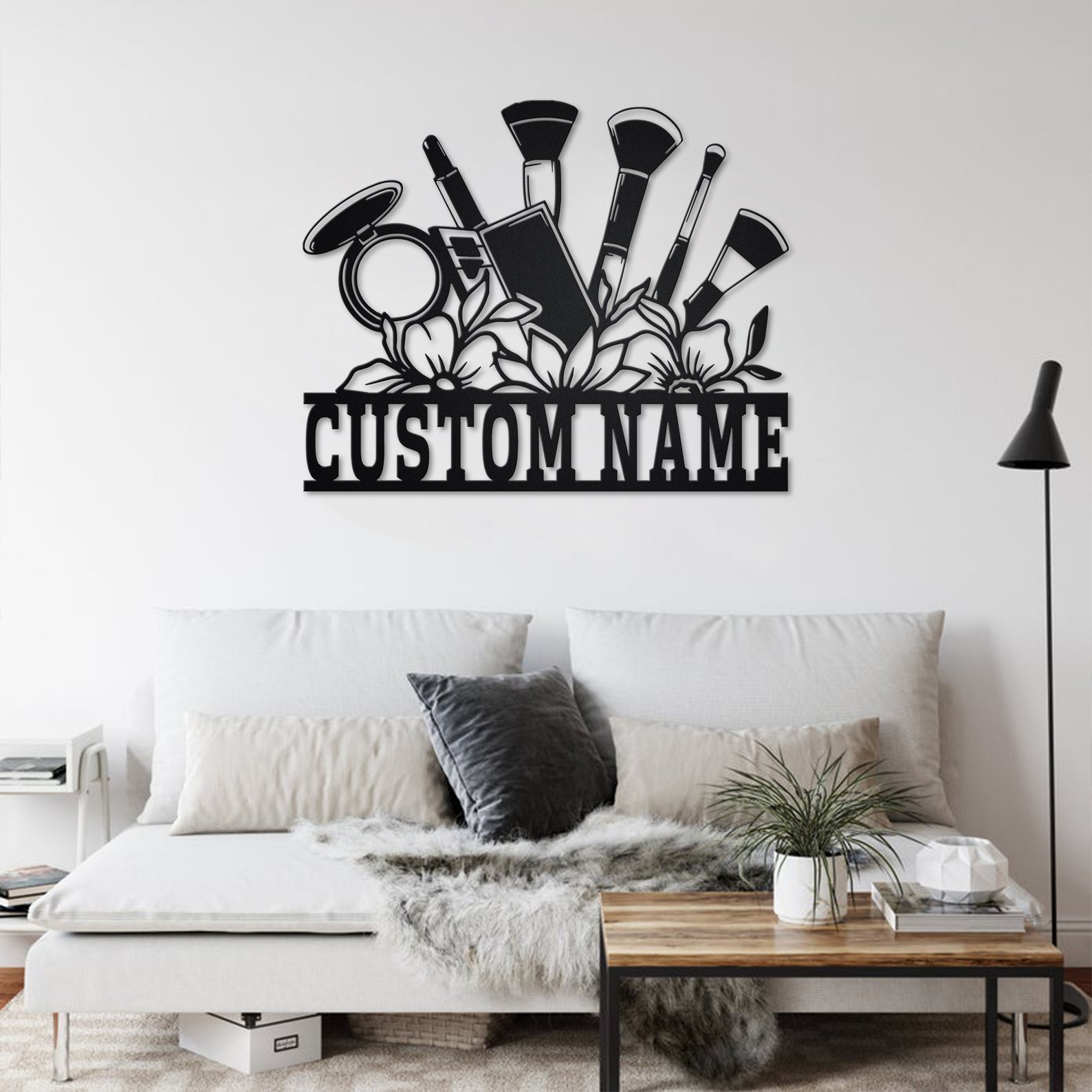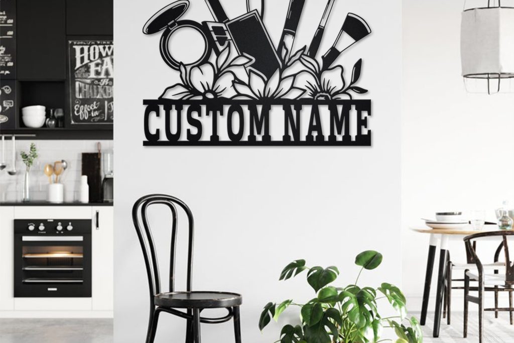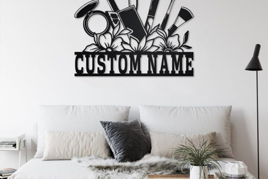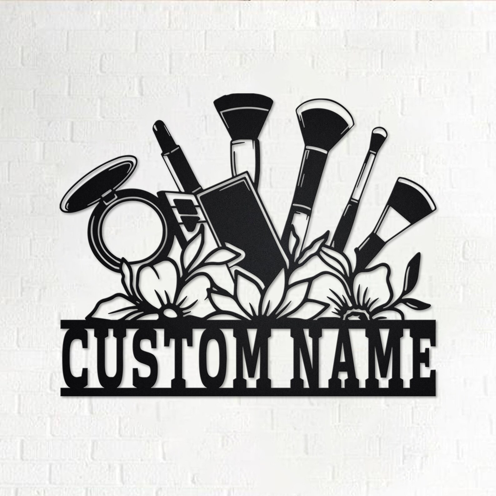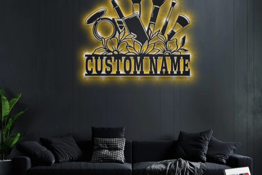 Custom Floral Makeup Tools Metal Wall Art with LED Light, Personalized Name Sign