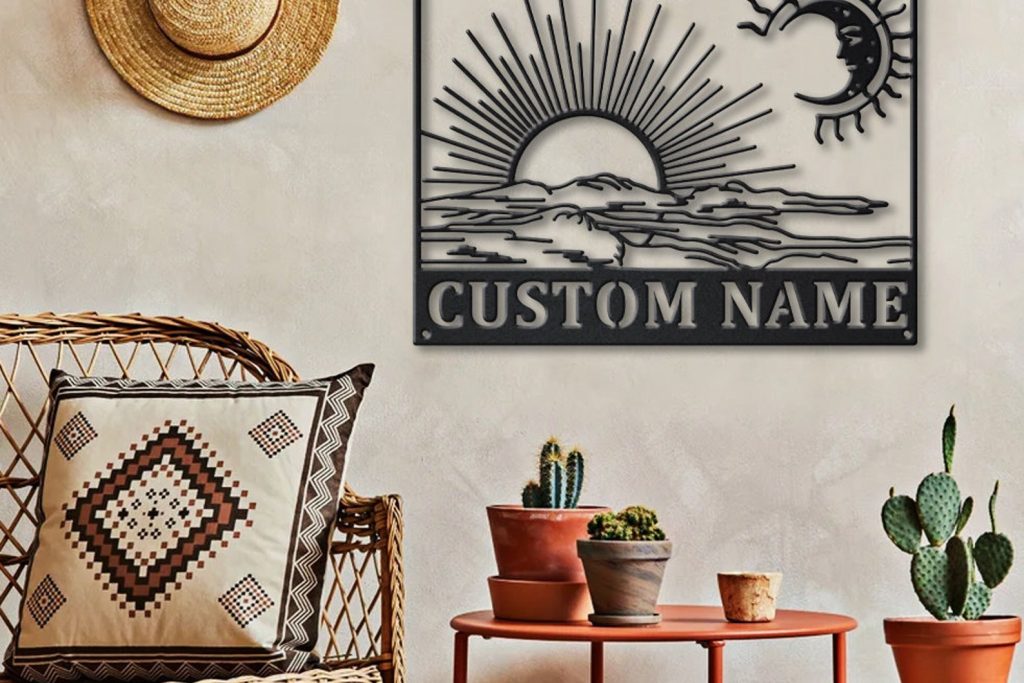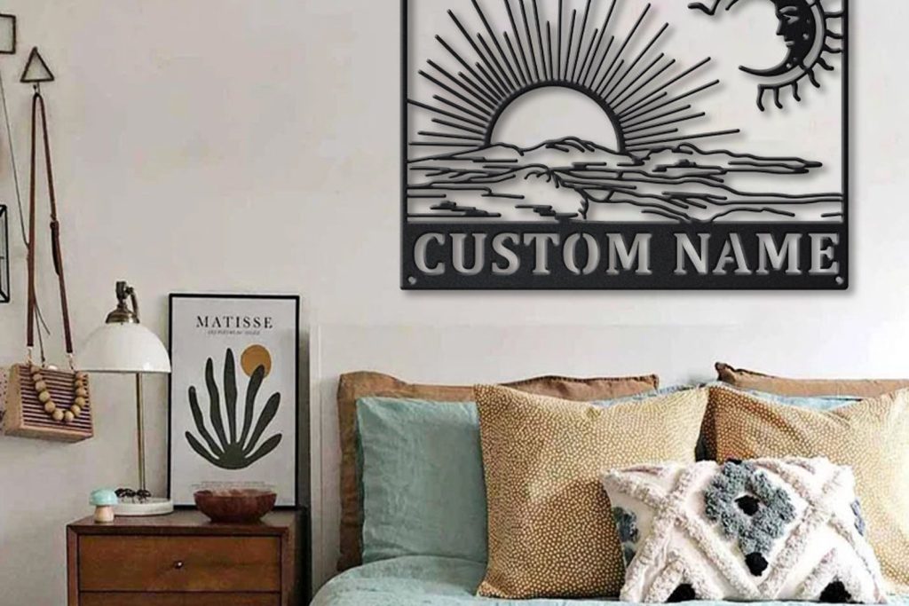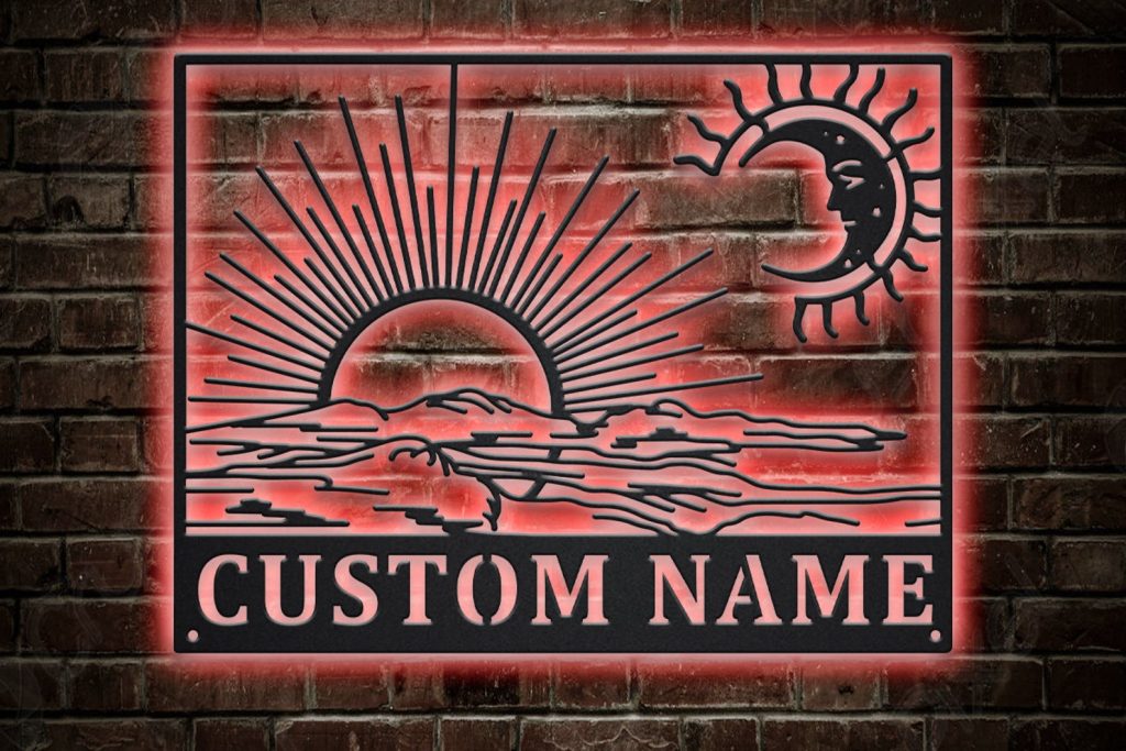 Custom Floral Moon Metal Sign with LED V1 – Neon Wall Hanging