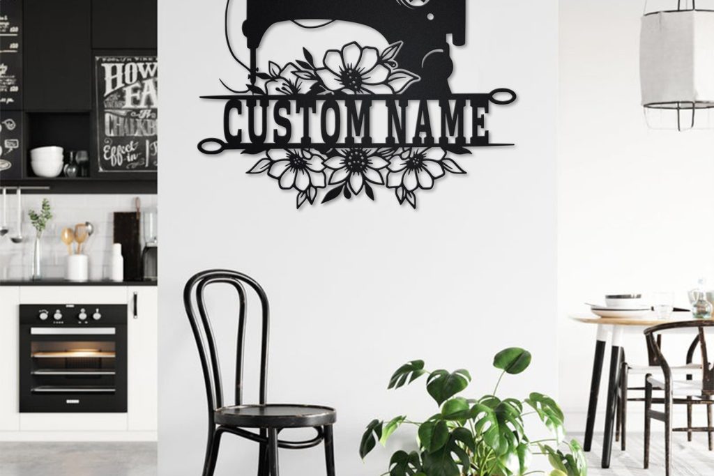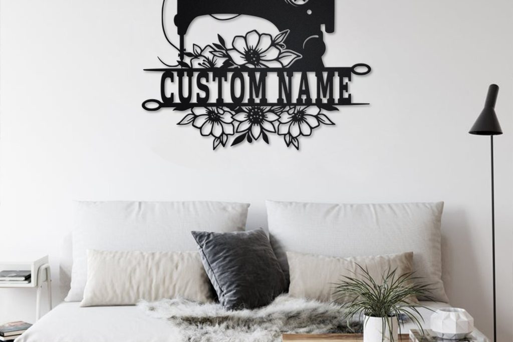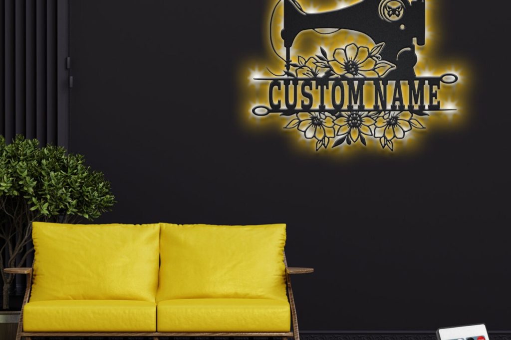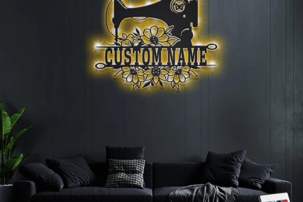 Custom Floral Sewing Machine Metal Sign with LED – Room Decor