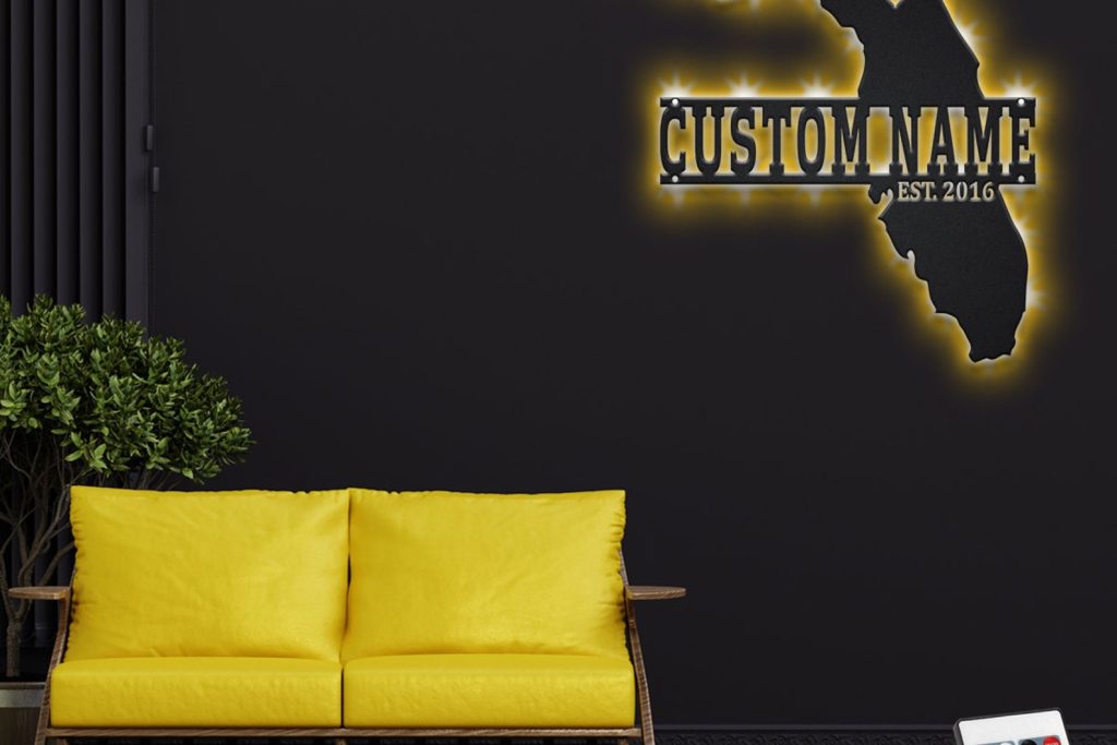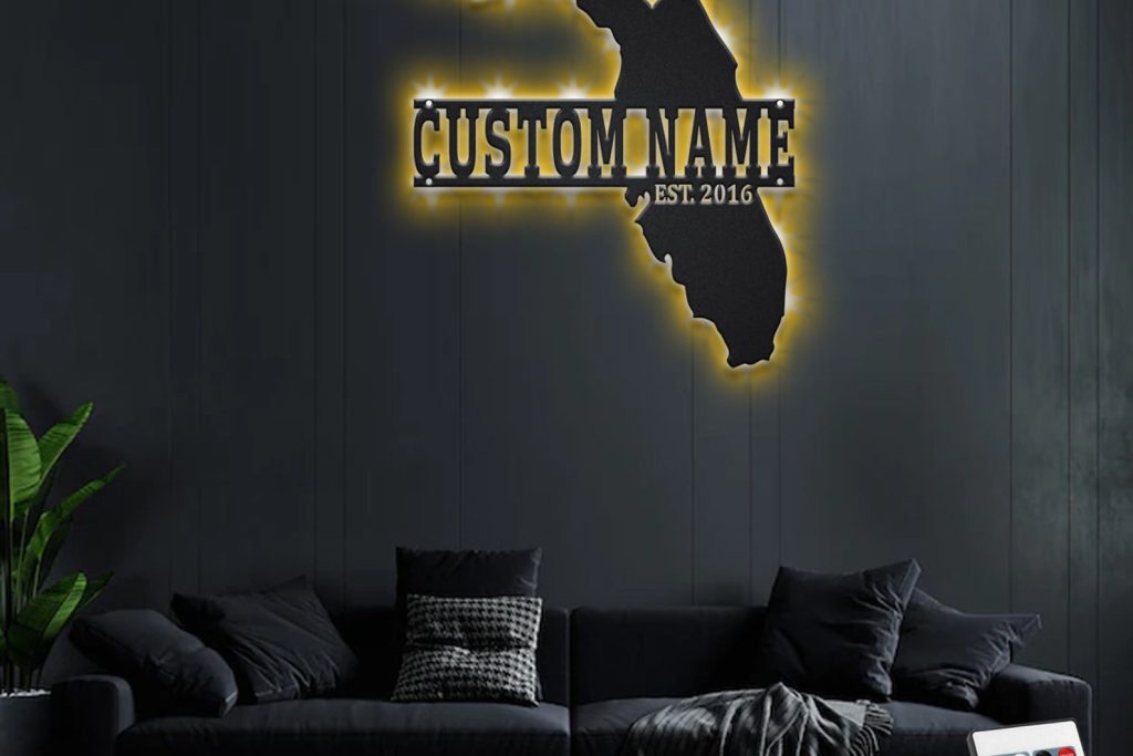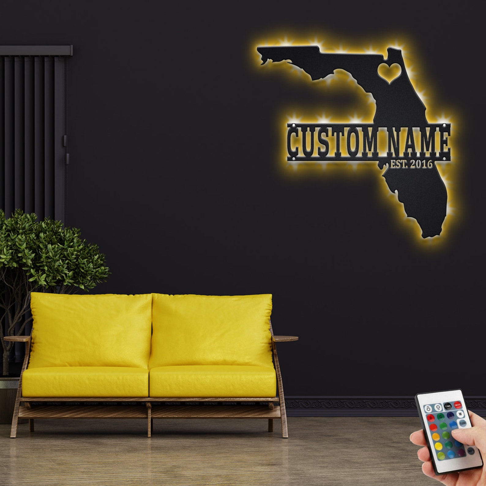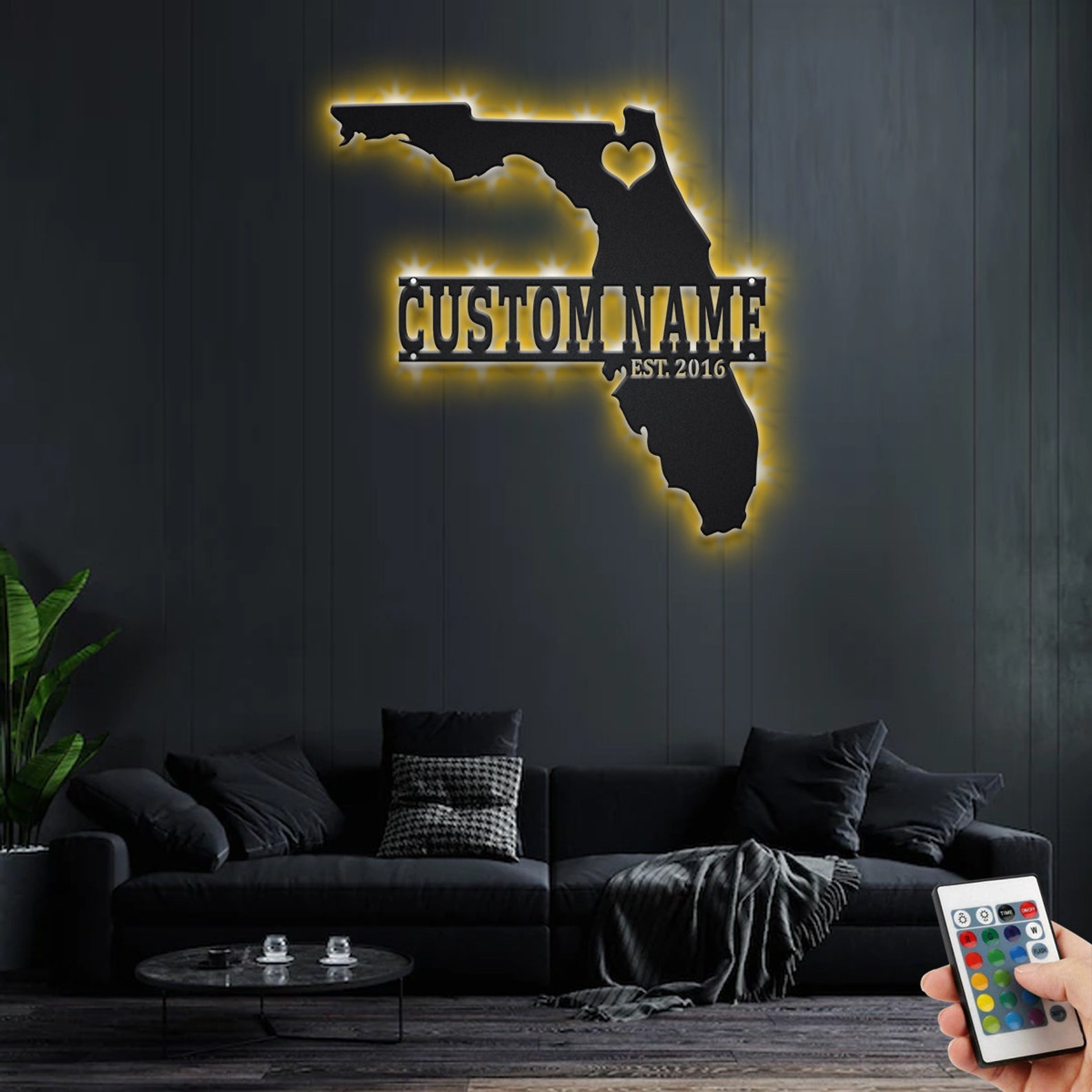 Custom Florida Map Metal Sign, Personalized LED Decor