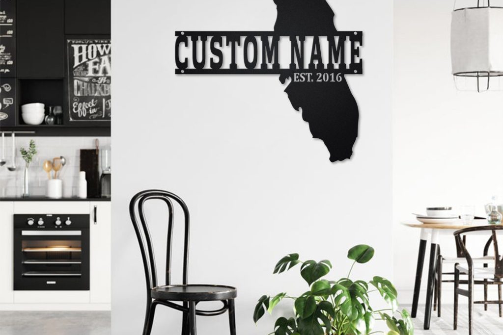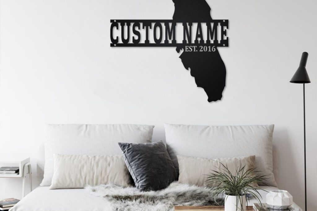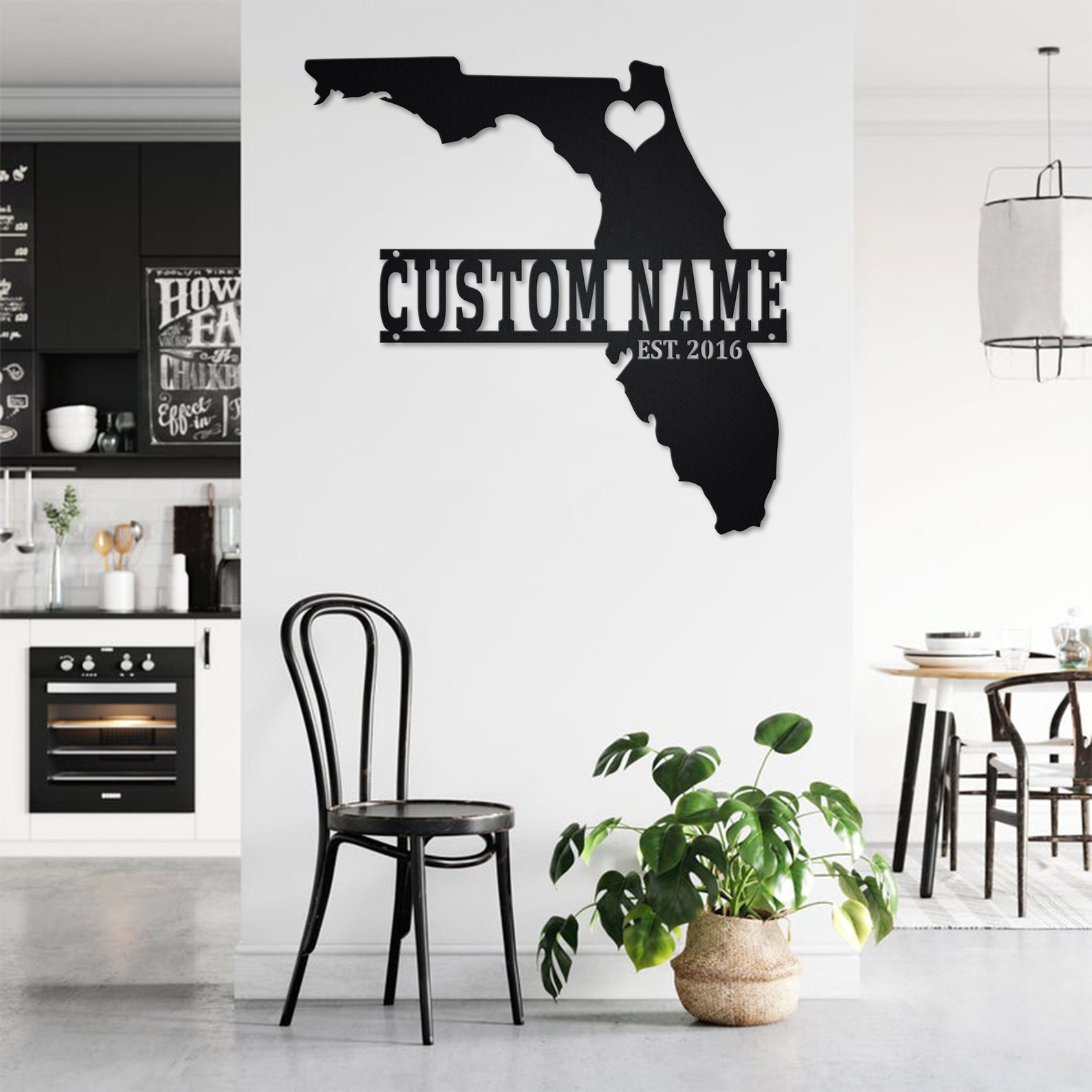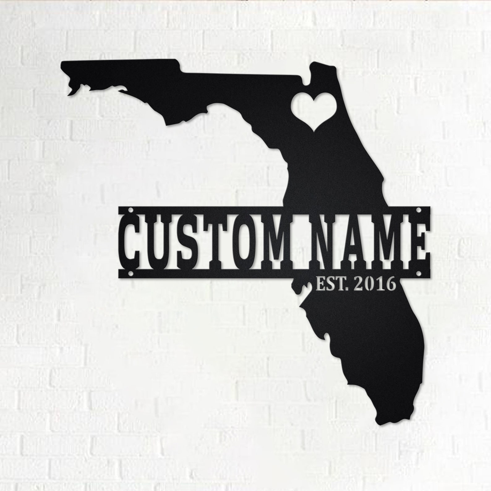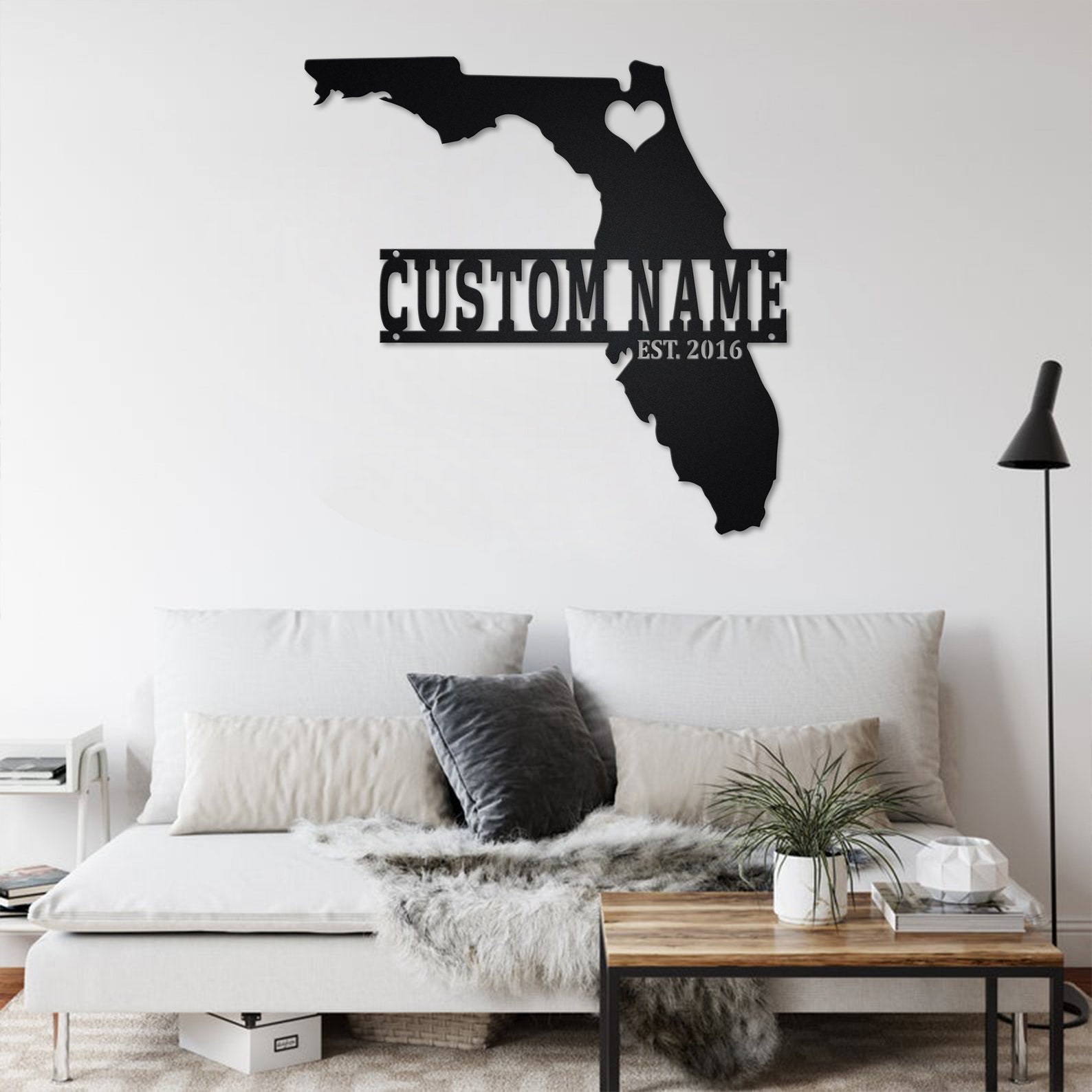 Custom Florida Map Metal Sign, Personalized LED Decor
