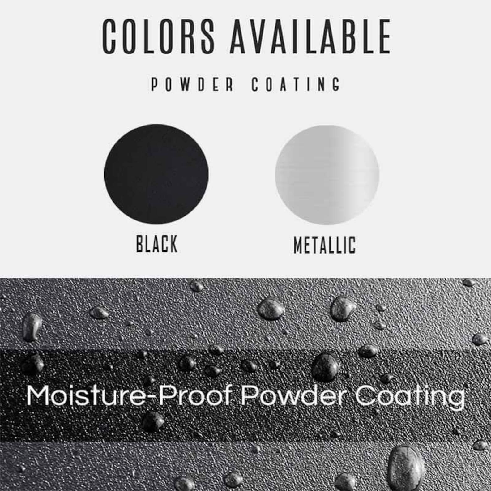 Made from high quality carbon steel and powder coated to last a lifetime. Perfect for indoor use but since it is professionally powder coated it will hold up just fine in the outdoors which means it is weather proof.