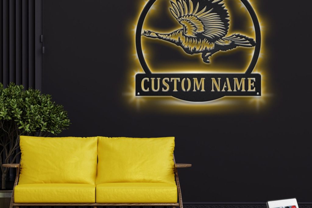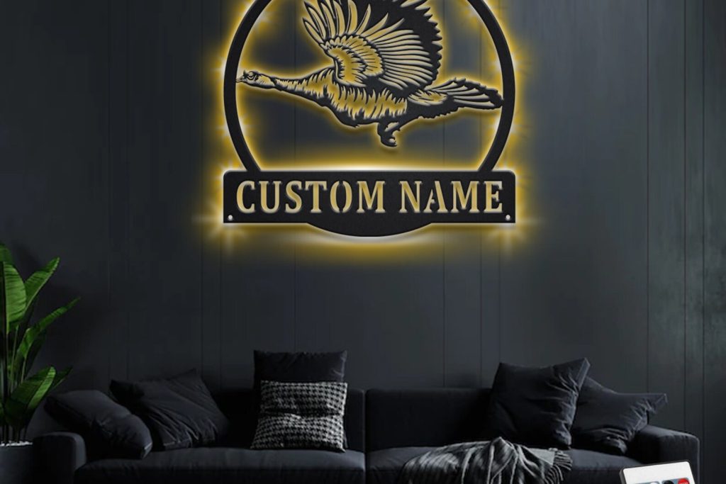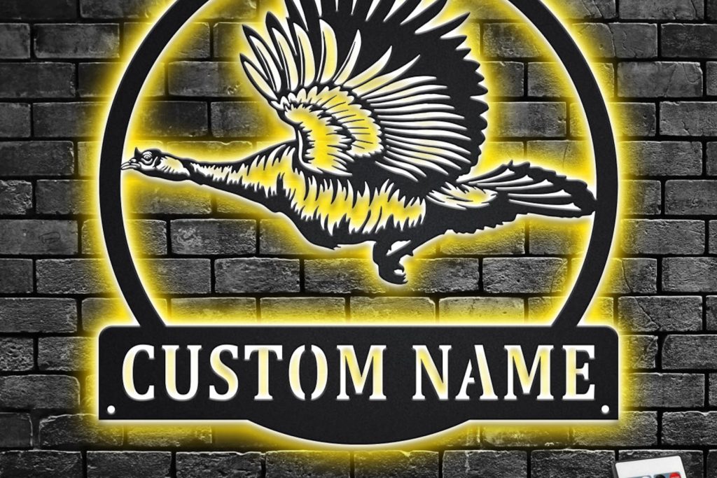 Custom Flying Turkey Metal Sign, LED Light, Turkey Decor