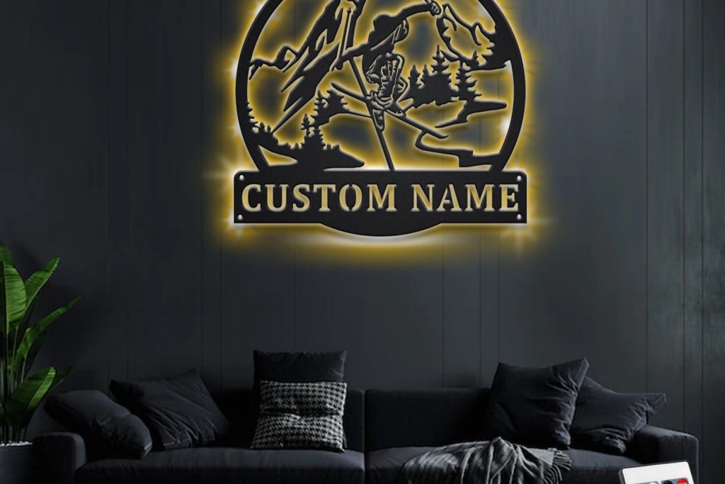 Custom Freestyle Skiing Metal Art with LED Light