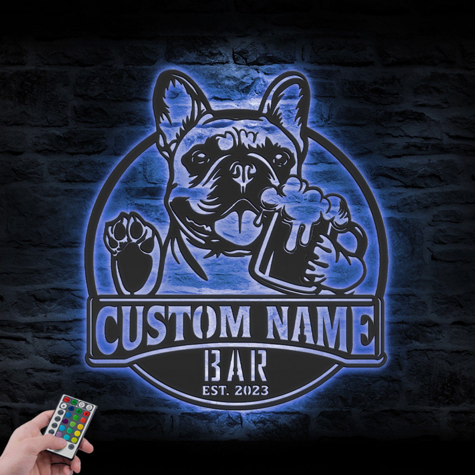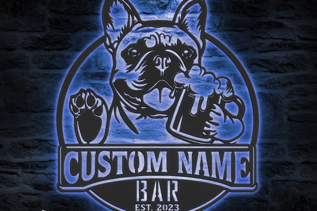 Be the first to review “Custom French Bulldog Beer Pub Metal Wall Art – LED Light, Personalized Sign”