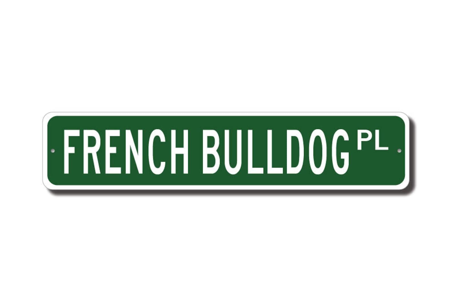 French Bulldog lovers check out this awesome street sign! This will make the perfect piece for any French Bulldog lover or French Bulldog cave. Made of premium aluminum it will stand the test of time. This sign will look great in any room, garage, barn or office! Get this sign for your favorite friend that loves a French Bulldog!