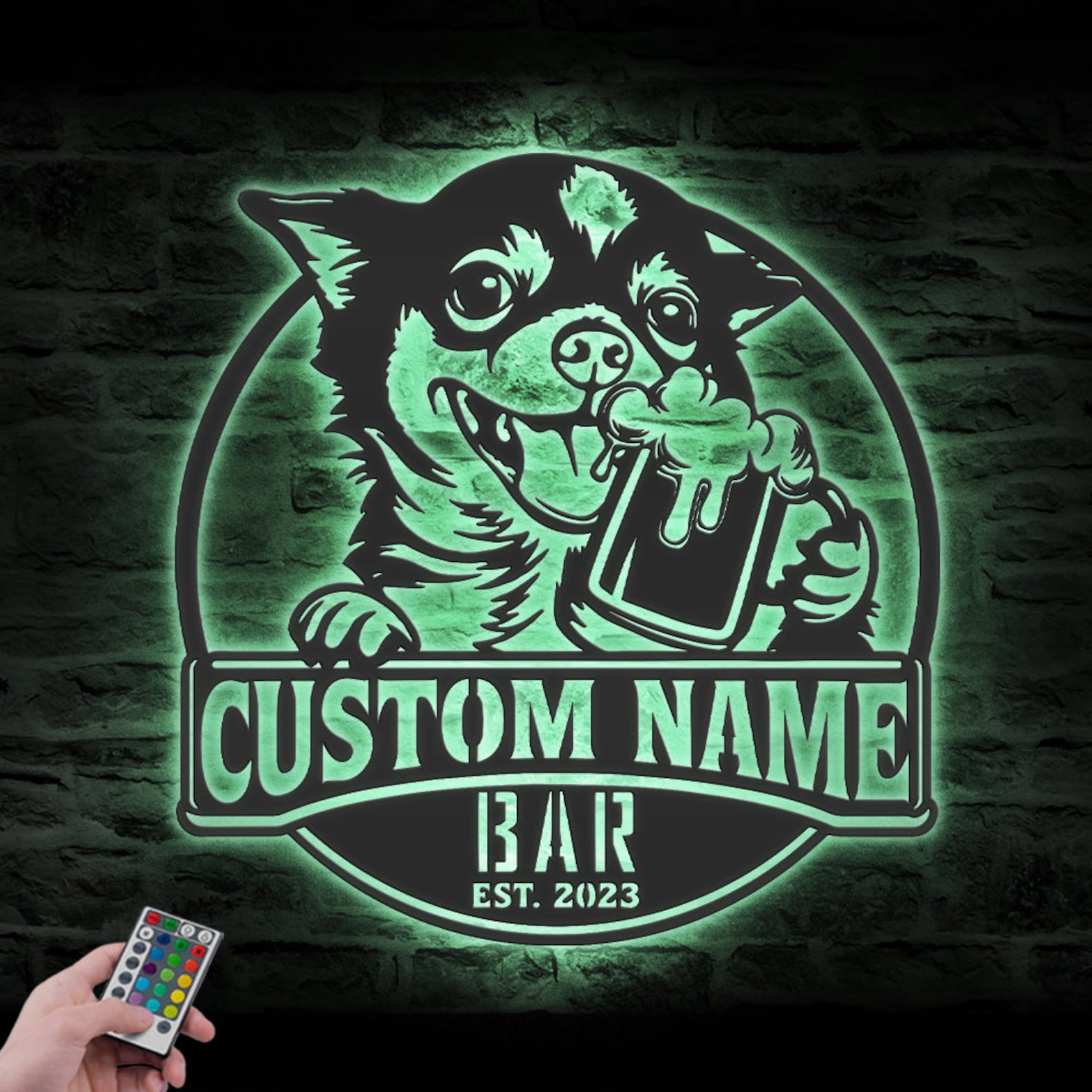 Be the first to review “Custom Funny Chihuahua Beer Pub Metal Wall Art – LED Light, Personalized Sign”