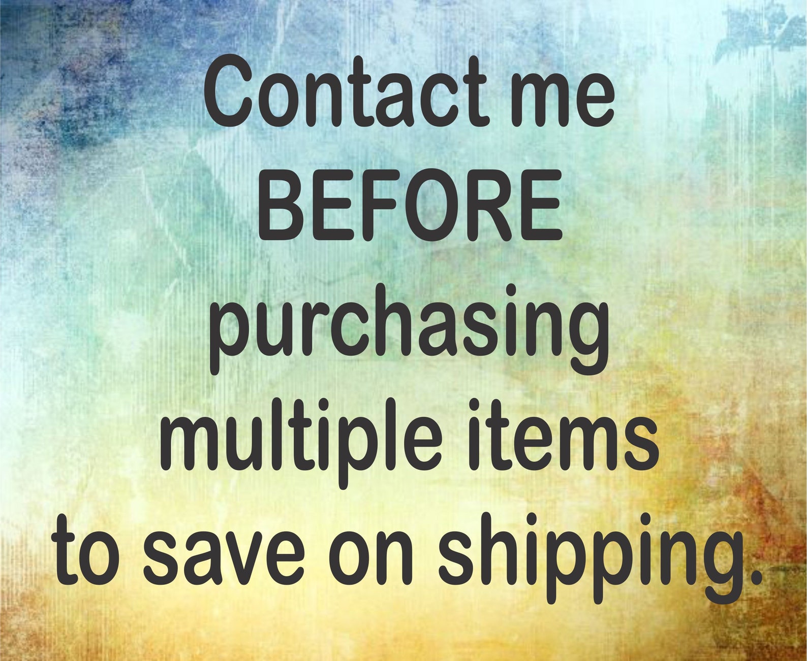 Contact me BEFORE purchasing multiple items to save on shipping. After the the items are purchased it is not possible.